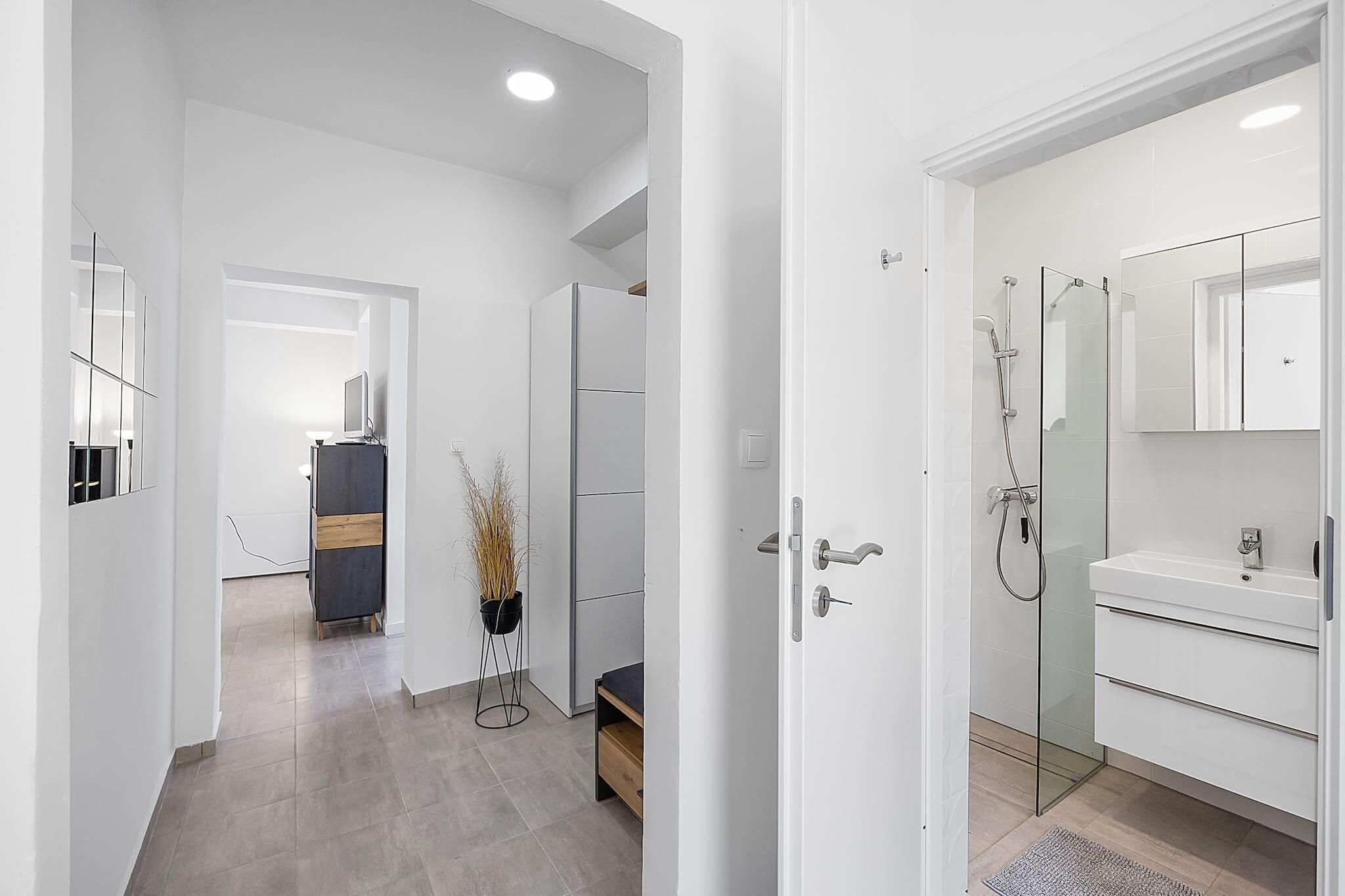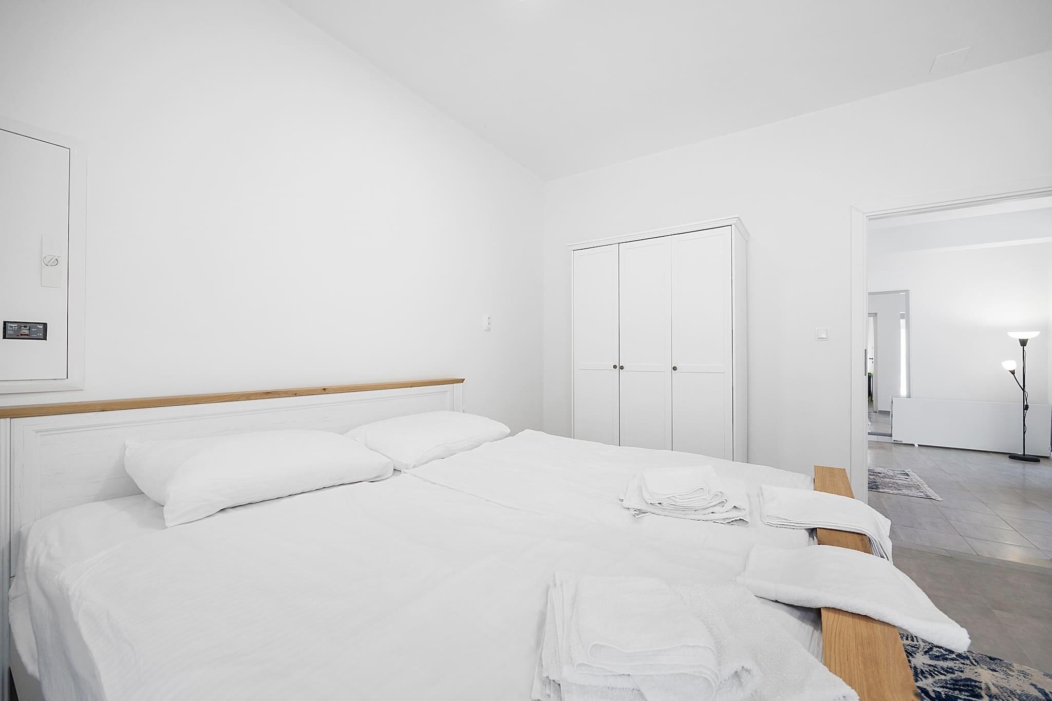 Die modern eingerichtete Unterkunft bietet Paaren und Alleinreisenden einen erholsamen Rückzugsort und bietet Platz für bis zu zwei Gäste. Dieses Apartment mit einem Schlafzimmer verfügt über ein Queensize-Bett und ein Schlafsofa im Wohnbereich. Es hat einen eigenen Eingang und befindet sich im Erdgeschoss. Von hier aus haben Sie bequem Zugang zum Gemeinschaftsgarten mit Grillplatz. Zur Ausstattung gehören Klimaanlage, kostenloses Internet, Sat-TV und eine voll ausgestattete Küche mit Induktionsherd, Kühlschrank, Backofen und Geschirrspüler. Kostenlose Privatparkplätze stehen vor Ort zur Verfügung. Kleine Haustiere sind nach vorheriger Anmeldung und gegen Aufpreis erlaubt. Das Apartment befindet sich in Banjol, einem ruhigen Dorf auf der wunderschönen Insel Rab, nur 300 Meter vom Strand entfernt. Nahegelegene Annehmlichkeiten wie ein Lebensmittelgeschäft, ein Restaurant, eine Bushaltestelle und ein haustierfreundlicher Strand sind bequem zu Fuß erreichbar. Rab, bekannt für seine vielen Sandstrände, ist mit seiner reichen Geschichte und landschaftlichen Schönheit ideal für Familien. Erkunden Sie die alte griechische Festung auf dem Hügel St. Damian oder schlendern Sie durch die engen Gassen der Altstadt von Rab. Dank der Fährverbindung zum Festland ist die Insel leicht erreichbar. Die Gegend bietet zahlreiche Wander- und Radwege für Naturliebhaber. Das Apartment verfügt über ein geräumiges Wohnzimmer, das mit der Küche und dem Essbereich verbunden ist und sich ideal zum Entspannen oder Genießen von Mahlzeiten eignet. Das Badezimmer ist mit einer Dusche und wichtigen Pflegeprodukten wie Duschgel und Haartrockner ausgestattet. Die private Terrasse lädt zum Entspannen im Freien ein.