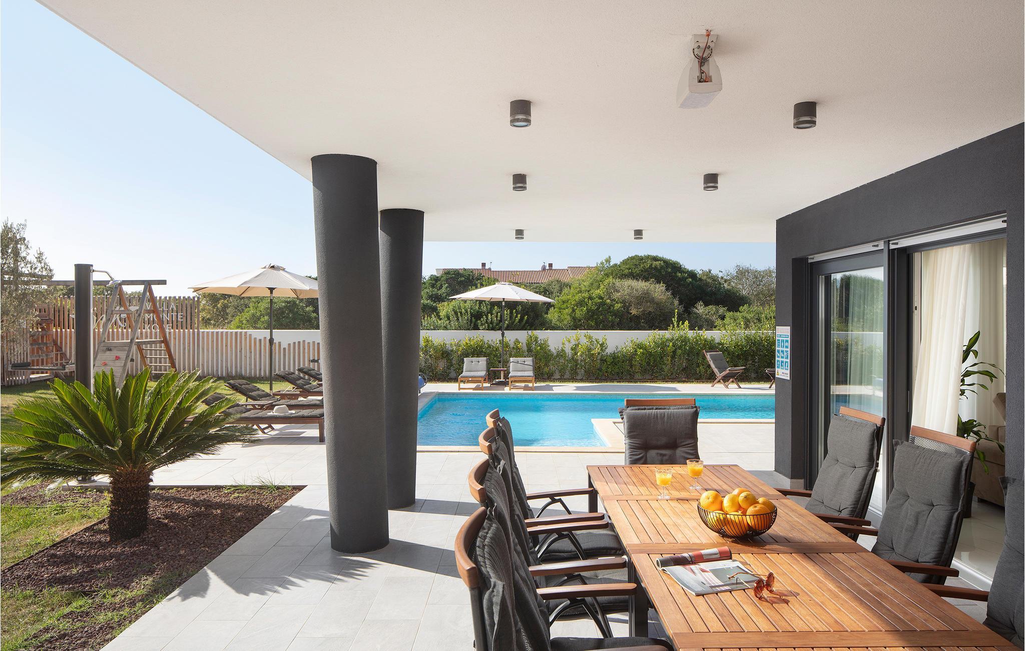 Genießen Sie herrliche Stunden im Außenbereich des Hauses. Nehmen Sie ein Sonnenbad im Liegestuhl, unterbrochen nur von einer kleinen Erfrischung im großzügigen Pool, sehen Sie Ihren Kindern beim Schaukeln zu oder entspannen Sie genüsslich im Whirlpool und genießen Sie laue Sommerabende im Freien.