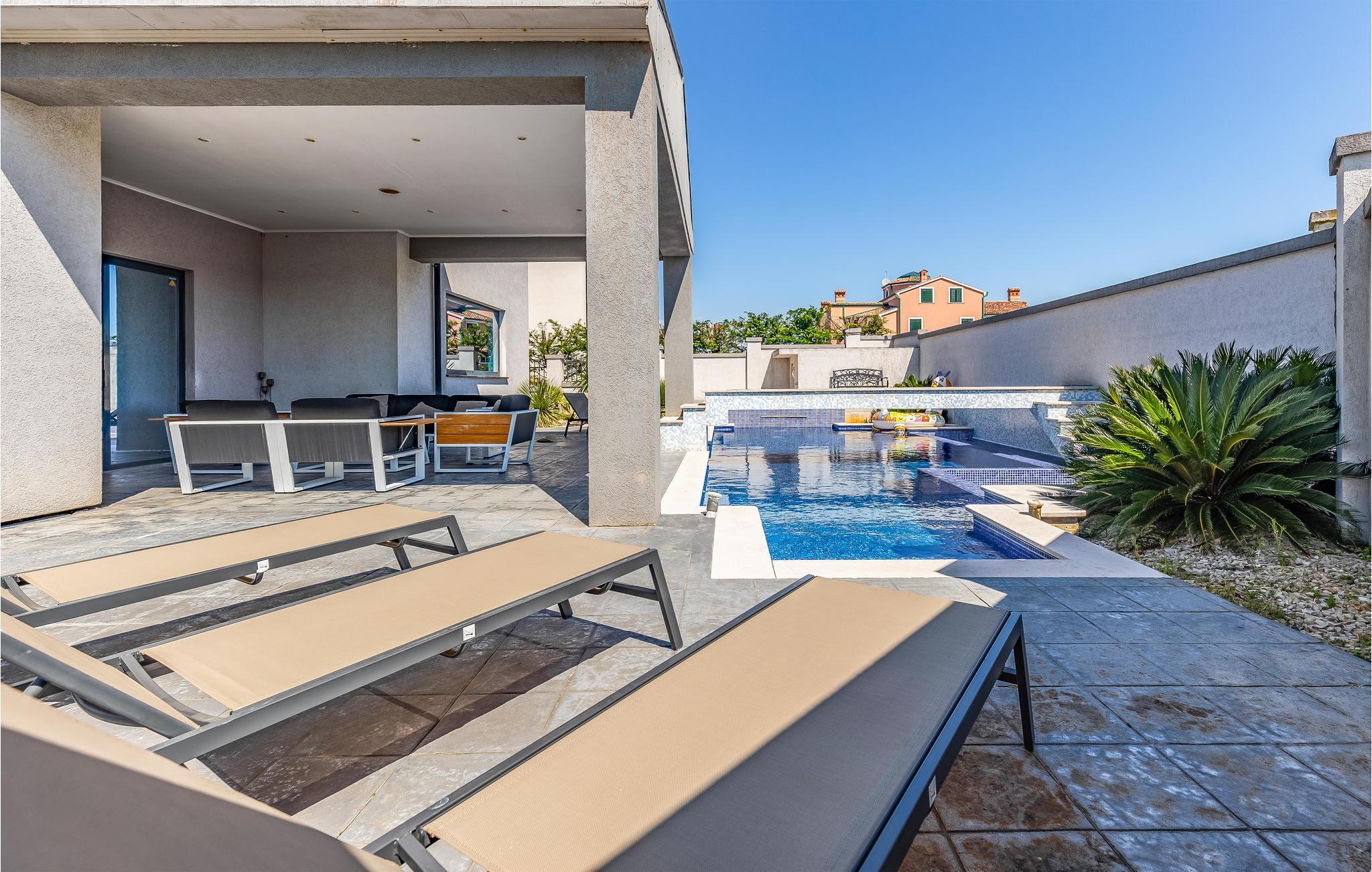 Entspannen Sie auf einer der 3 überdachten Terrassen, genießen Sie regelmäßig Erfrischung im Pool und machen Sie es sich auf den vorhandenen Sonnenliegen bequem.