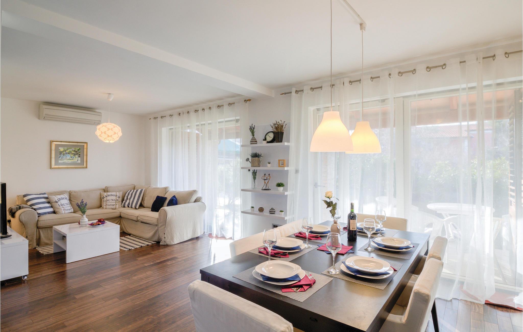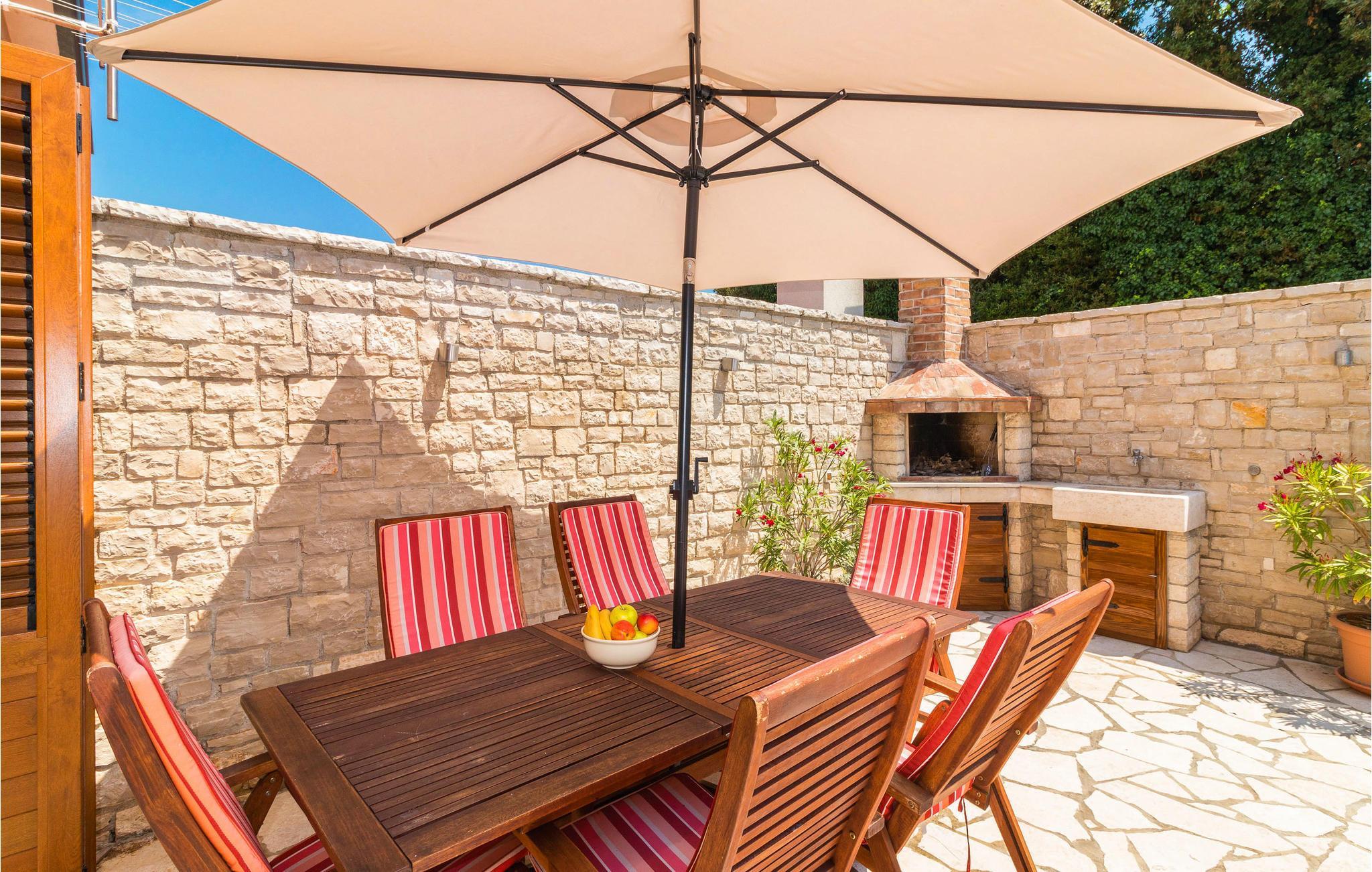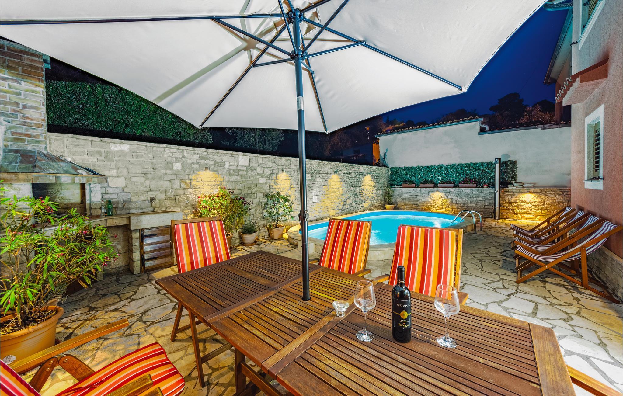 In einem ruhigen Viertel von Banjole befindet sich dieses wunderbare Reihenhaus mit Pool. Ein Vorzug dieses Ferienhauses ist sicherlich die gute Lage, denn in nur fünf Gehminuten erreichen Sie schöne Strände und Restaurants. Die Innenräume sind modern eingerichtet und im ersten Stock befinden sich die Schlafzimmer, im Erdgeschoss liegen das Wohnzimmer und die Küche mit Ausgang zum Garten und Pool. Der Garten ist eingezäunt. Leckere Spezialitäten werden in den ausgezeichneten Restaurants und Konobas von Banjole angeboten und unumgänglich ist ein Besuch des römischen Amphitheaters in Pula, wo viele Sommerkonzerte nationaler und internationaler Stars stattfinden.