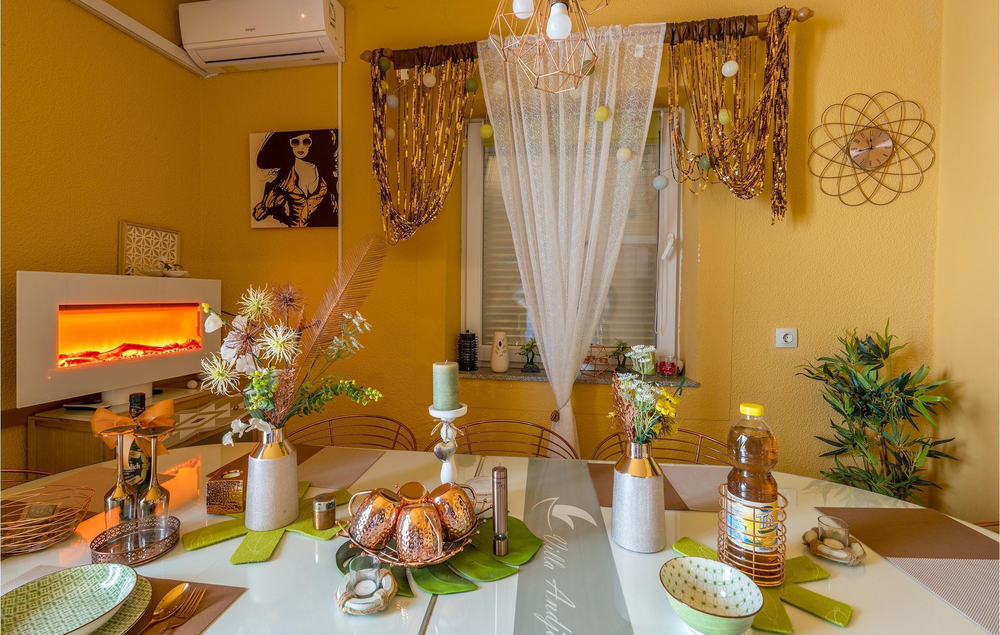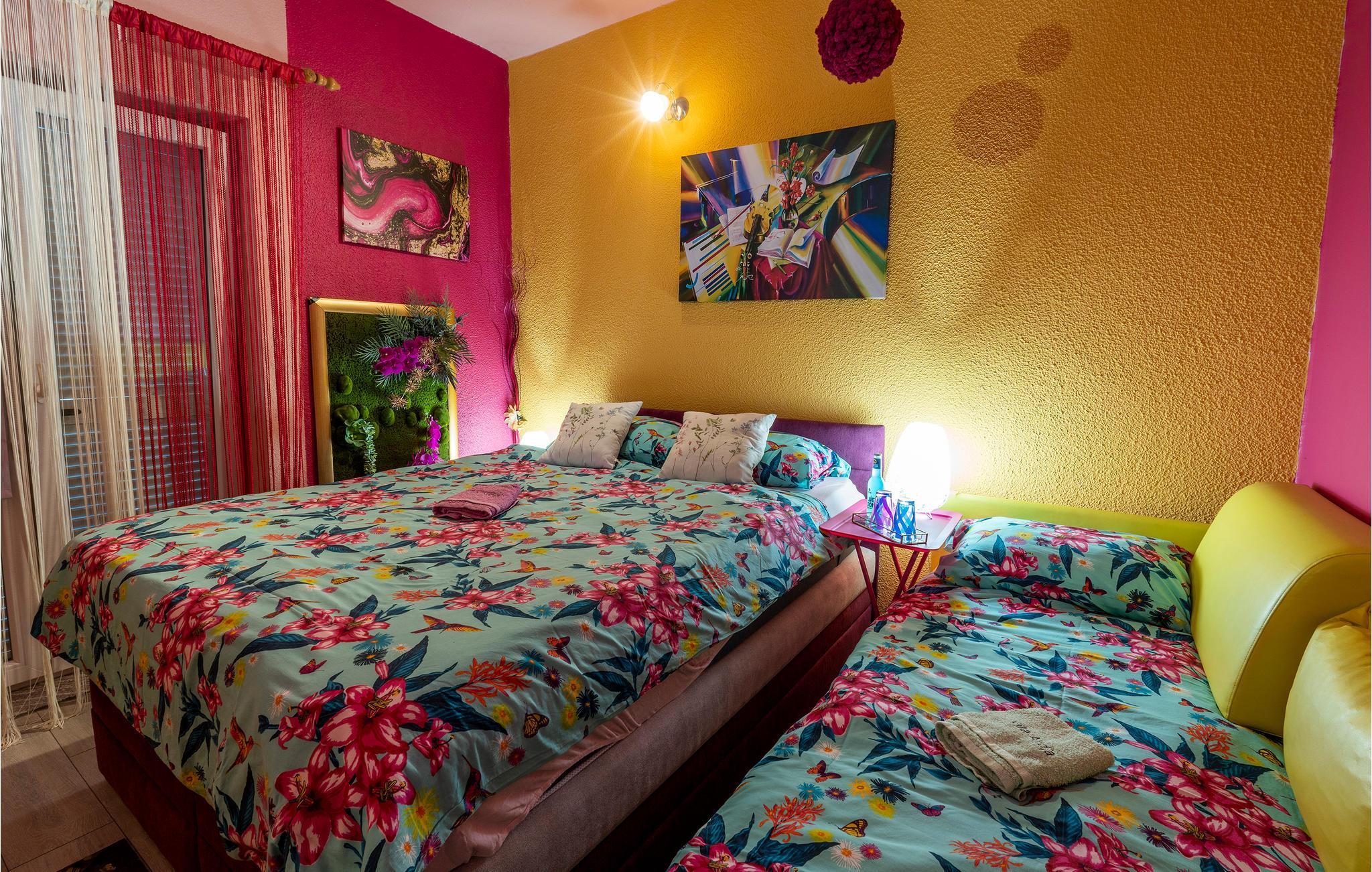 Dieses Ferienhaus mit eigenem Pool befindet sich im Ferienort Banjole. Mit fröhlichen Farben und Liebe zum Detail eingerichtet verleiht es ein einladendes Wohnambiente und garantiert Erholung pur. Das Haus hat Innen- und Außentreppen. Das Erdgeschoss verfügt über 2 Schlafzimmer, von denen sich eines in der Zwischenetage befindet. Die 1. Etage mit 2 weiteren Schlafzimmern und Badezimmer ist ebenfalls auf Zwischenetagen verteilt.