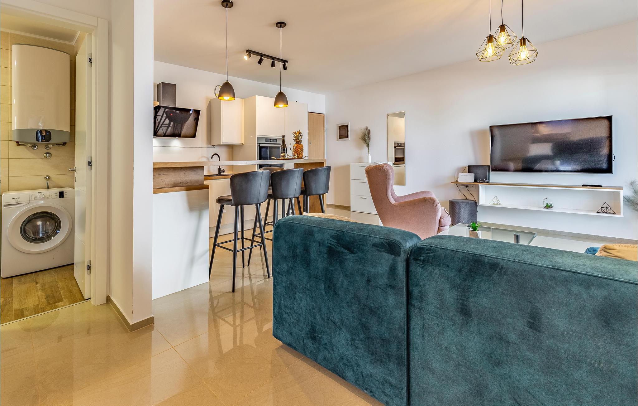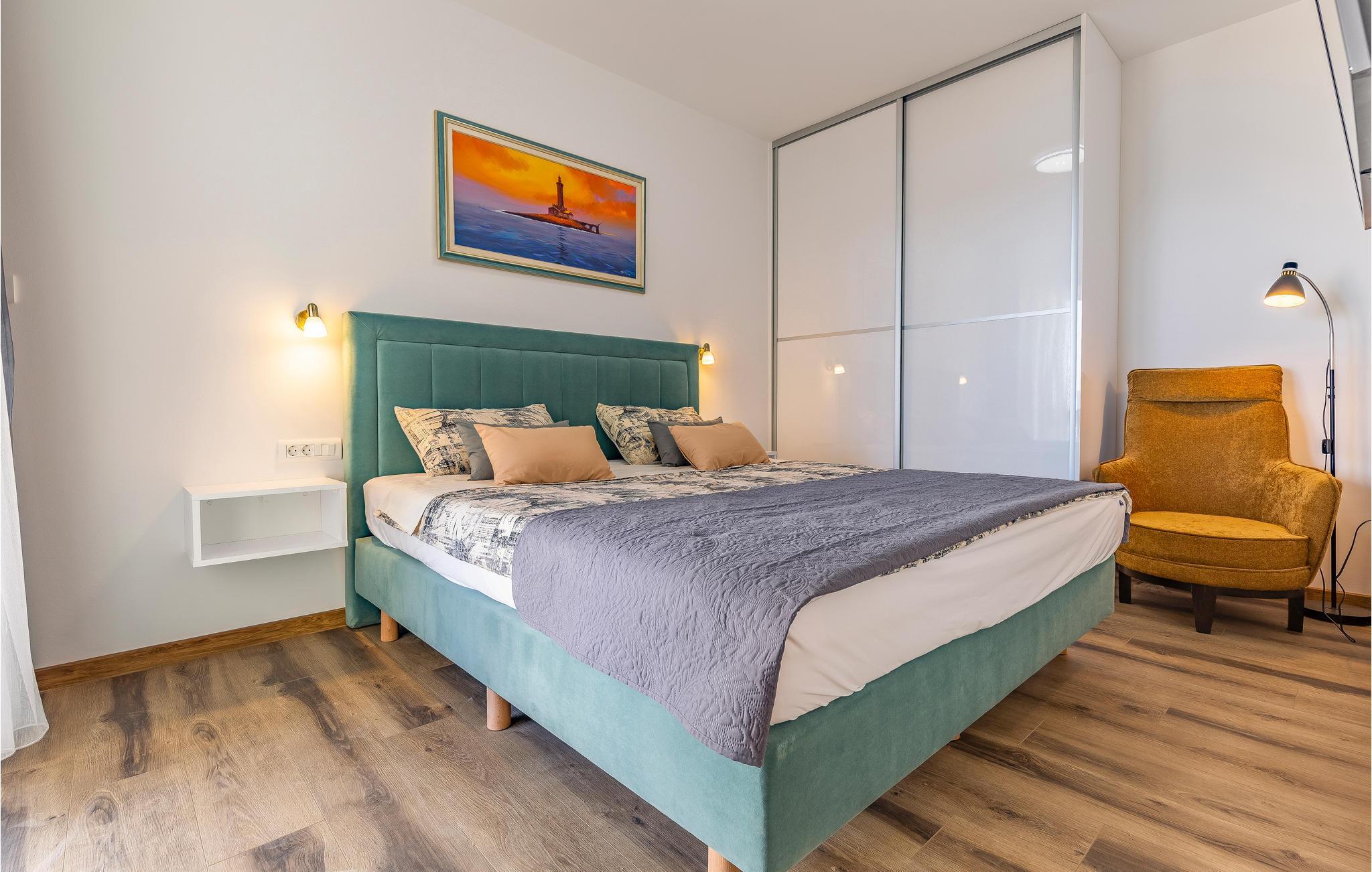 Diese Ferienwohnung liegt in erster Reihe zum Meer und bietet einen wunderschönen Meerblick von der Terrasse. Das Herz der Wohnung ist der helle Wohnbereich mit offener Küche und Sofa, wo Sie gut zusammen kochen und auf dem Sofa entspannen können. Ihnen stehen außerdem zwei Schlafzimmer zur Verfügung.