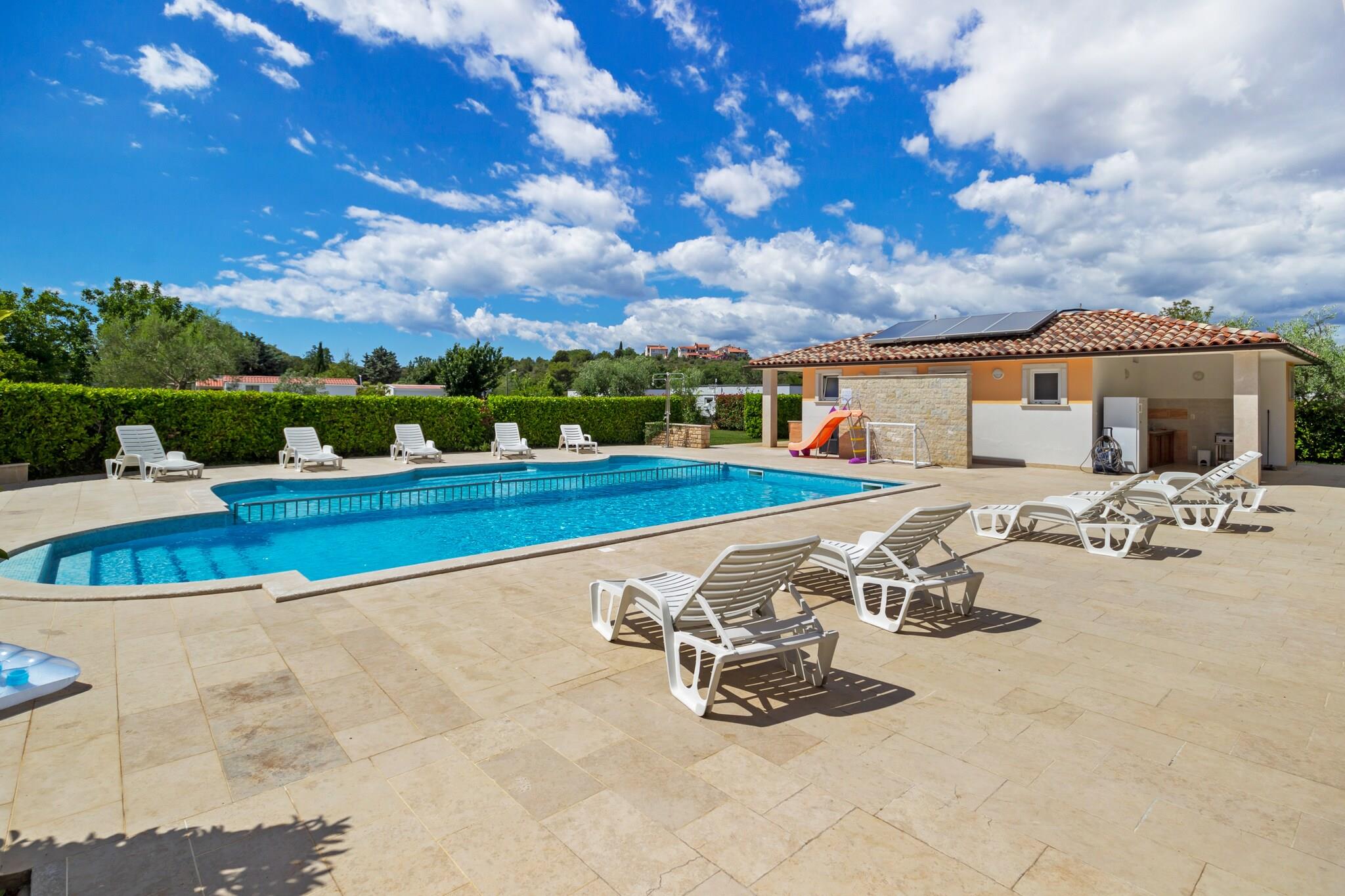 Wenn Sie Spaß, Lachen und unvergessliche Momente suchen, ist dieses charmante Apartment in Banjole die perfekte Wahl für eine Familie oder eine kleine Gruppe mit bis zu 4 Gästen. Es bietet ein Schlafzimmer und ein Wohn-/Schlafzimmer, einen Gemeinschaftspool für erfrischende Bäder und einen ruhigen Garten, in dem Sie bei einem Drink entspannen können, während die Kinder mit ihren Spielsachen spielen. Abends können Sie auf der Terrasse grillen oder ein freundschaftliches Rugbyspiel auf dem hauseigenen Fußballtor spielen. Der Sandstrand und das Stadtzentrum von Pula sind jeweils nur 1 km entfernt. Zahlreiche Restaurants und Geschäfte befinden sich in unmittelbarer Nähe. Erkunden Sie den malerischen Leuchtturm Veruda in 3 km Entfernung oder besuchen Sie das Aquarium Pula und den Strand Havajsko, jeweils etwa 8 km entfernt. Für noch mehr Strandvergnügen ist der wunderschöne Strand Bijeca nur 7 km von der Unterkunft entfernt. Spielen Sie Tennis auf den nahegelegenen Plätzen oder vergnügen Sie sich mit Indoor-Computerspielen. Zu den weiteren Annehmlichkeiten gehören ein Innenhof, Parkplätze und Fahrräder. Um die Umgebung bequem zu erkunden, empfehlen wir Ihnen, ein Auto zu mieten. Der Flughafen Pula liegt günstig 13 km vom Apartment entfernt.