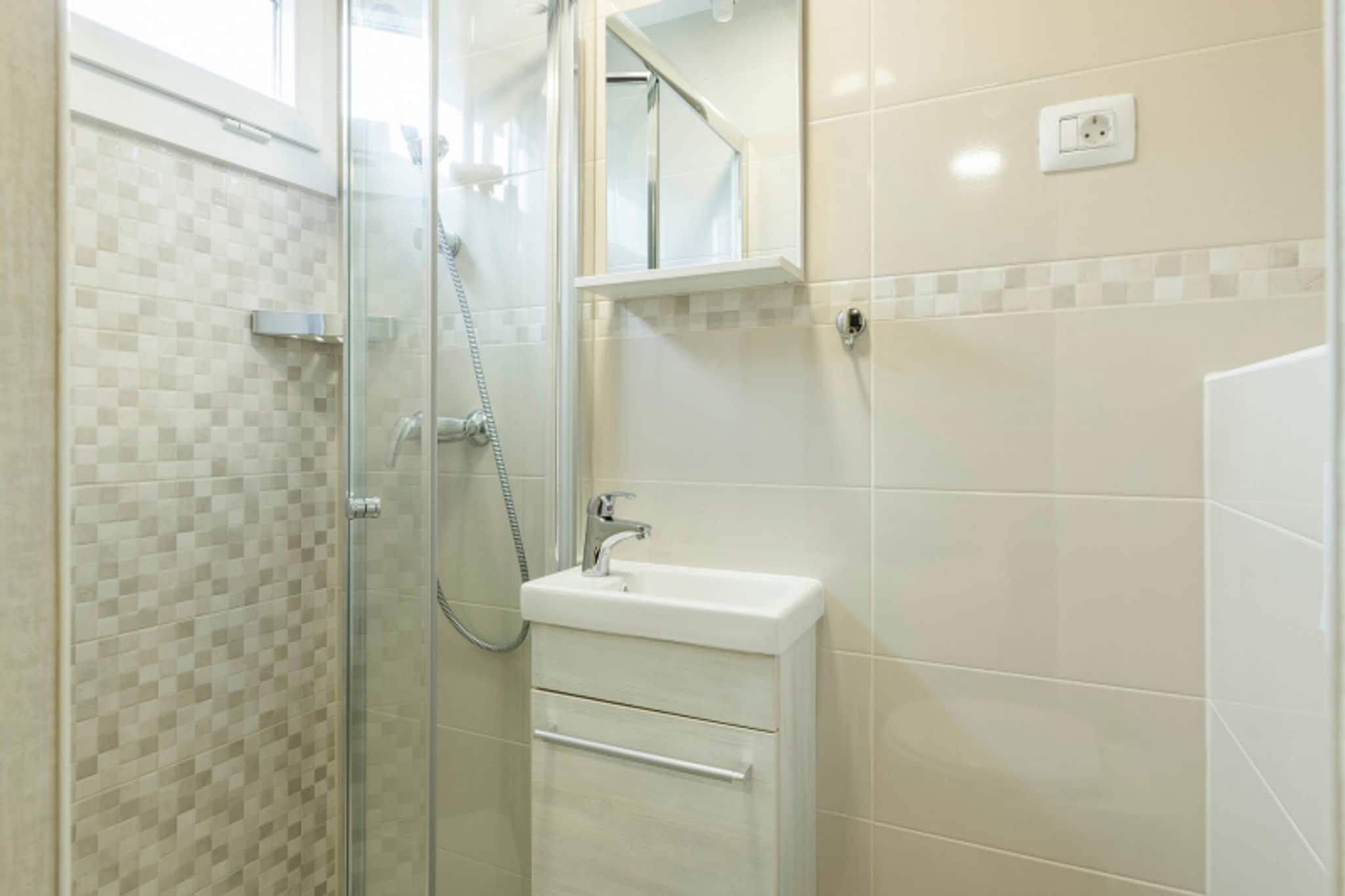 Dieses Mobilheim für sechs Gäste bietet einen erholsamen Rückzugsort nur 1 km vom Strand entfernt – ideal für Familien und Haustierbesitzer. Es liegt in Banjole, 2 km von Pula, einer Stadt reich an Geschichte und Kultur, entfernt. Mit kostenlosem WLAN, einem Gemeinschaftspool und verschiedenen Außenanlagen können Gäste sowohl Freizeit als auch Abenteuer genießen. Im Inneren des Hauses befindet sich eine gut ausgestattete Küche mit Wasserkocher, Wasserkocher, Kaffeemaschine, Mikrowelle, Geschirrspüler und Kühlschrank für einen angenehmen Aufenthalt. Der gemütliche Wohn- und Schlafbereich verfügt über ein Doppelklappbett und einen Fernseher, während die separaten Schlafzimmer mit einem Kingsize-Bett und Etagenbetten oder zwei Einzelbetten für erholsame Nächte sorgen. Gäste können auf der Terrasse entspannen, im Freien am Grill speisen oder Annehmlichkeiten wie ein Trampolin, einen Tennisplatz, ein Fußballtor, Spielgeräte und Sonnenliegen nutzen. Der nahegelegene Strand Centinera ist mit seinem kristallklaren Wasser und der malerischen Küste ein Muss. Erkunden Sie das römische Amphitheater von Pula, eines der berühmtesten Wahrzeichen Kroatiens. Das Batelina ist für seine Meeresfrüchte bekannt, während die Konoba Volme authentische kroatische Aromen bietet. Ob Entspannung oder Erkundungstour – dieser Rückzugsort an der Küste ist der perfekte Rückzugsort.