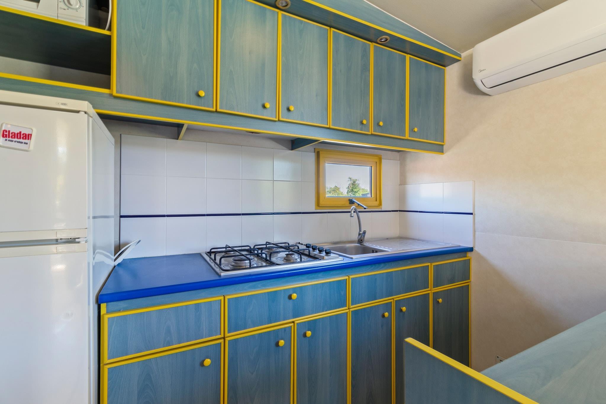 Dieses einladende Mobilheim bietet Platz für sechs Gäste und ist ideal für Familien und Tierliebhaber. Es bietet einen ruhigen Rückzugsort nur 1 km vom Strand entfernt. In Banjole und nur 2 km von der historischen Stadt Pula entfernt, vereint das Anwesen Komfort, Kultur und Küstencharme. Freuen Sie sich auf kostenloses WLAN, einen Gemeinschaftspool und eine Vielzahl von Outdoor-Aktivitäten für alle Altersgruppen. Die gut ausgestattete offene Küche mit Wasserkocher, Wasserkocher, Kaffeemaschine, Mikrowelle und Kühlschrank sorgt für einen angenehmen Aufenthalt. Das gemütliche Wohn- und Schlafzimmer verfügt über ein ausklappbares Doppelbett, einen Fernseher und eine Klimaanlage. Zwei separate Schlafzimmer bieten ein Kingsize-Bett und Etagen- oder Einzelbetten. Eine private Terrasse lädt zum Entspannen oder Essen im Freien mit Grill ein. Gemeinsam genutzte Annehmlichkeiten wie ein Trampolin, ein Tennisplatz, ein Fußballtor, ein Spielbereich und Sonnenliegen runden das Erlebnis ab. Verpassen Sie nicht den nahegelegenen Strand Centinera mit seinem klaren Wasser und der ruhigen Lage oder besuchen Sie den Bunker, um einen Einblick in die lokale Geschichte zu erhalten. Zum Essen ist Batelina ein beliebtes Fischrestaurant, während Konoba Volme authentische kroatische Gerichte anbietet. Dieses Küstenparadies verspricht Abenteuer und Ruhe zugleich.
