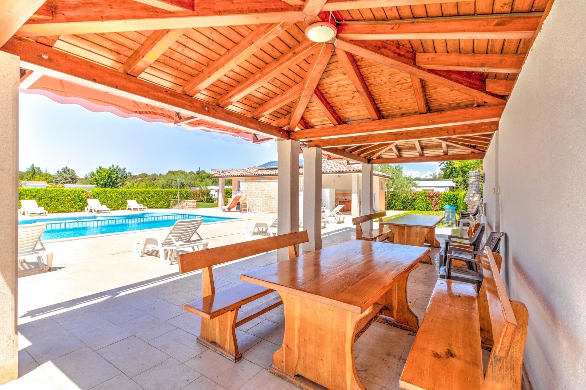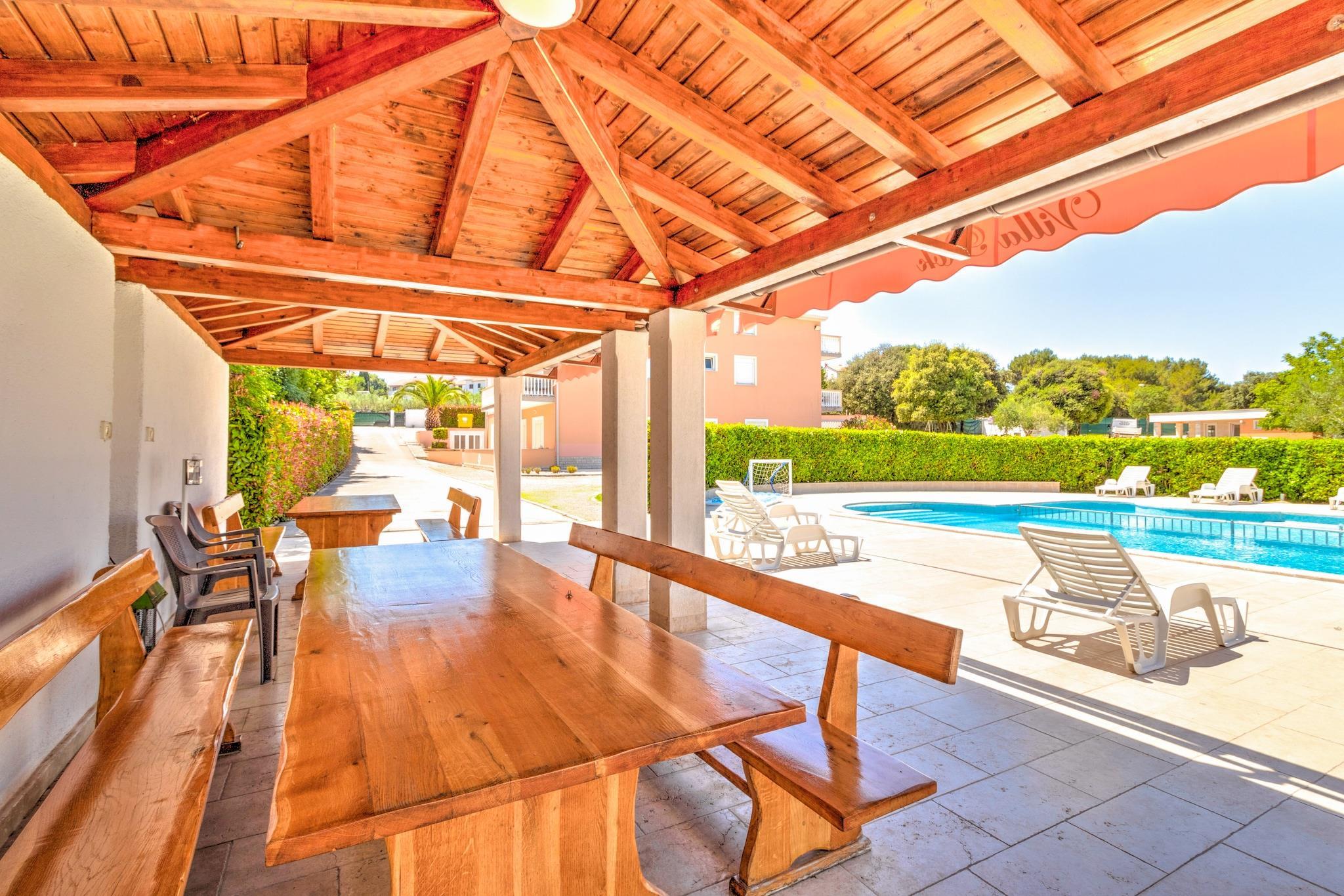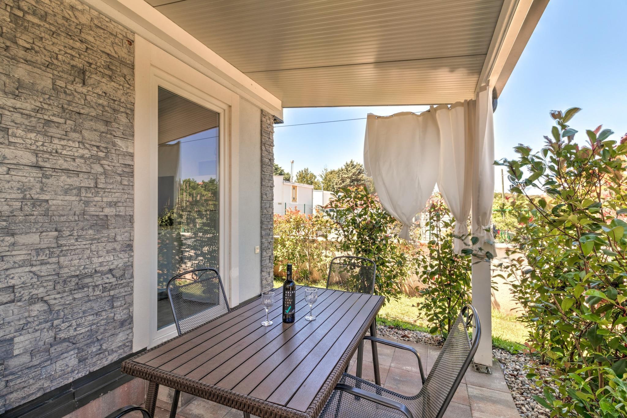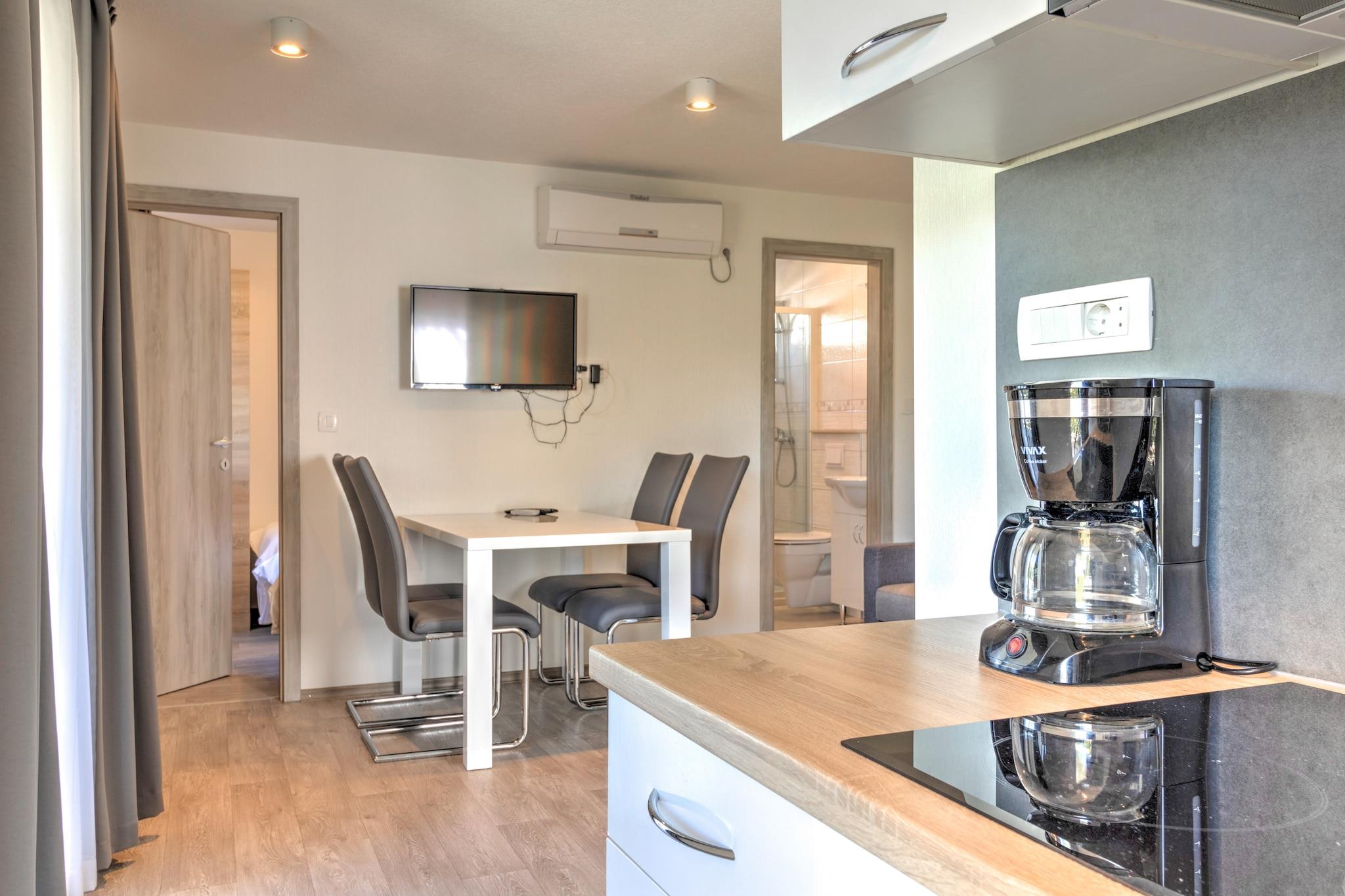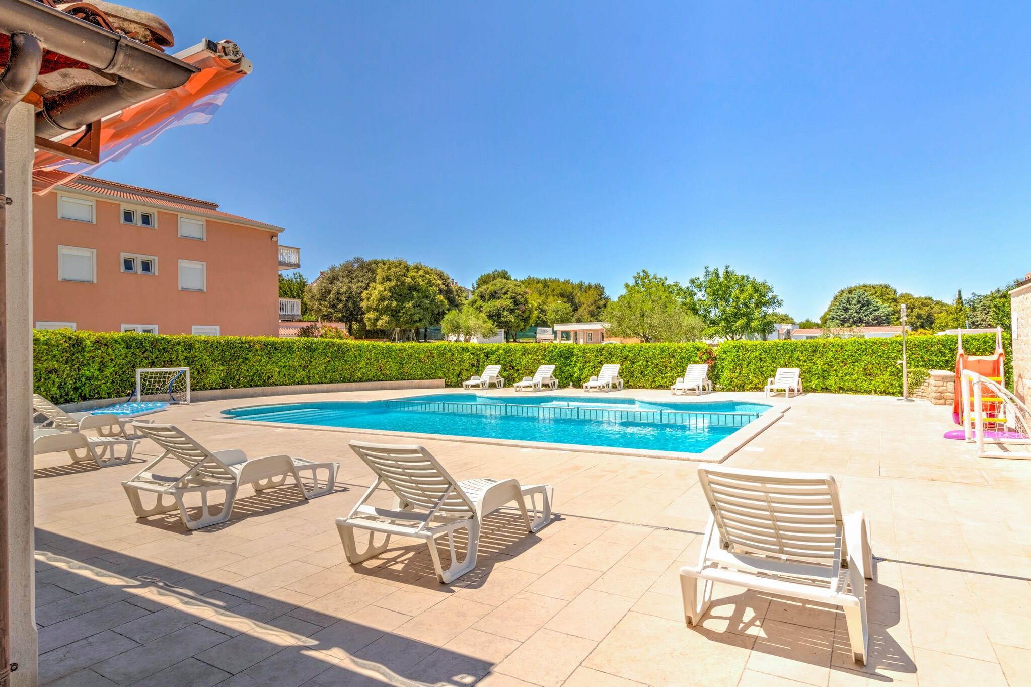 Entfliehen Sie an die ruhige Küste von Banjole. Dieses haustierfreundliche Mobilheim für sechs Gäste bietet die perfekte Mischung aus Entspannung und Abenteuer. Nur 1 km vom Strand und 2 km von Pula entfernt, ist dieser Rückzugsort ideal für alle, die Komfort, Natur und kulturelle Entdeckungen suchen. Ob Sie auf der sonnenverwöhnten Terrasse entspannen, Outdoor-Aktivitäten nachgehen oder historische Sehenswürdigkeiten erkunden – diese Küstenoase verspricht einen unvergesslichen Aufenthalt. Das Haus verfügt über ein geräumiges Wohn- und Schlafzimmer mit einem Doppelklappbett, Fernseher und Klimaanlage, eine gut ausgestattete Küche mit Wasserkocher, Wasserkocher, Kaffeemaschine, Mikrowelle, Geschirrspüler und Kühlschrank sowie ein Schlafzimmer mit Etagenbett oder zwei Einzelbetten. Das Hauptschlafzimmer bietet ein Kingsize-Bett und ein eigenes Bad mit Badewanne oder Dusche und WC. Ein weiteres Badezimmer sorgt für zusätzlichen Komfort. Im Freien können Gäste auf der Terrasse mit Gartenmöbeln, Sonnenliegen und Grill entspannen oder das Trampolin, den Tennisplatz, das Fußballtor und die Spielgeräte nutzen. In der Nähe befindet sich der Augustustempel mit exquisiter römischer Architektur, während die Brijuni-Inseln atemberaubende Natur und historische Schätze bieten. Spazieren Sie durch den Sergierbogen, einen prächtigen Triumphbogen aus der Antike. Speisen Sie in der Konoba Batelina, bekannt für frische Meeresfrüchte, oder genießen Sie lokale Spezialitäten. Köstlichkeiten im Barka Bistro