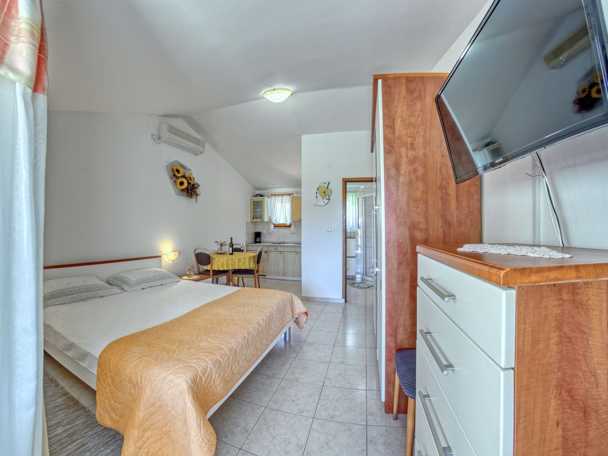 Haus bietet Platz für 2 Gäste. Die Betten sind in Schlafzimmern, die es 1 gibt, innerhalb einer Gesamtfläche von 34m2, angeordnet. Die Gäste haben eine eigene Terrasse zur Verfügung, auf der sie in warmen Sommernächten genießen können. In der Unterkunftseinheit besteht die Möglichkeit des Mitbringens von Haustieren gegen Aufpreis. IM PREIS INBEGRIFFEN: Kurtaxe, Endreinigung, Parkplatz, Internet, Kinderbett, Bügeleisen, Bügelbrett, Föhn. VERBINDLICHE ZUSÄTZLICHE KOSTEN: Aufzahlung für Kurzaufenthalte (prozentualer Zuschlag pro Nächtigungsanzahl: 30% - 1, 20% - 2, 10% - 3). UNVERBINDLICHE ZUSÄTZLICHE KOSTEN: Klimatisierung (5,00 € pro Nacht), Haustiere (7,00 € pro Nacht). Die Verfügbarkeit zusätzlicher Dienstleistungen in Ihrem reservierten Termin und die Preise derselben (falls nicht aufgeführt) müssen im Voraus überprüft werden. Zusätzliche Dienstleistungen die in der Zahlungsaufforderung nicht aufgeführt sind werden direkt beim Vermieter bezahlt, angenommen der Gast nutzt auch diese.