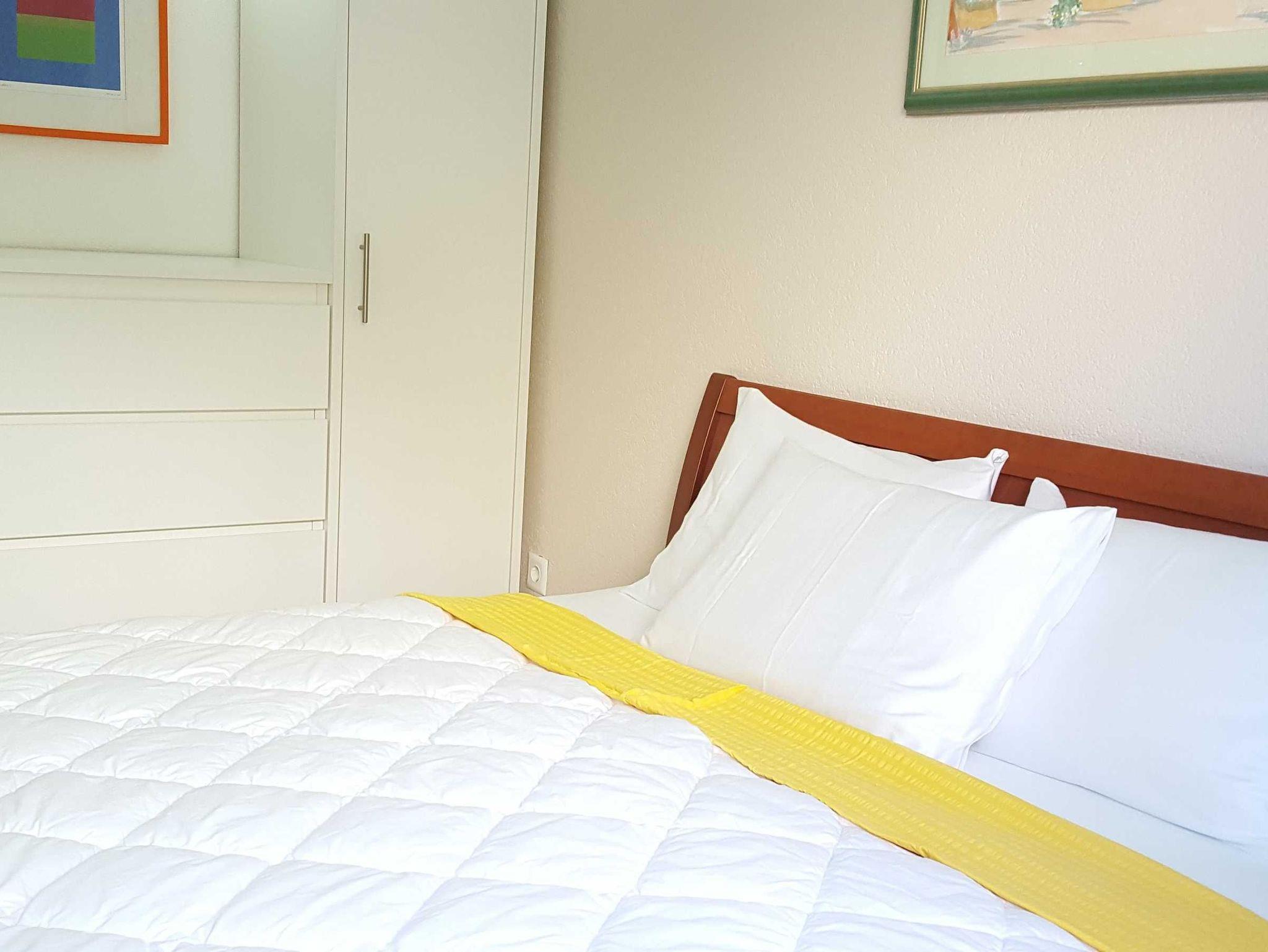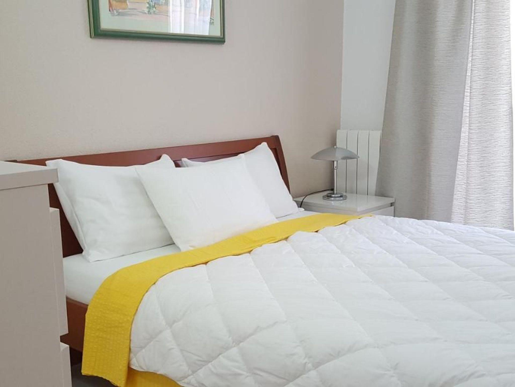 Die Wohnung verfügt über ein gemütlich eingerichtetes Schlafzimmer mit Doppelbett sowie ein Wohn-/Schlafzimmer mit Einzelbett und Schlafsofa.