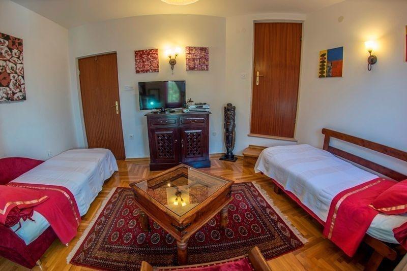 Die Wohnung ist 79m2 und mit hölzernen rustikalen und exotischen Möbeln eingerichtet. Das Schlafzimmer hat ein Doppelbett Abmessungen 160/200. In einem anderen Zimmer sind zwei Betten mit den Abmessungen 80/200. Das Zimmer hat Sat-TV. Der gesamte Raum ist klimatisiert. Es gibt drahtloses Internet.
