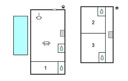 Badezimmer 5m2 (nr. 1) - WC. Warmes und kaltes Wasser. Dusche