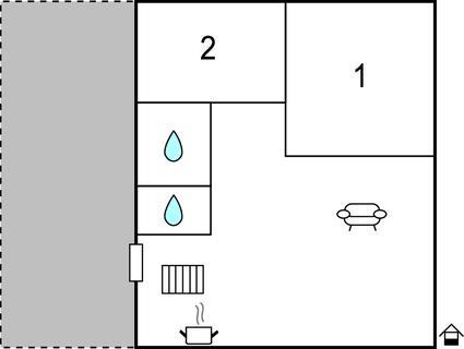 Badezimmer 5m2 (nr. 1) - WC. Warmes und kaltes Wasser. Dusche