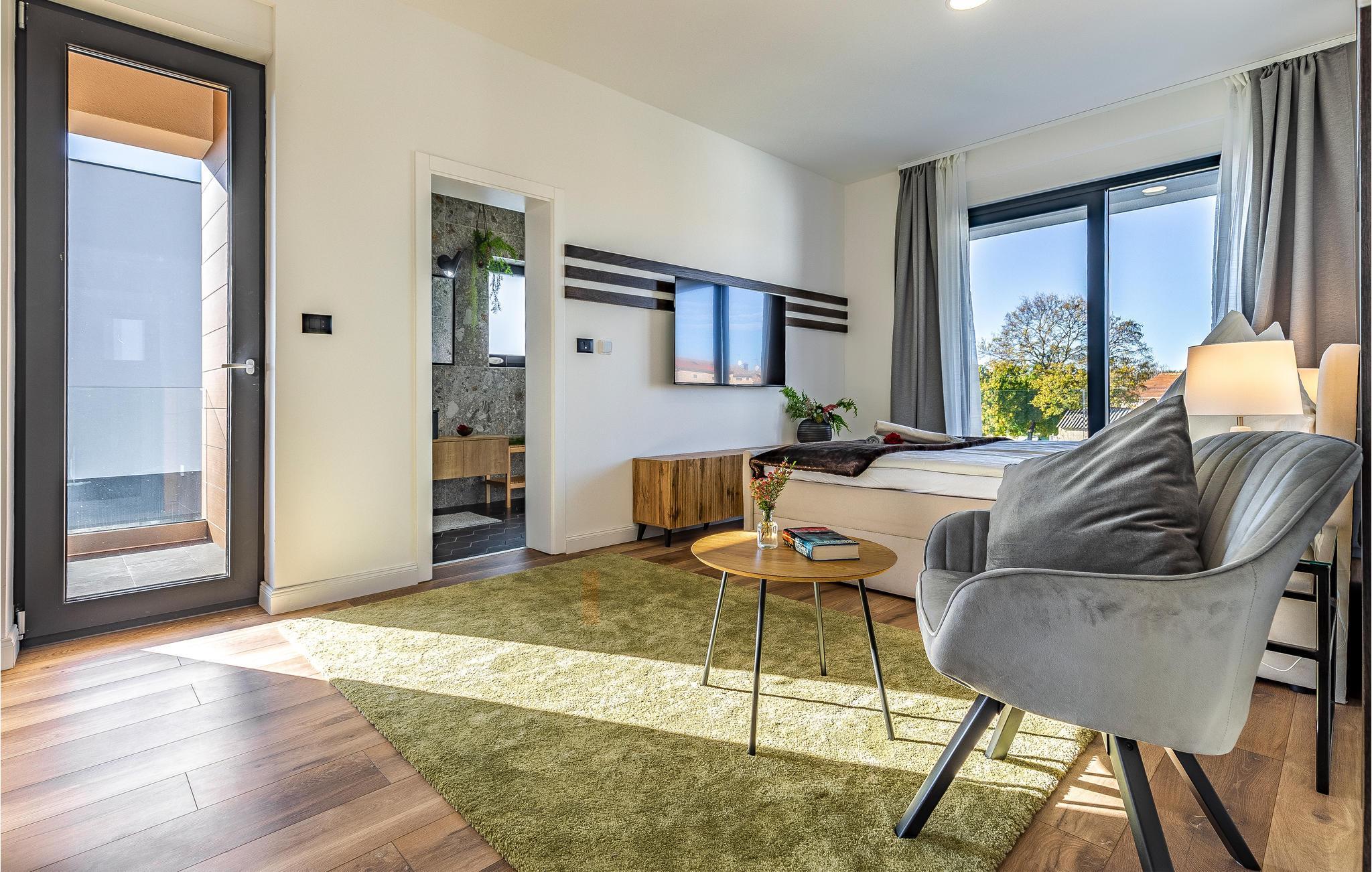 Machen Sie es sich gemütlich und blicken durch die Panoramafenster auf die Landschaft oder kommen im Garten zum Sonnen und Schwimmen im Pool zusammen. Ihre Kinder werden sich über die Spielmöglichkeiten im Garten freuen und bei gemeinsamen gegrillten Abendessen zur Ruhe kommen.