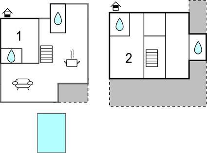 Badezimmer 7m2 (nr. 1) - WC. Warmes und kaltes Wasser. Dusche