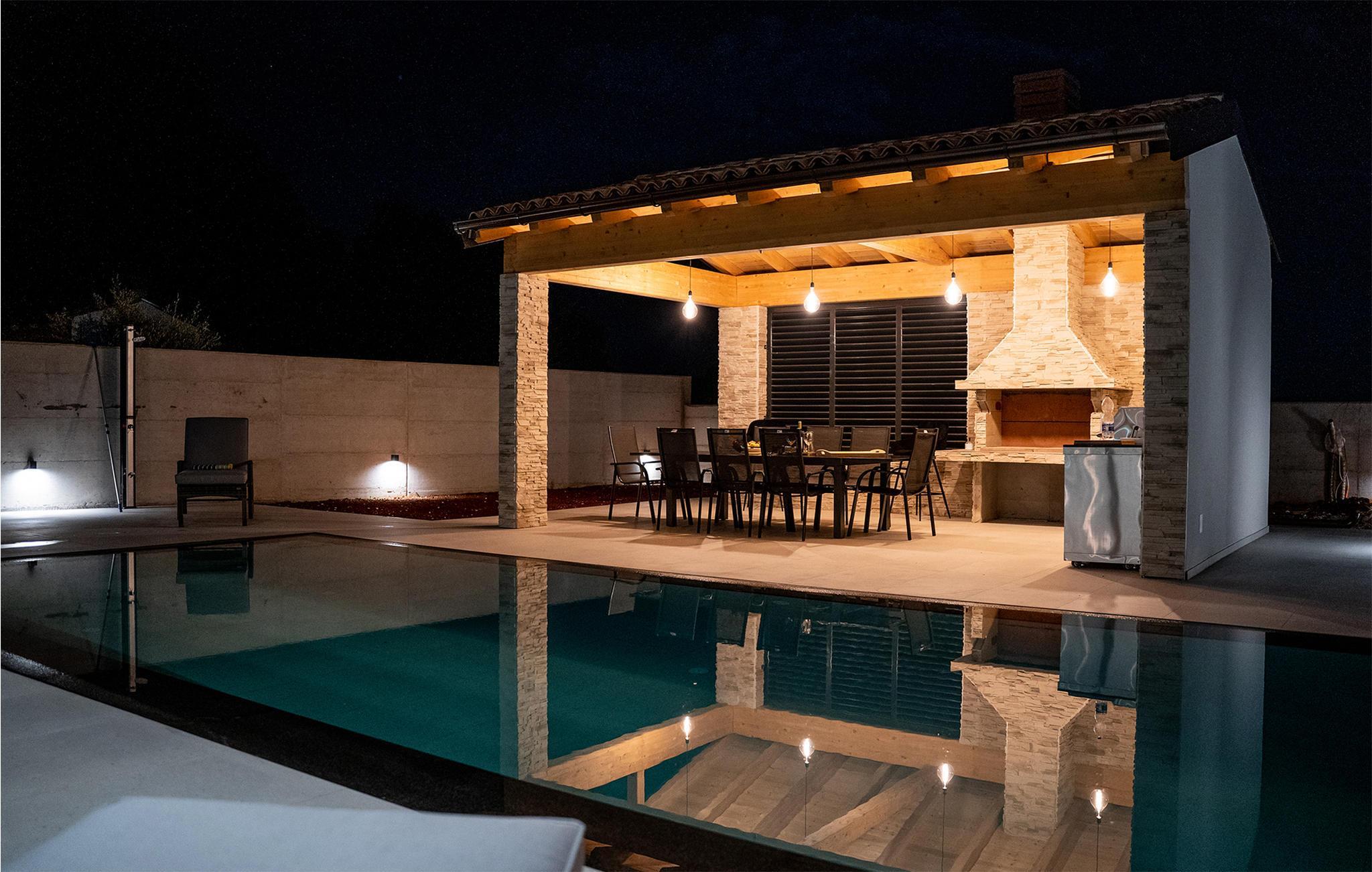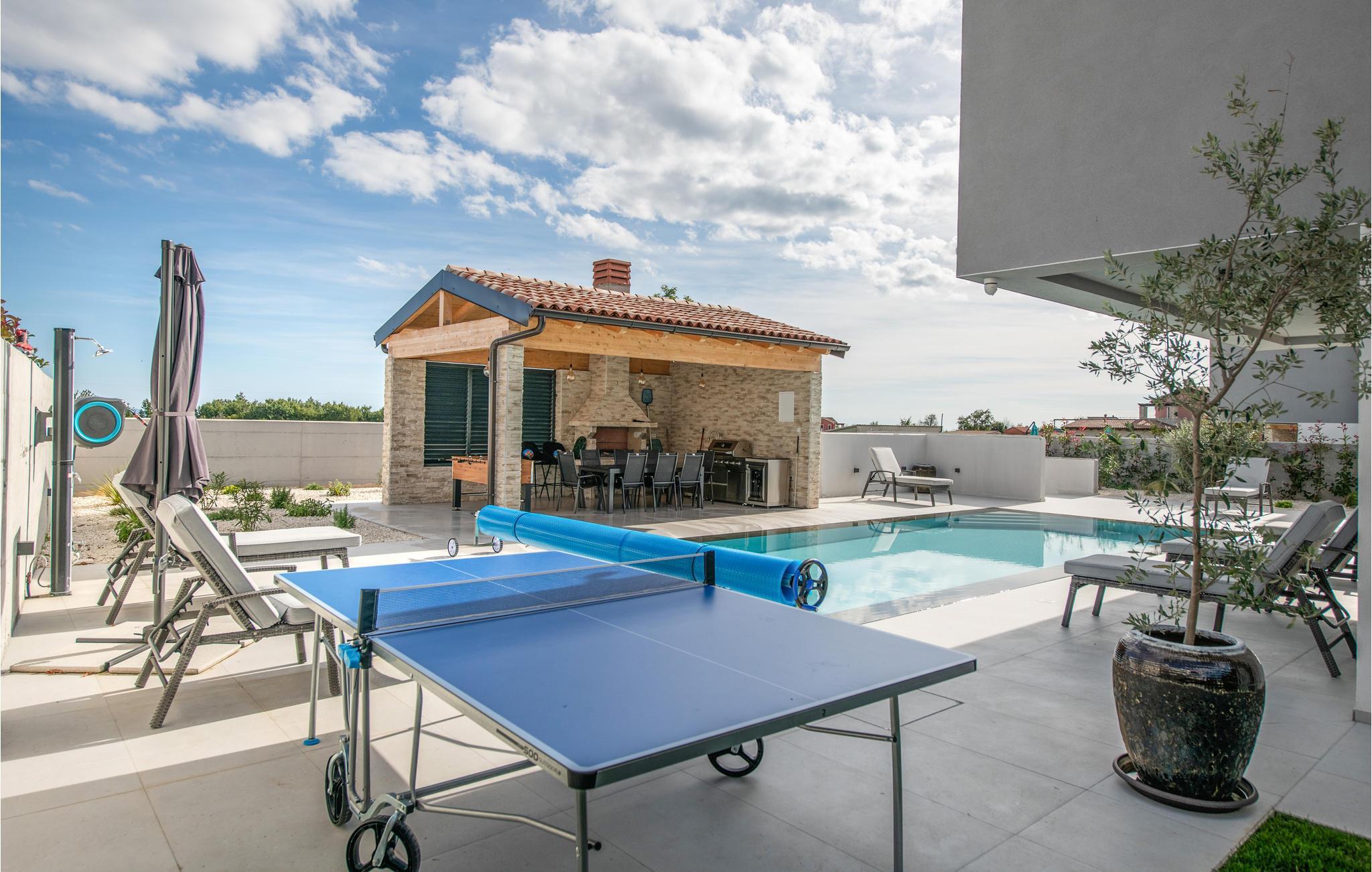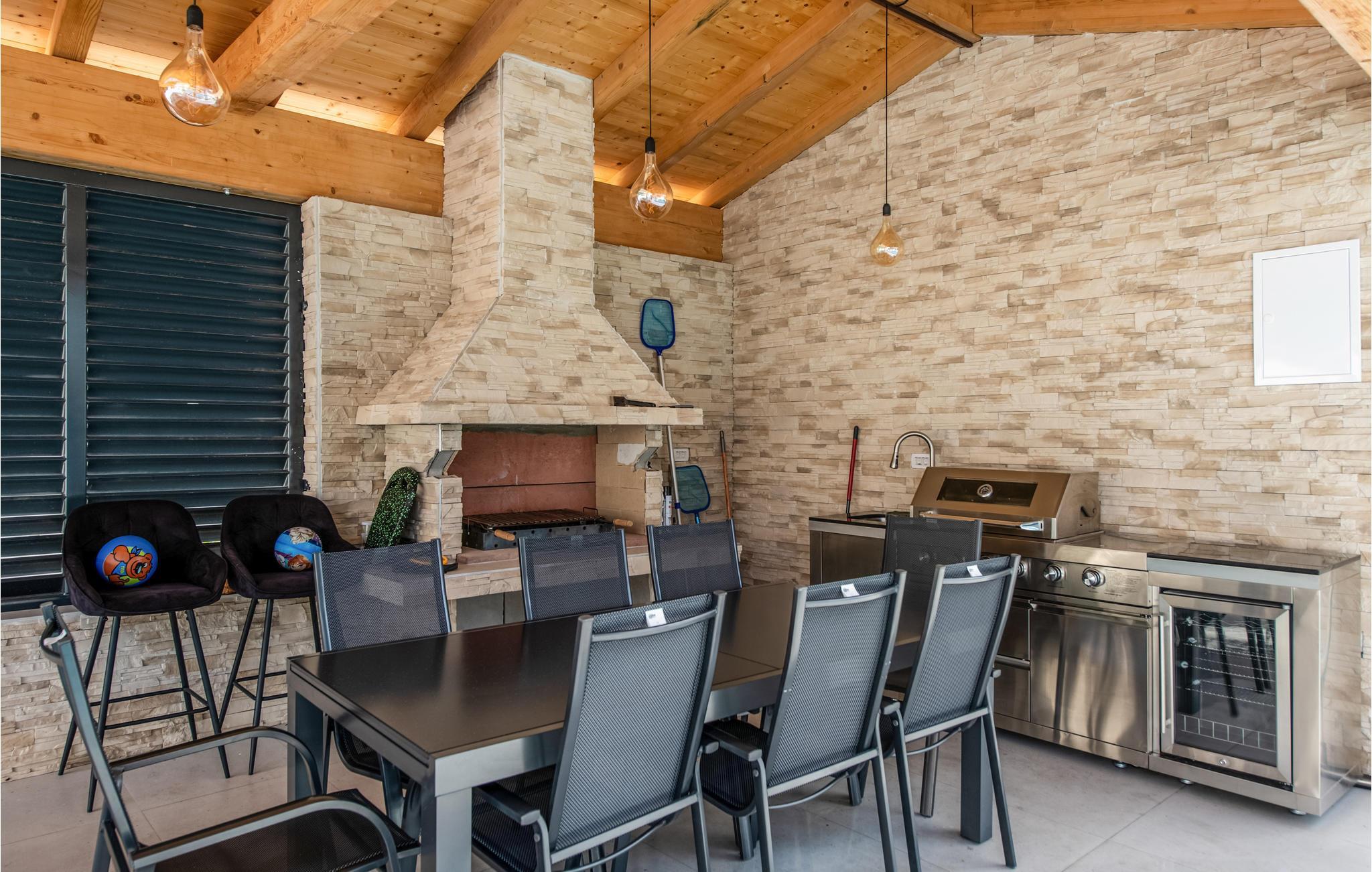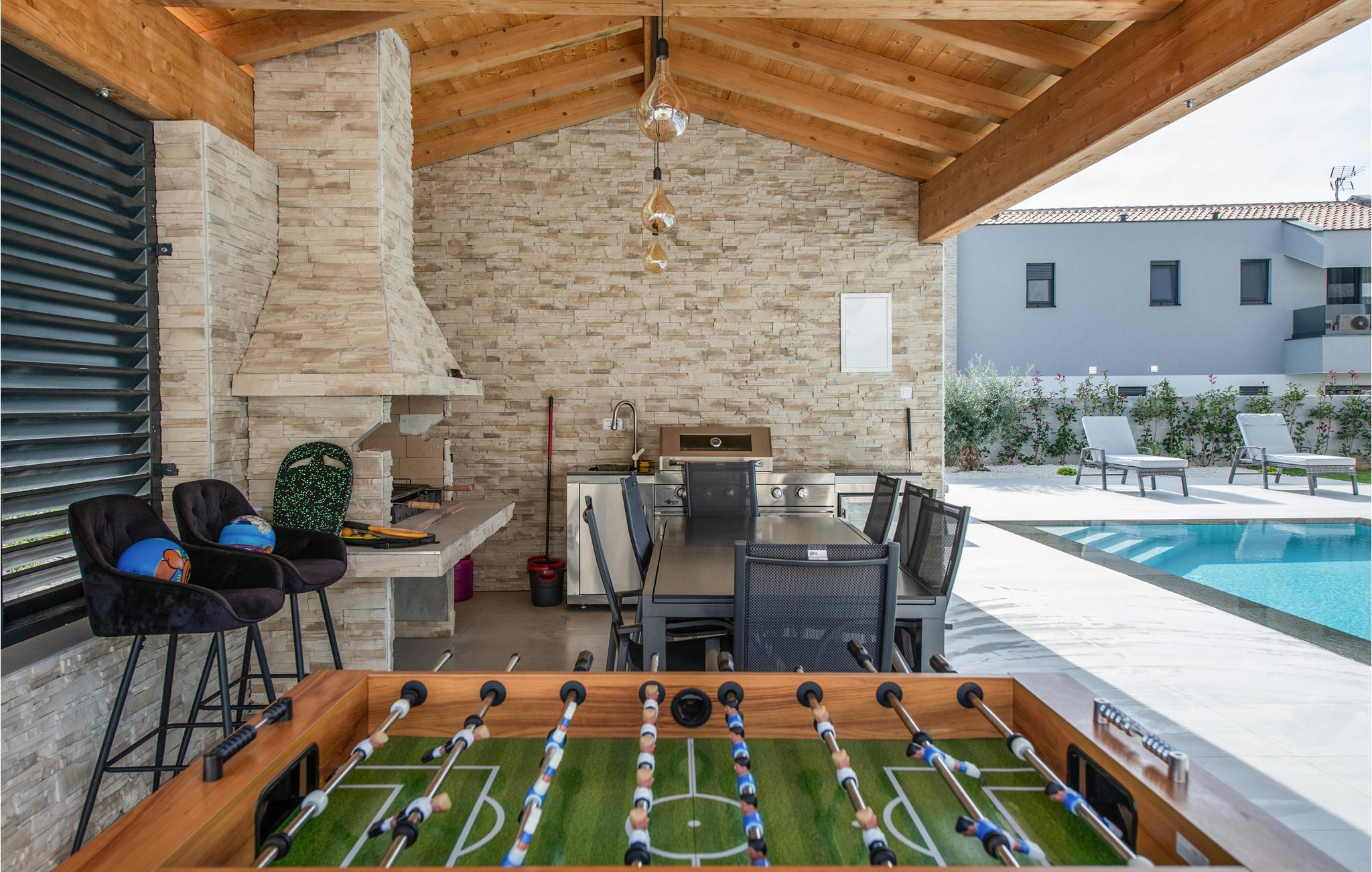 Nicht nur drinnen, sondern auch draußen in der schönen Außenküche können Sie leckere Mahlzeiten zubereiten. Tagsüber werden Sie entspannte Stunden am beheizten Außenpool verbringen, während die Kinder schaukeln oder sich beim Tischtennis vergnügen.