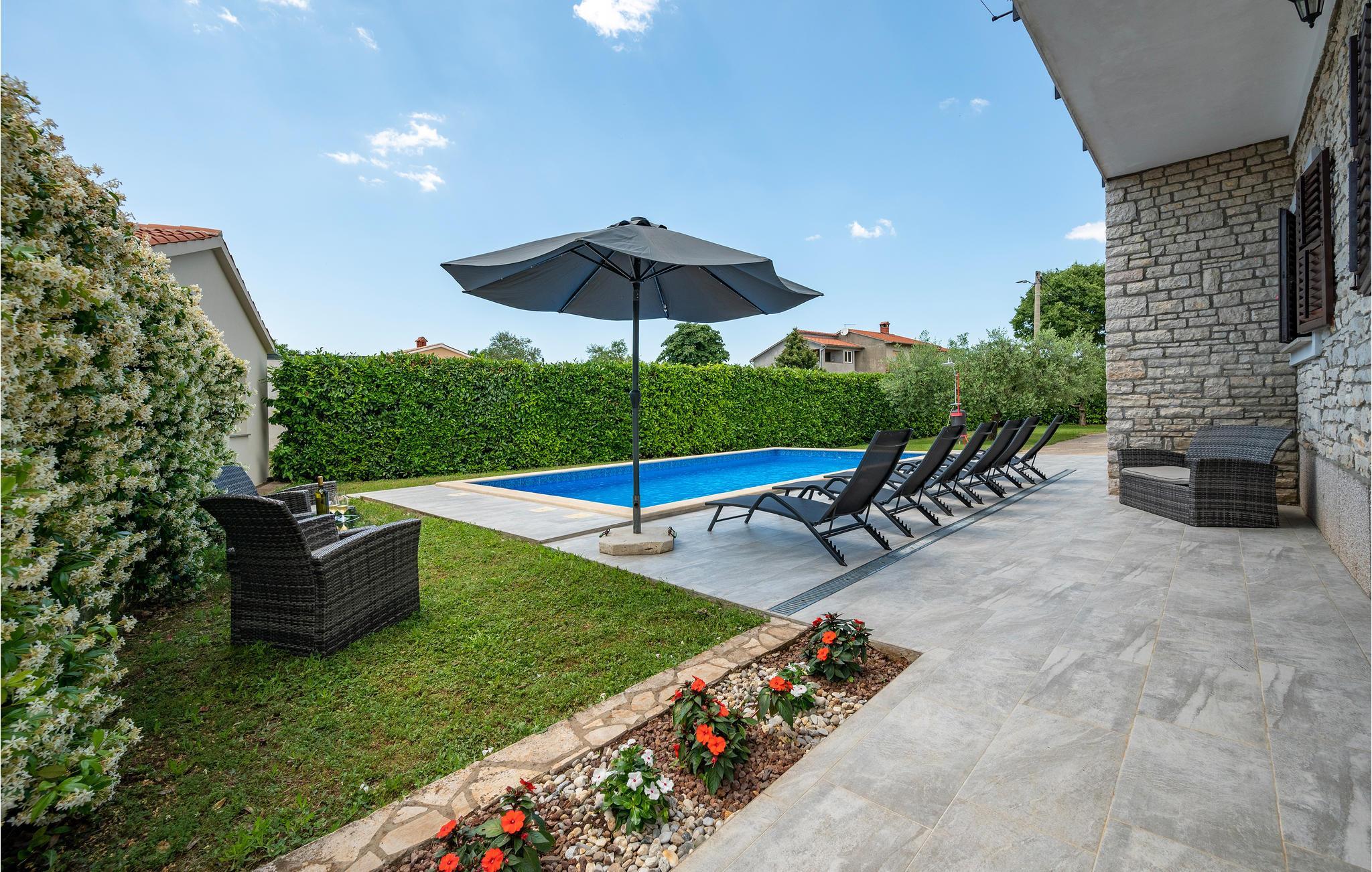 Im Landesinneren von Istrien, in der Nähe von Barban, befindet sich dieses komfortable Ferienhaus mit Pool. Es beherbergt zwei, über Außentreppen zugängliche Ferienwohnungen und aus jeweils drei Schlafzimmern, Wohnzimmer, Küche und Bad bestehen. Auf dem umzäunten Grundstück stehen Ihnen ein Pool und eine überdachte Terrasse mit Grill zur Verfügung und Ihre Kinder können unbeschwert im Garten spielen. Moderne Abenteuer werden im Adrenalinpark Glavani geboten und im Dorf Manjadvorci gibt es eine Ranch, wo Reitausflüge zu Pferd angeboten werden. In der mittelalterlichen Stadt Svetvincenat finden Sommerveranstaltungen statt.