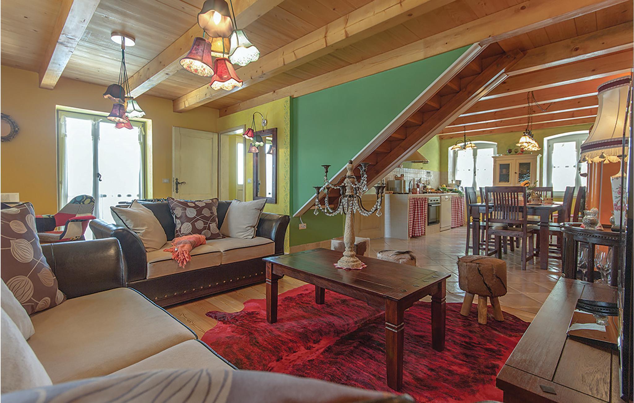 Dieses traditionelle und romantische Ferienhaus in der ruhigen Ortschaft Hrboki hat ein rustikales Interieur.