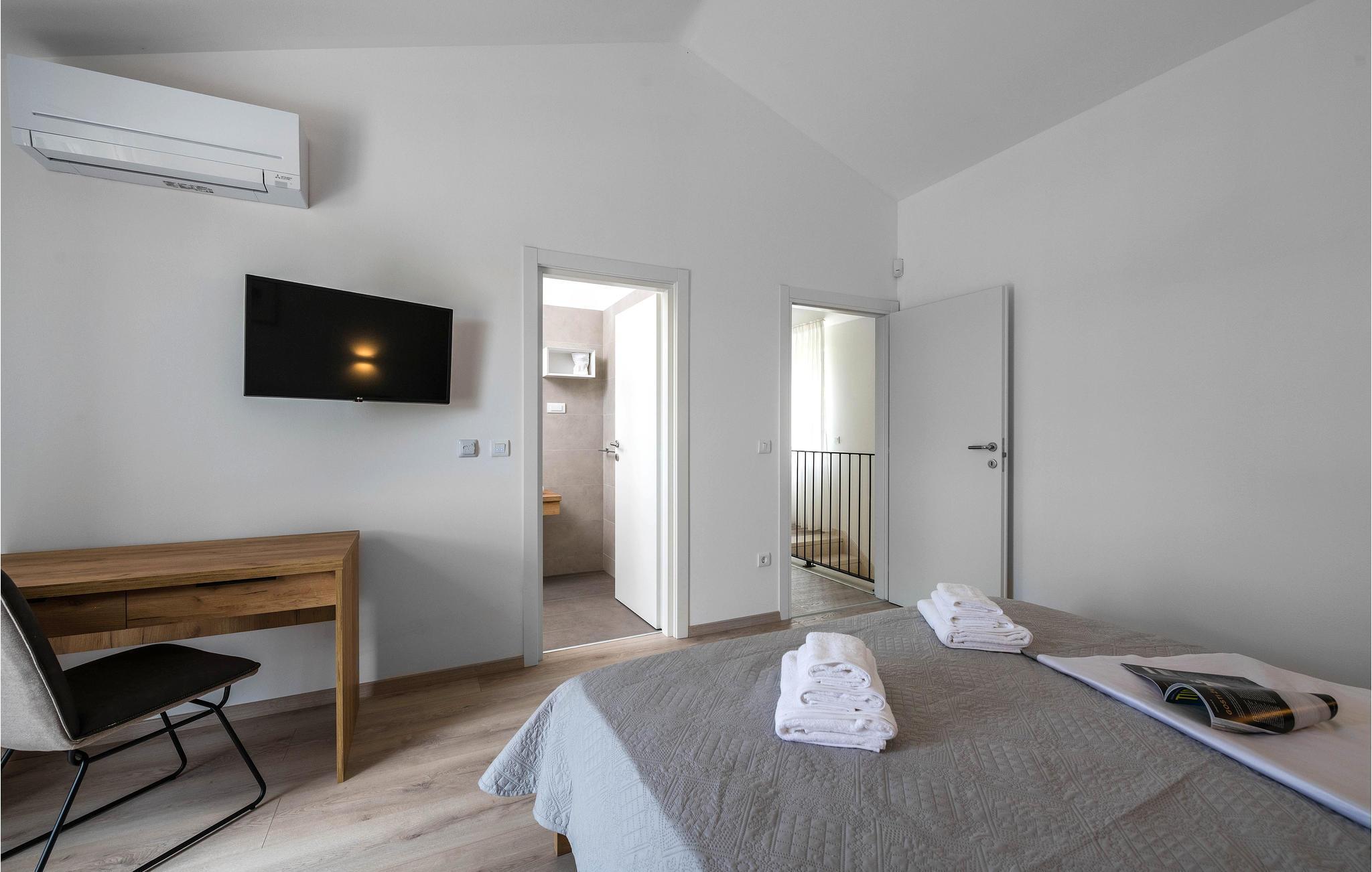 Dieses schöne Ferienhaus befindet sich in dem kleinen Ort Manjadvorci. Moderne Bauweise und wunderschön dekorierte und gut ausgestattete Innenräume bieten Ihnen mit Sicherheit den notwendigen Komfort für einen angenehmen Urlaub. Eine geräumige überdachte Terrasse verbindet das Erdgeschoss mit einem Sonnendeck und einem Pool, der den Hof dominiert. Der Pool ist auch mit Hydromassagedüsen für noch mehr Komfort ausgestattet. Unterhalb des geräumigen Grundstücks befinden sich Einrichtungen für Kinder. Probieren Sie traditionelle istrische Spezialitäten und erlesene Weine in nahe gelegenen Restaurants und Tavernen. Besuchen Sie im Ort selbst die Reiterfarm und lernen Sie das Reiten. Für diejenigen, die Spaß haben möchten, gibt es auch den Adrenalinpark Glavani. Die nächsten Strände befinden sich in der Bucht von Krnicki Porat, Rakalj oder Blaz. Das Haus liegt an der Hauptstraße und ist daher leicht zugänglich und ideal für diejenigen, die den südlichen Teil der istrischen Halbinsel erkunden möchten. Pula, Kap Kamenjak, Fažana, auf der anderen Seite von Istrien Rovinj, Porec oder an der Ostküste von Labin und Rabac erwarten Sie mit ihren Attraktionen. Zentralistrien wird Sie mit mittelalterlichen Städten wie Svetvincenat und Zminj verzaubern.