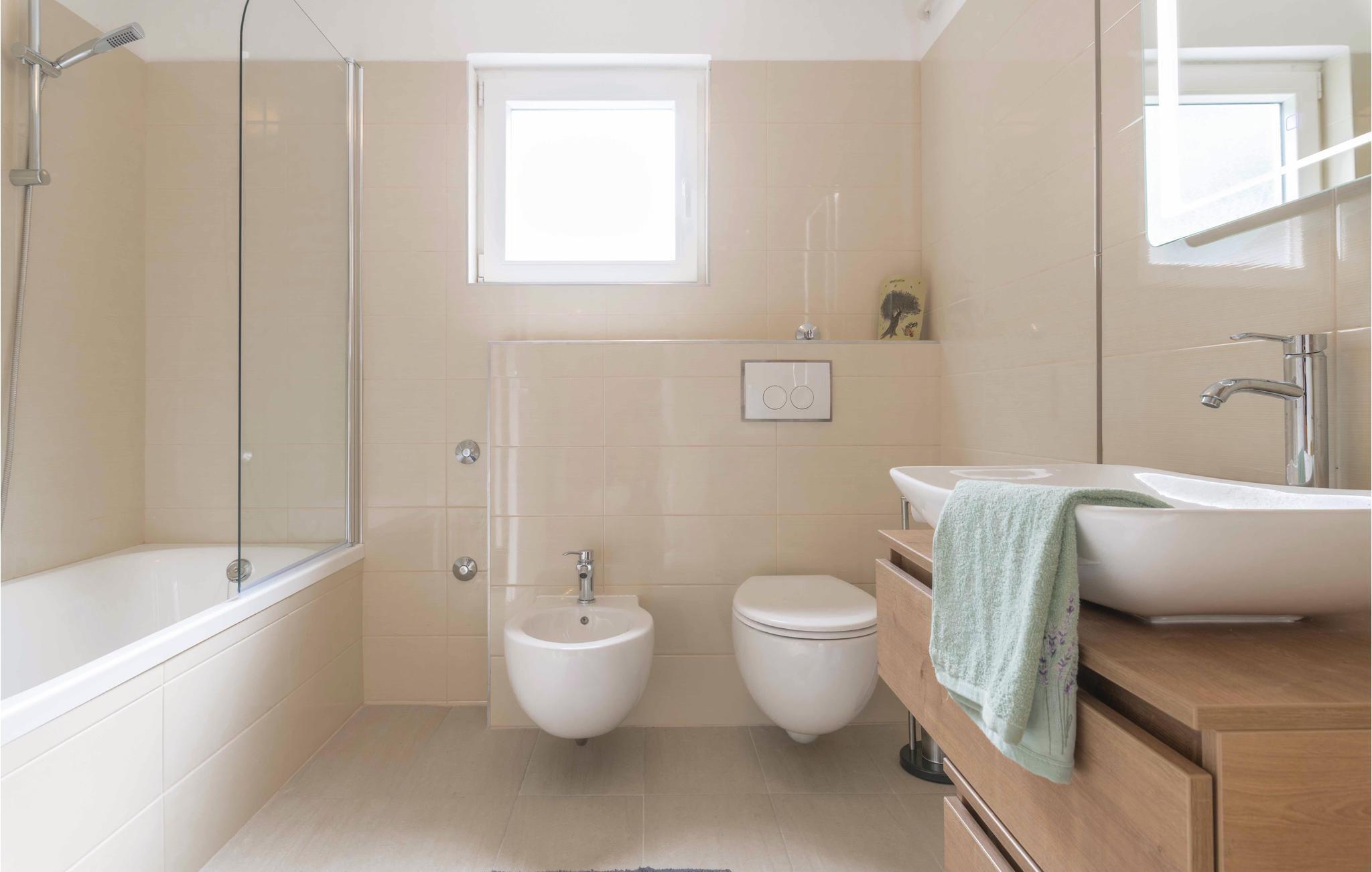 Badezimmer (nr. 3) - WC. Warmes und kaltes Wasser. Badewanne