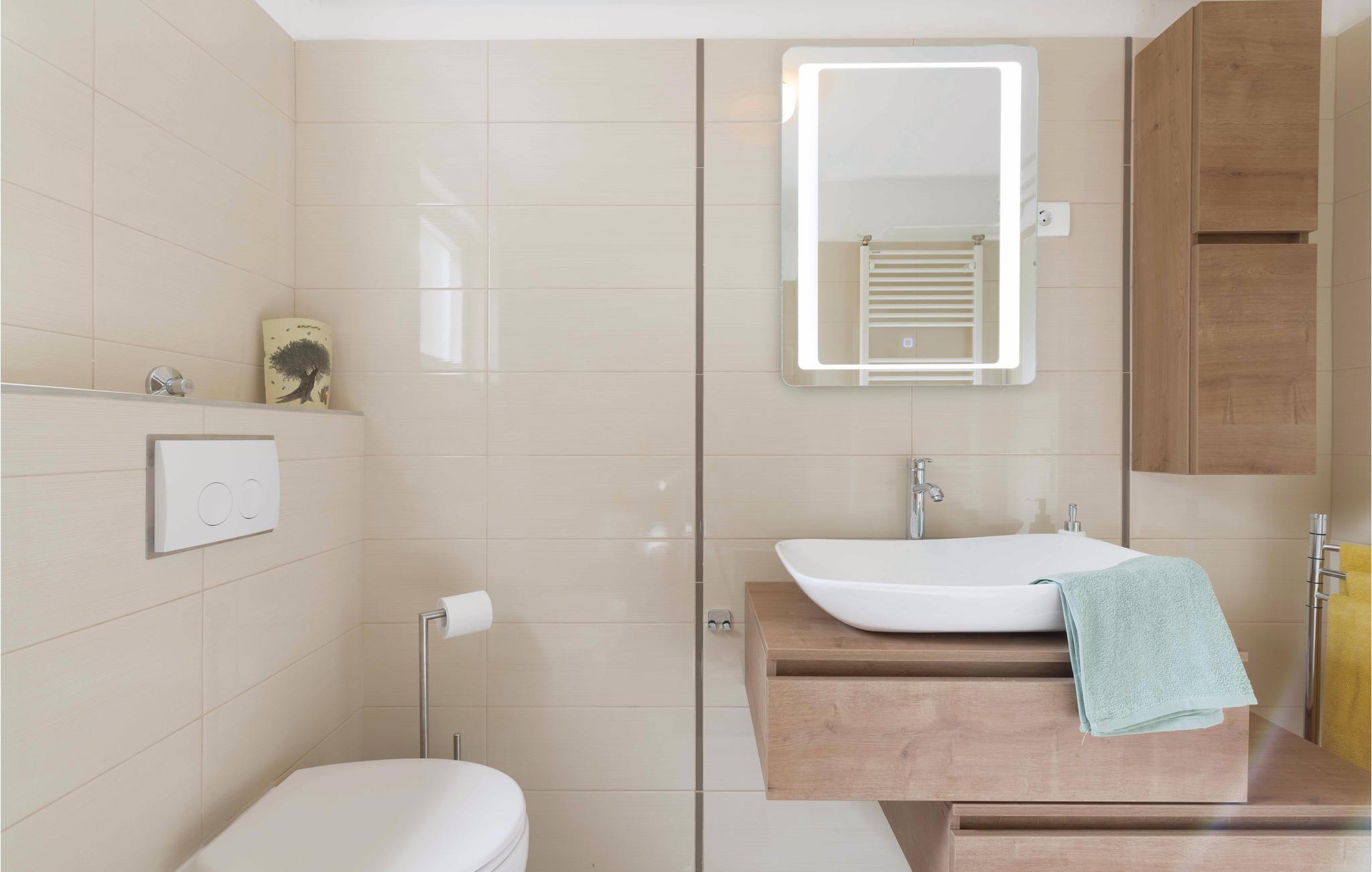 Badezimmer (nr. 2) - WC. Warmes und kaltes Wasser. Dusche