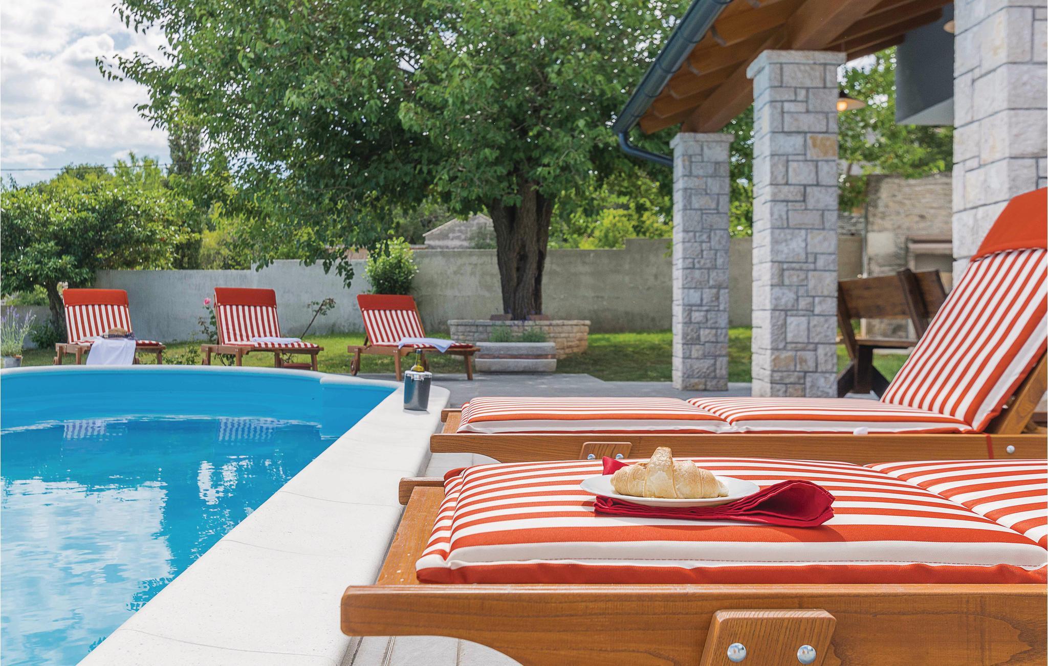 Im kleinen Ort Manjadvorci im Herzen Istriens, befindet sich dieses Ferienhaus mit Pool auf einem eingezäunten Grundstück. Die günstige Lage des Feriendomizils ermöglicht Ihnen sämtliche Tagesausflüge kreuz und quer durch Istrien zu unternehmen. Für Aktivurlauber gibt es einen Adrenalinpark und eine Pferderanch in der Nähe. Erkunden Sie die wunderschönen kleinen Orte in der Umgebung und besuchen Sie die Städte Porec, Rovinj und Pula, die Sie mit ihrem Kulturerbe und einem reichen Gastronomieangebot bezaubern werden. Die nächsten Strände befinden sich in den Orten Krnica und Duga uvala. Wählen Sie dieses Ferienobjekt und sichern Sie sich einen unvergesslichen Urlaub.