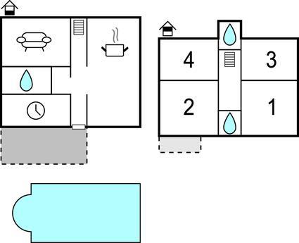 Badezimmer (nr. 1) - WC. Warmes und kaltes Wasser. Dusche