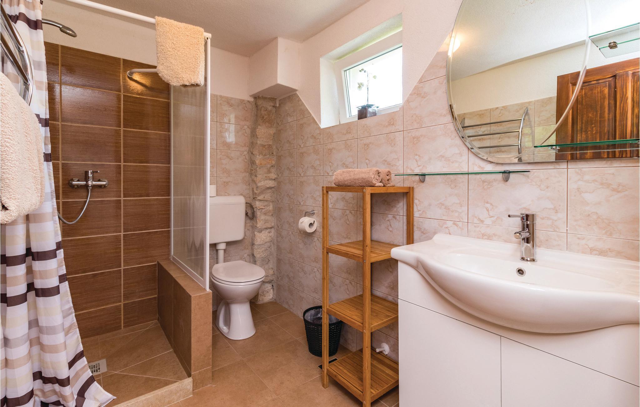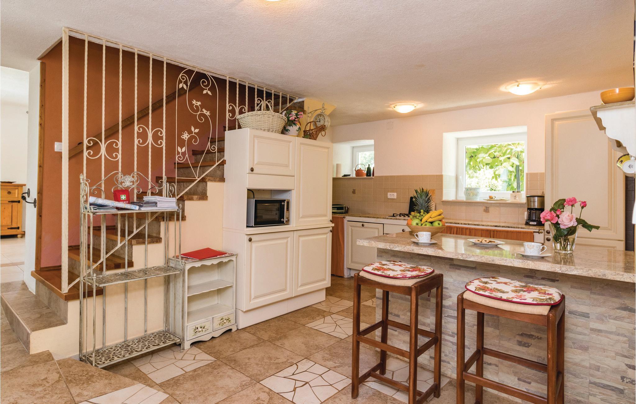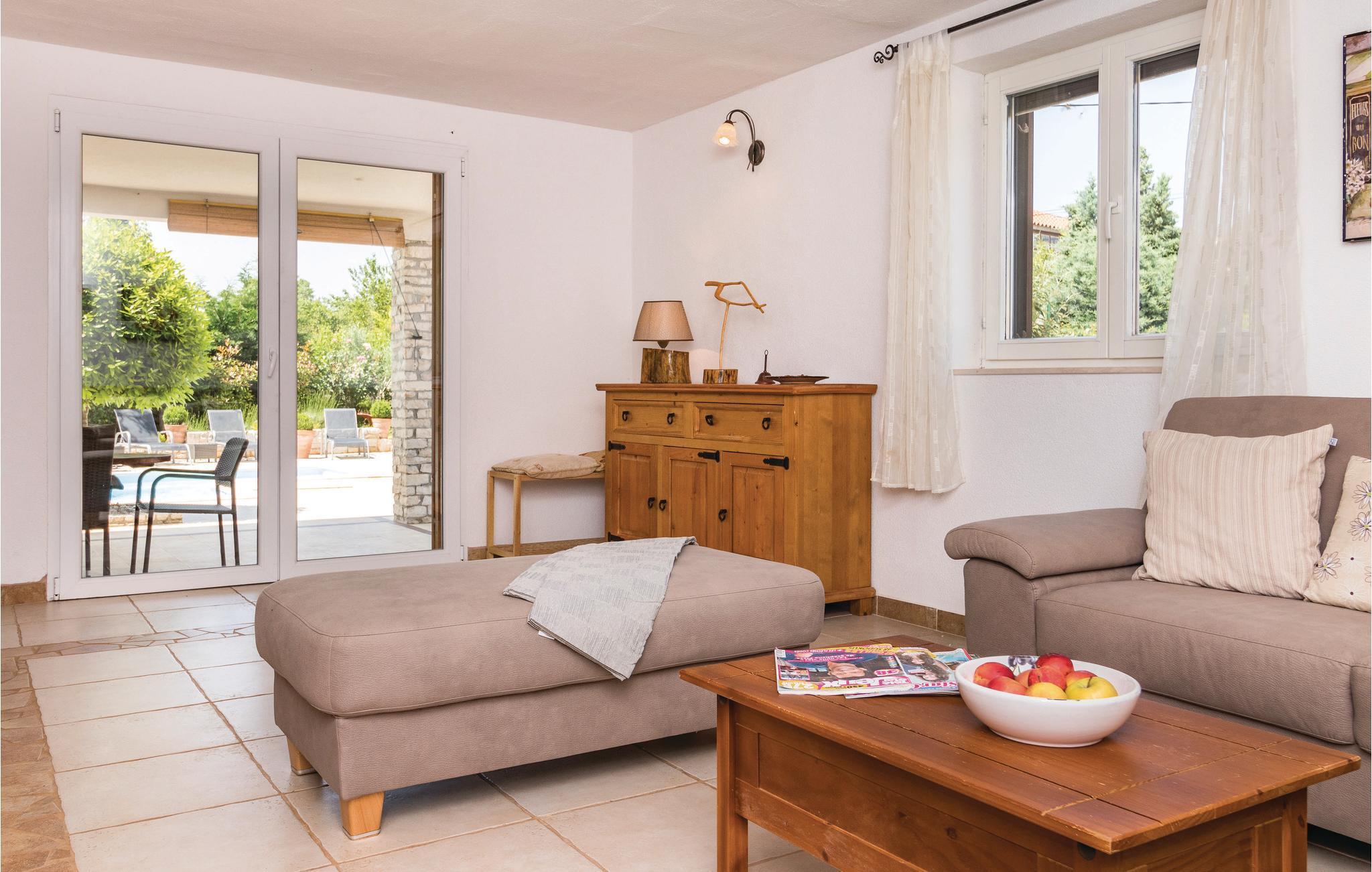 Dieses wunderschöne Poolhaus befindet sich in dem kleinen, istrischen Dorf Manjadvorci. Bei der Einrichtung wurden rustikale und moderne Elemente kombiniert. Die Räume sind großzügig gestaltet und jedes Schlafzimmer verfügt über ein eigenes Bad. Der Fährhafen Brestova, von dem aus Sie zu den Inseln Cres und Losinj fahren können ist ca. 1 Autostunde entfernt. Unbedingt besuchen sollten Sie die bekannte Riviera von Opatija, die Königin des kroatischen Tourismus. Auch die antike Stadt Pula mit dem Amphitheater ist sehr sehenswert. Das historische Städtchen Labin mit zahlreichen Ausstellungen und der Badeort Rabac sind ebenfalls einen Besuch wert. In der unmittelbarer Nähe befindet sich die Ranch 'Barba Tone', wo Sie Reitstunden nehmen und Ausflüge mit den Pferden durch Istrien unternehmen können. Auch therapeutisches Reiten möglich. Hier werden auch therapeutische Sitzungen für Erwachsene und Kinder angeboten. In der Nähe befindet sich eine traditionelle Konoba in der Sie zu günstigen Preisen einheimische Spezialitäten und Weine probieren können. Im Erdgeschoß befinden sich ein Schlaf- und Badezimmer für Menschen mit Behinderungen.
