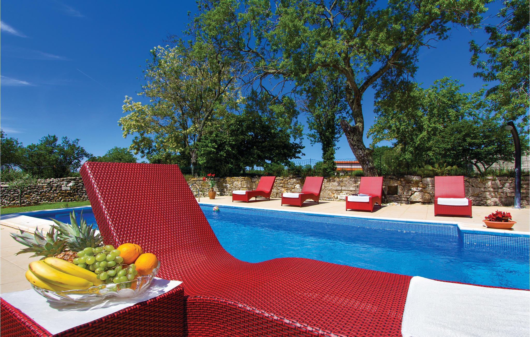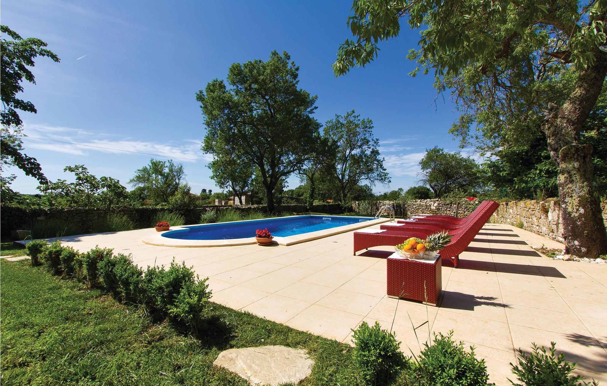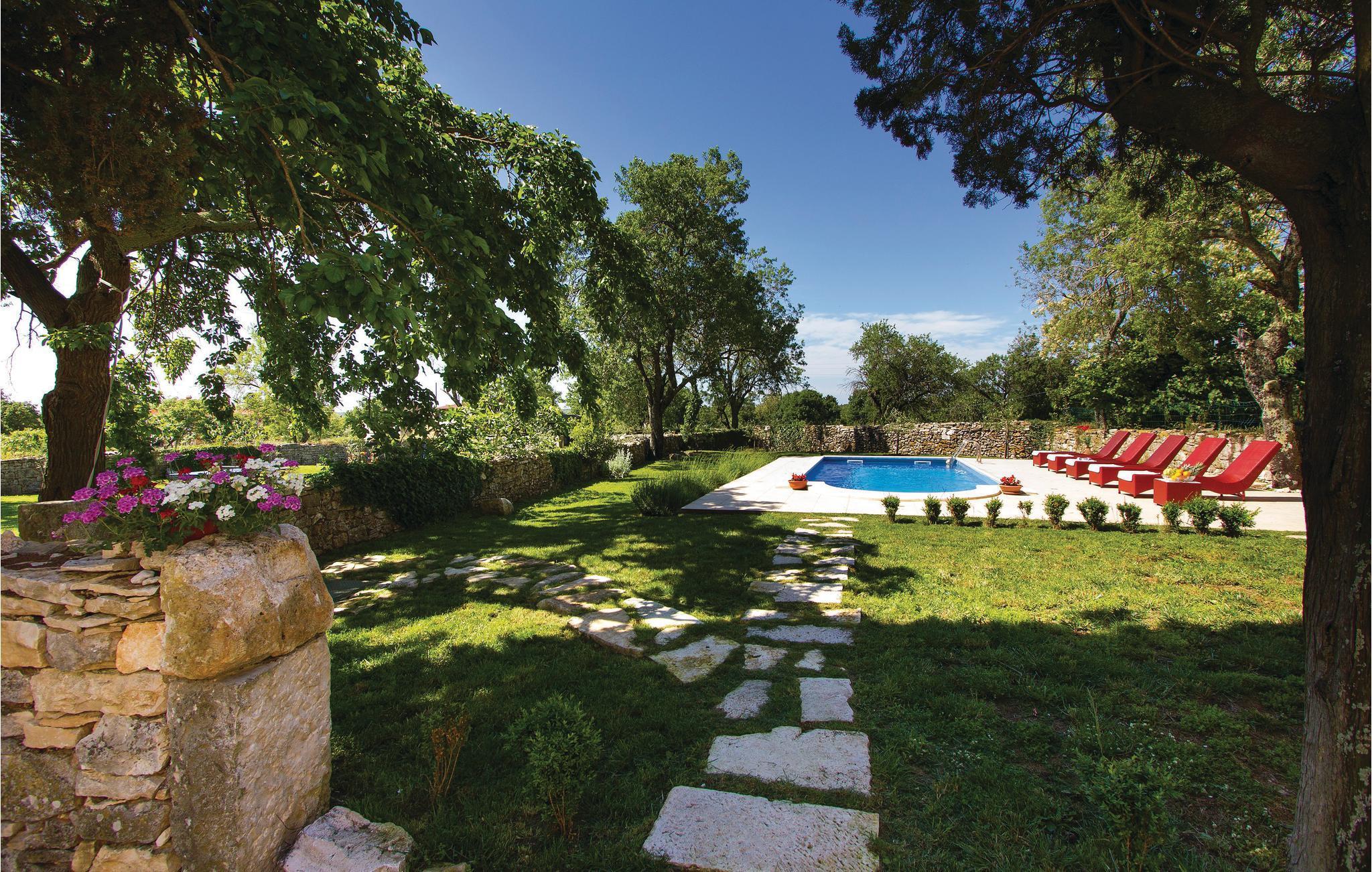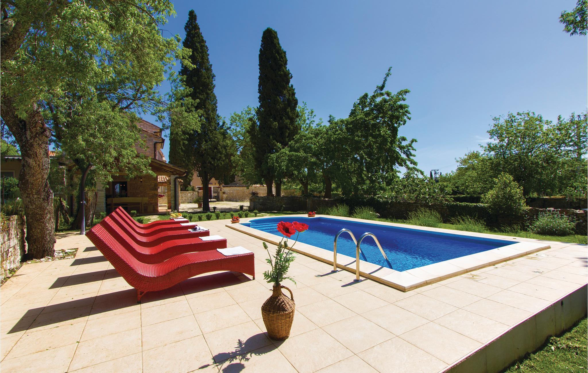In einem kleinen, romantischen Dorf mitten in der ländlichen Idylle Istriens steht dieses herrliche Ferienanwesen mit Pool. Es ist rustikal eingerichtet und hat eine für diese Region typische Raumaufteilung. Der Wohnraum mit einem Kamin und der Essbereich befinden sich im Erdgeschoss, und jedes der drei Schlafzimmer verfügt über ein eigenes Bad. Das vierte gemeinsame Badezimmer befindet sich im Erdgeschoss.