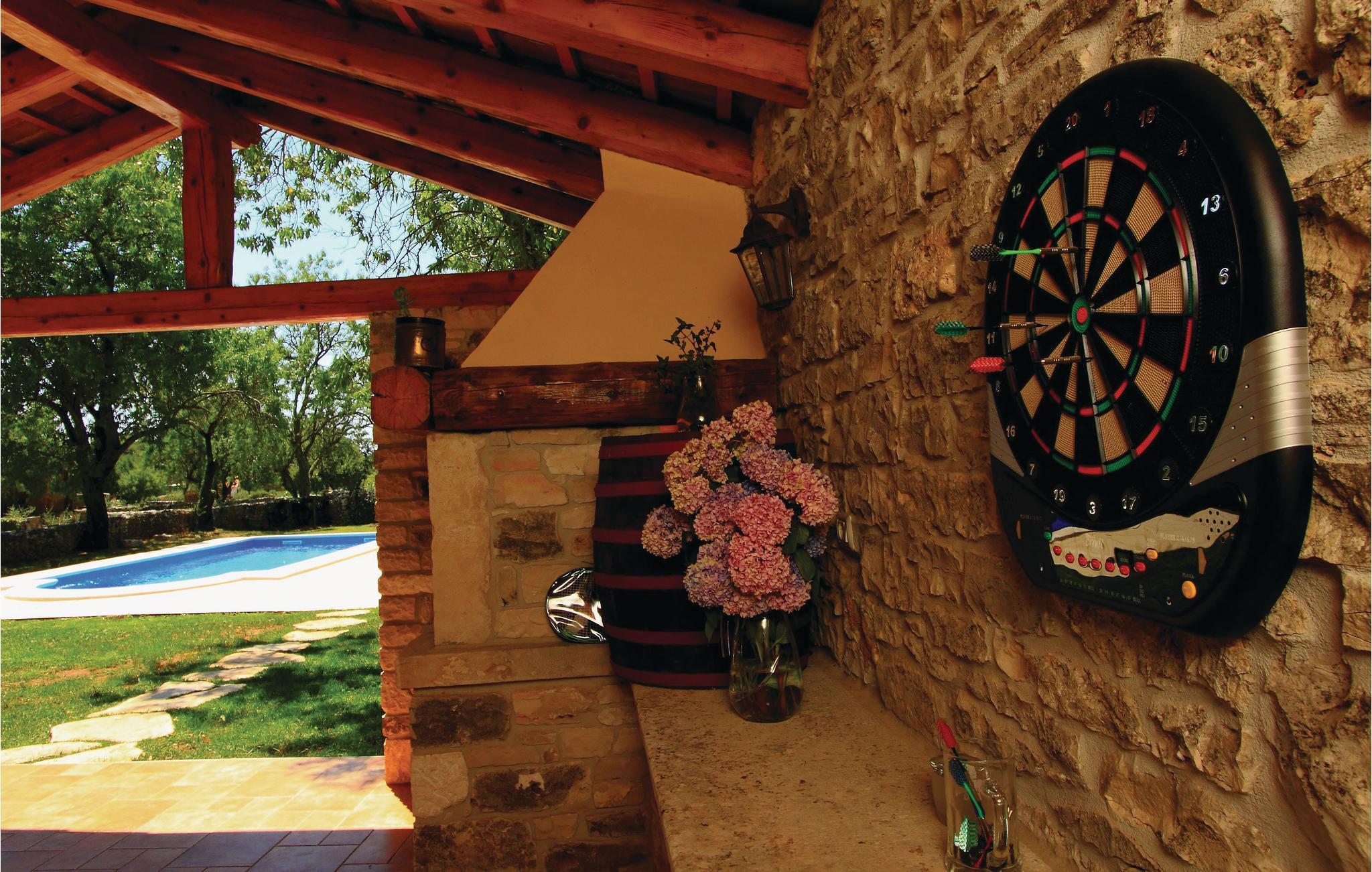 Auf dem 3000 m² großen Grundstück gibt es viel Platz für Kinder zum Spielen und Schaukeln. Der Pool lädt an heißen Tagen zu einer Erfrischung ein und auf der überdachten Terrasse können Sie gemütliche, gemeinsame Abende bei einem Glas Wein verbringen. Die Eigentümer des Hauses haben auch ein Restaurant TURIST in der Nähe, wo Sie lokale istrische Spezialitäten zu sehr vernünftigen Preisen probieren können. Auf dem Nachbargrundstück befindet sich die bekannte Barba Tone Reitranch, die Reitstunden und Touren anbietet. Hier sind außer Pferden noch viele andere Tiere zu sehen, besonders schön für Kinder. Abenteuerlustige werden ihren Spaß im nahen Glavani Adrenalinpark oder dem 4x4 Quad Club haben. Empfehlenswert ist ein Besuch in Rovinj, Rabac oder Medulin mit dem schönen Sandstrand. Genießen Sie die Ruhe und Behaglichkeit des ländlichen Lebens. Die nächsten Strände befinden sich in Duga Uvala und Luka Krnica.