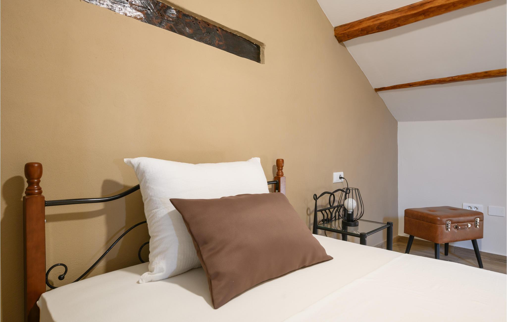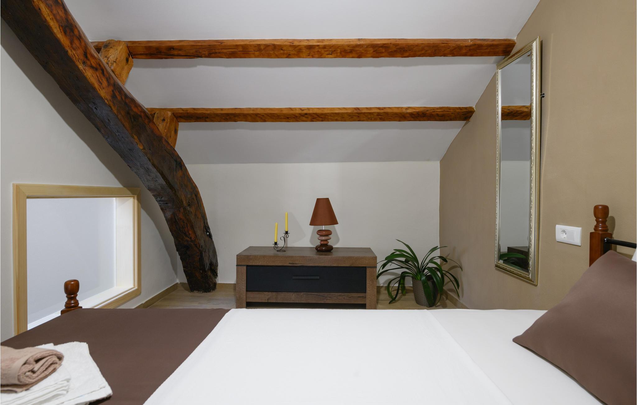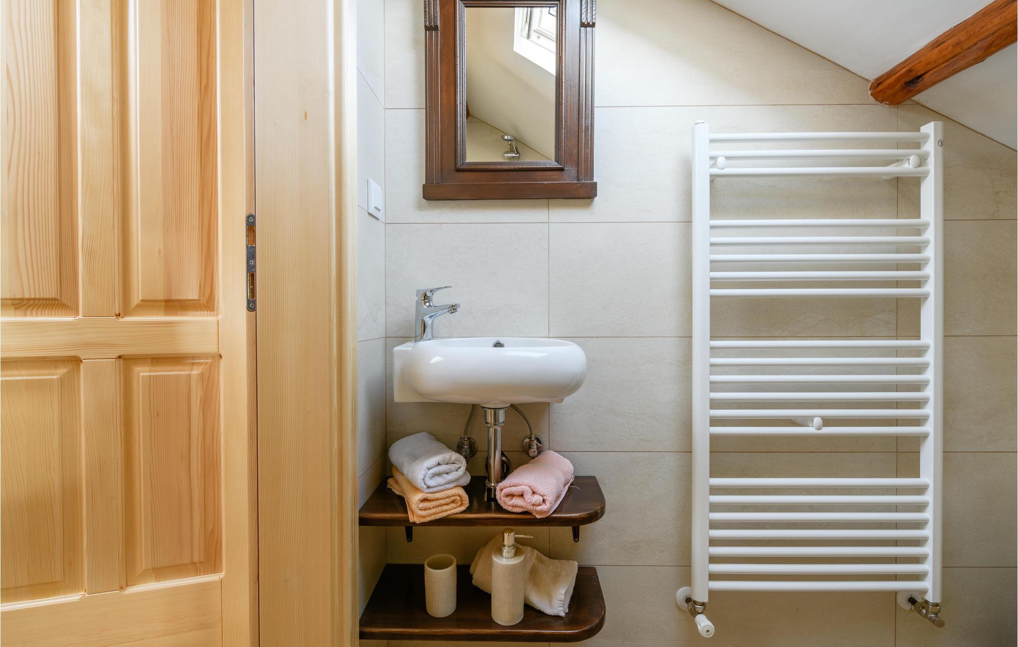 Es fügt sich perfekt in die ländliche Idylle ein. Das Erdgeschoss besteht aus einem Wohnzimmer und einem großen Badezimmer, der erste Stock besteht aus zwei Schlafzimmern, einem Badezimmer und einem Aktivitätsraum, der mit einer überdachten Terrasse verbunden ist, auf der Sie Tischtennis und Darts spielen können. Im Dachgeschoss befinden sich zwei weitere klimatisierte Schlafzimmer und ein Badezimmer. Die niedrigste Höhe des Dachbodens beträgt 60 cm. Die untere Terrasse ist ideal für Geselligkeit bei der Zubereitung von Grillgerichten.