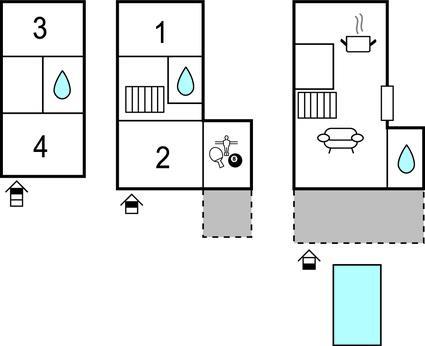 Badezimmer 8m2 (nr. 1) - WC. Warmes und kaltes Wasser. Badewanne