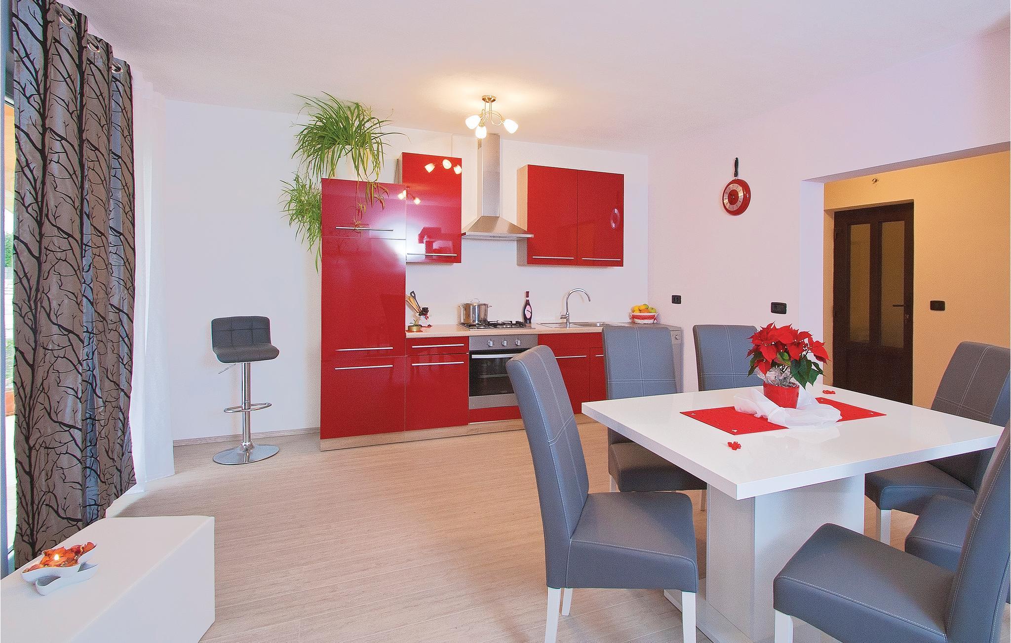 Diese moderne Ferienwohnung in ländlicher Umgebung lädt Sie dazu ein, mit Freunden und Ihrer Familie einen traumhaften Urlaub zu verbringen. Sie liegt im Erdgeschoss, im kleinen Ort Orbanici und besteht aus zwei Schlafzimmern und einem komfortablen Wohnzimmer mit Küche und Essbereich, von wo Sie auf die überdachte Terrasse gelangen. Auf dem umzäunten und gepflegten Grundstück können Ihre Kinder unbeschwert spielen und mit den kleinen Fußballtoren und dem Badmintonnetz viel Spaß beim Spielen haben. Besuchen Sie den Adventurepark Glavani oder unternehmen Reittouren in der Ranch Barba Tone. Genießen Sie einen vielseitigen Urlaub auf der Halbinsel Istrien.