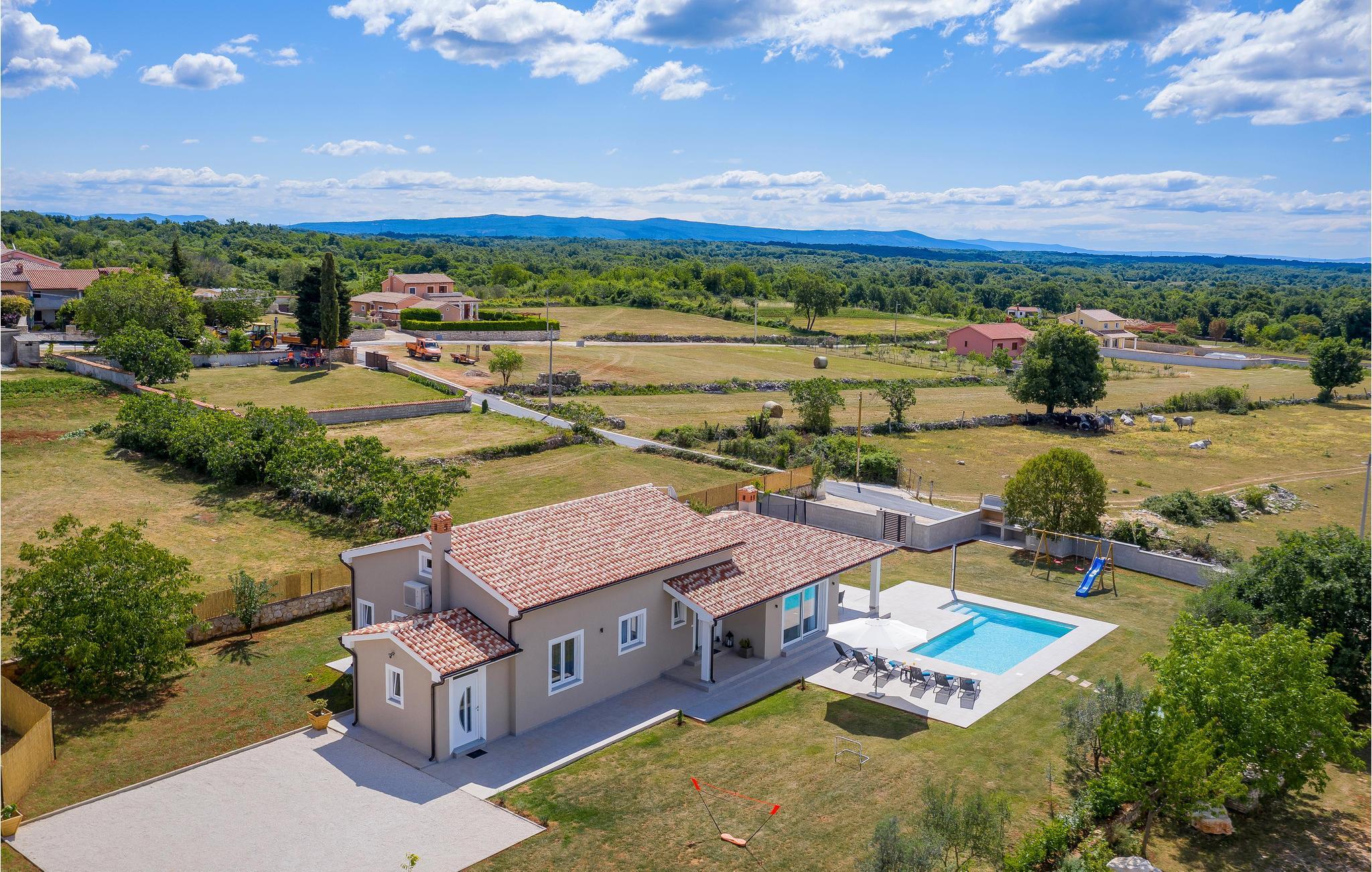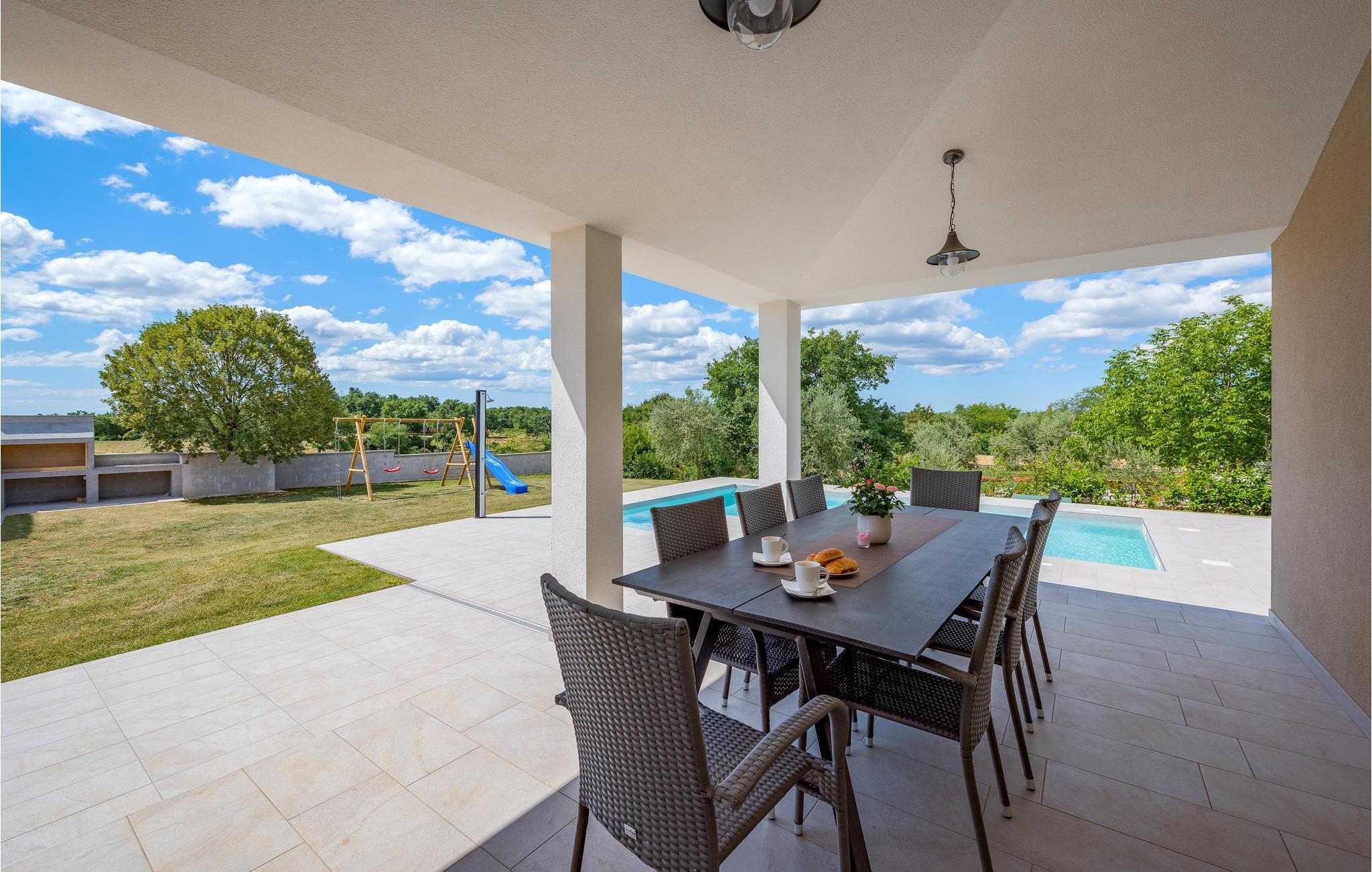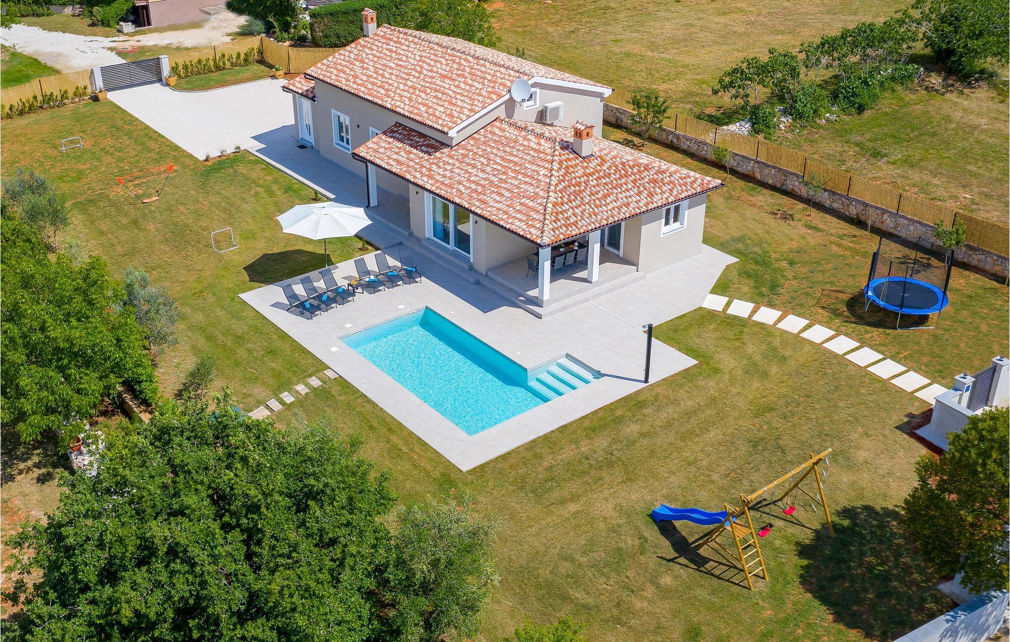 Verbringen Sie einen erholsamen Urlaub mit Familie und Freunden in diesem von viel Grün umgebenen Ferienhaus, das sich im kleinen Dorf Orihi, in der Nähe von Barban, befindet. Es ist schön eingerichtet und mit allem ausgestattet, was für einen angenehmen Aufenthalt benötigt wird. Der gepflegte Garten lädt zum Verweilen im Freien ein, egal ob Sie im Pool schwimmen oder köstliche Mahlzeiten am Grill zubereiten und anschließend gemeinsam auf der Terrasse sitzen. Aktivurlauber haben die Möglichkeit den Glavani Adrenalin Park und die Barba Tone Ranch in Manjadvorci zu besuchen. Die nächsten Strände finden Sie in den Orten Rakalj und Krnicki Porat.