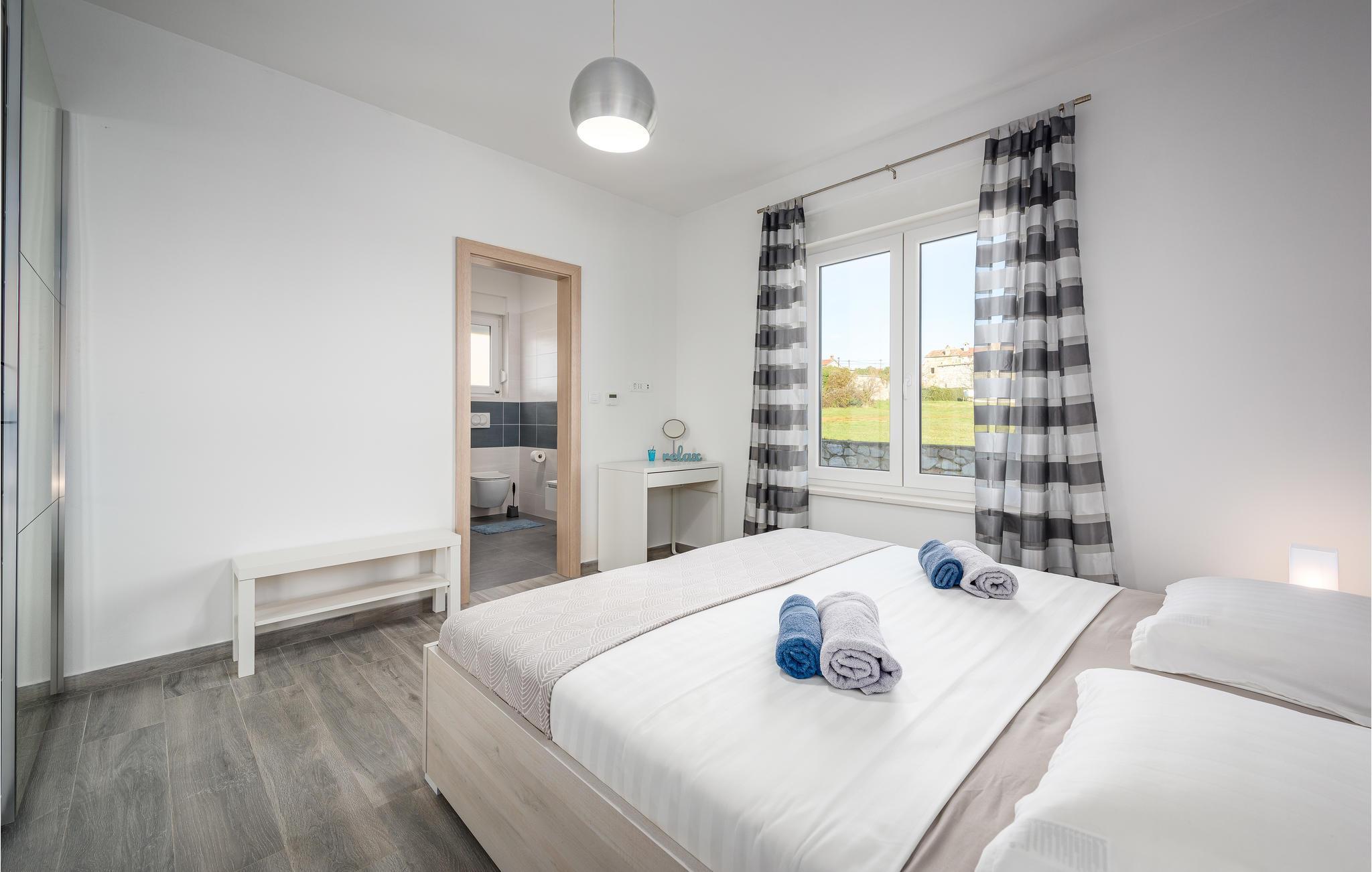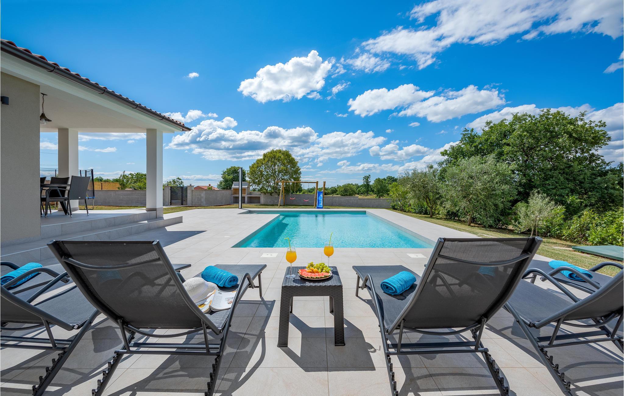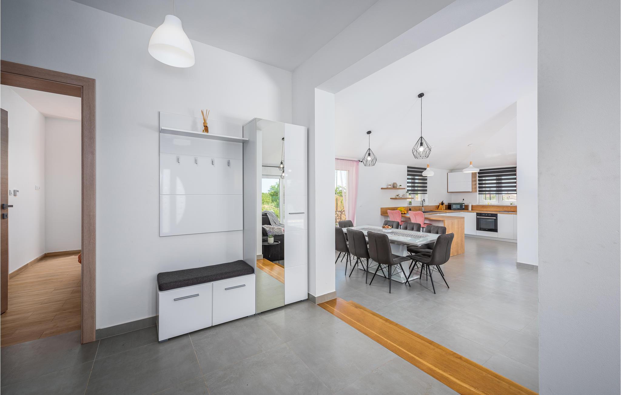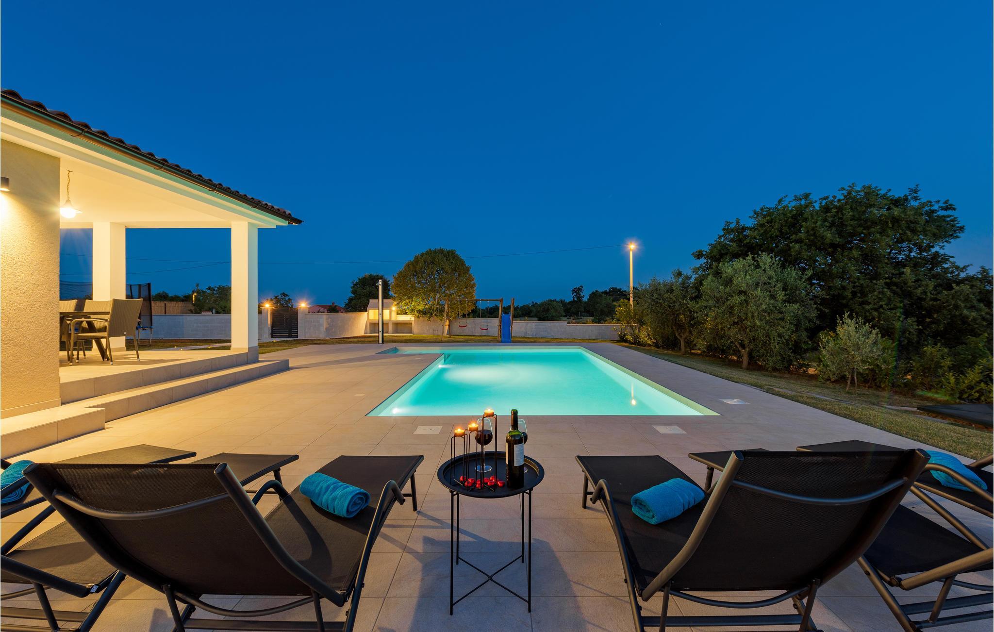 Verbringen Sie einen erholsamen Urlaub mit Familie und Freunden in diesem von viel Grün umgebenen Ferienhaus, das sich im kleinen Dorf Orihi, in der Nähe von Barban, befindet. Es ist schön eingerichtet und mit allem ausgestattet, was für einen angenehmen Aufenthalt benötigt wird. Der gepflegte Garten lädt zum Verweilen im Freien ein, egal ob Sie im Pool schwimmen oder köstliche Mahlzeiten am Grill zubereiten und anschließend gemeinsam auf der Terrasse sitzen. Aktivurlauber haben die Möglichkeit den Glavani Adrenalin Park und die Barba Tone Ranch in Manjadvorci zu besuchen. Die nächsten Strände finden Sie in den Orten Rakalj und Krnicki Porat.