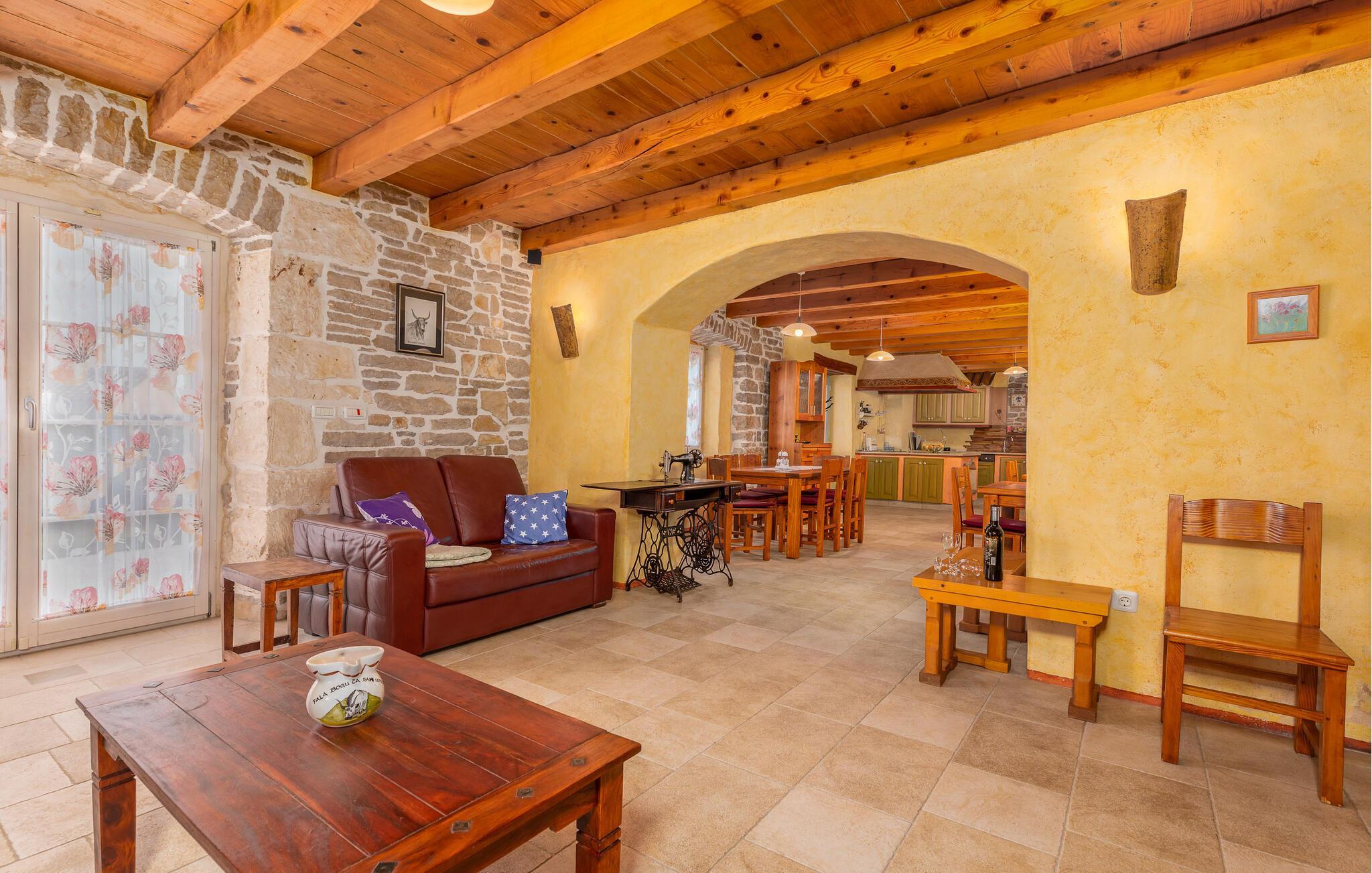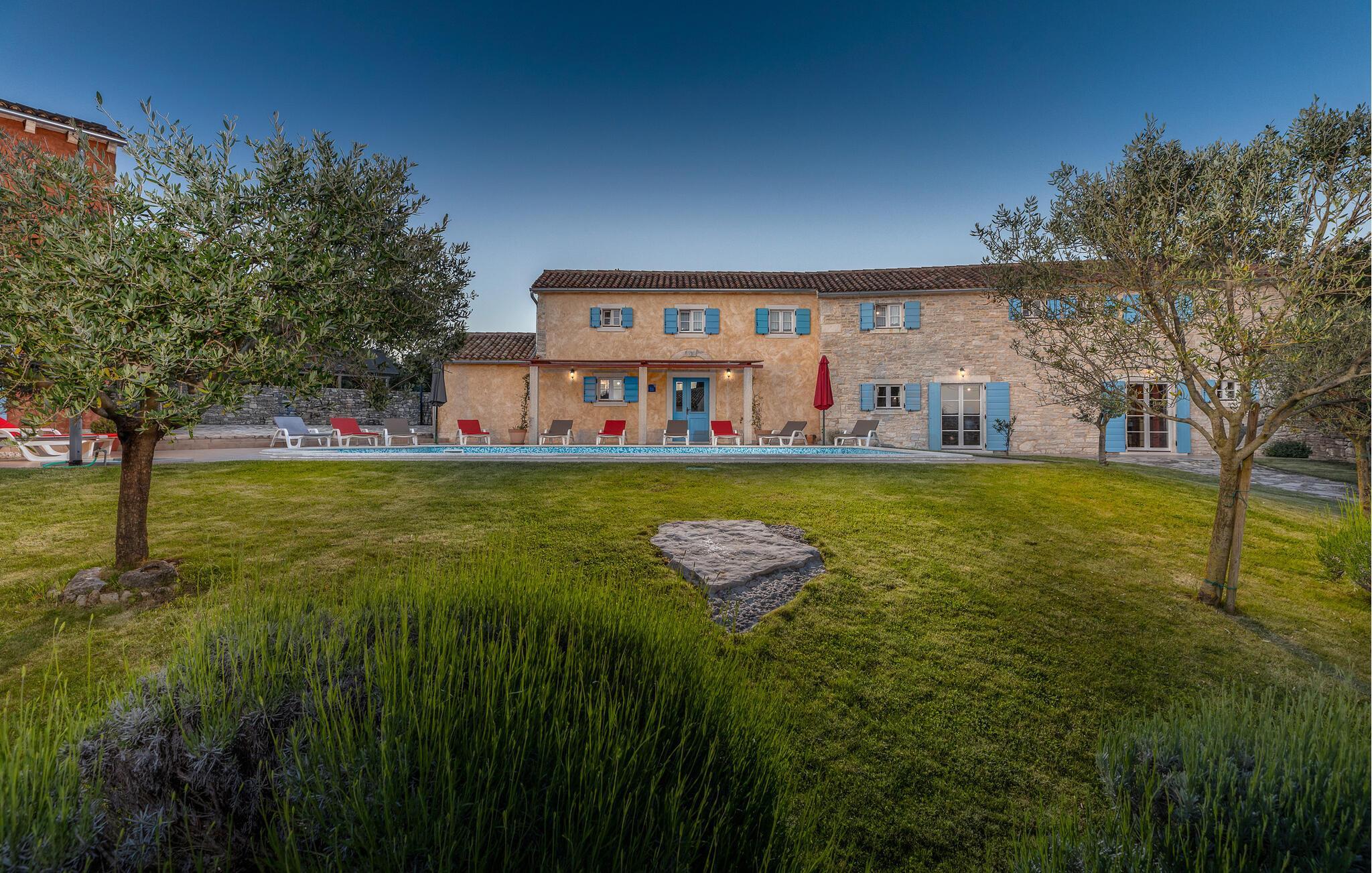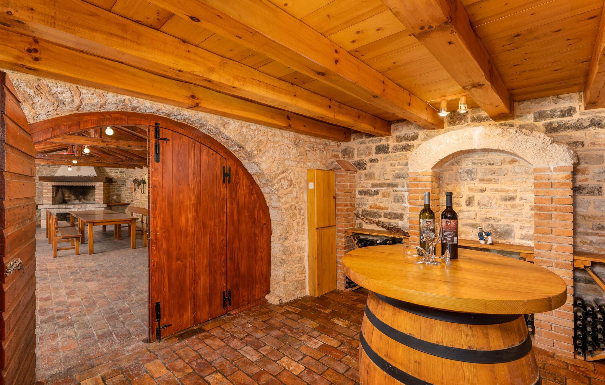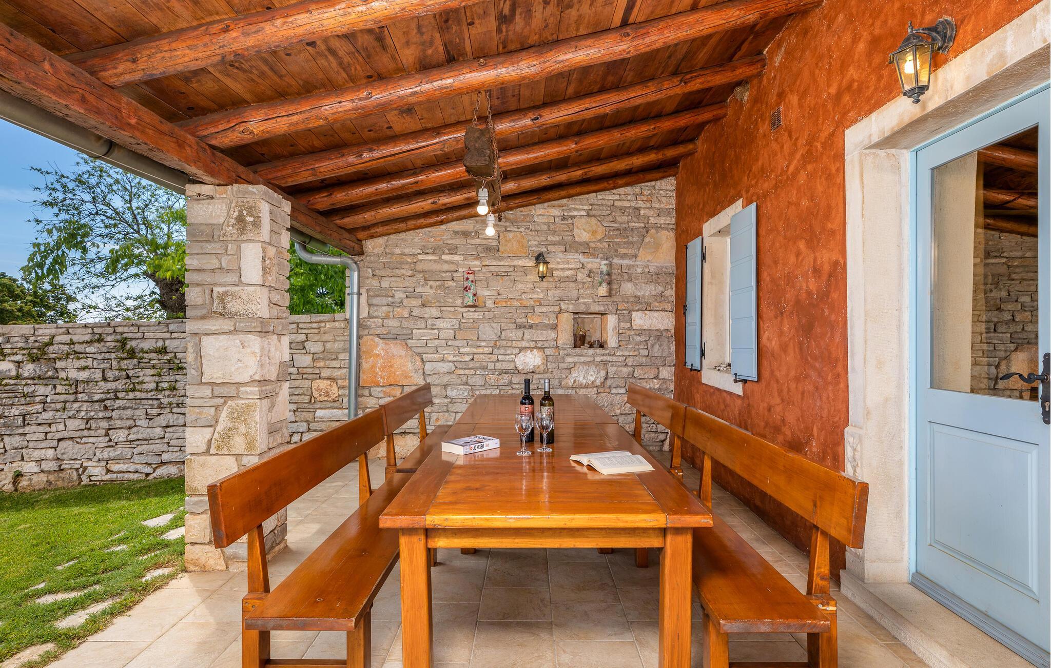 Dieses äußerst rustikale Ferienhaus mit großer Kapazität, welches auf drei Objekte aufgeteilt ist, befindet sich am Rand eines typisch istrischen Dorfes. Hundertjährige Wände, welche komplett restauriert worden, bieten Ihnen Privatsphäre und Geborgenheit. Innerhalb des ersten Hauses im Erdgeschoß befindet sich ein großer Wohnraum mit Küche und einem rustikalen Esssaal. Über die Stockwerke verteilen sich die gemütlichen Schlafzimmer. Im Erdgeschoss des zweiten Hauses können Sie sich zur Unterhaltung und für gemeinsame Stunden in einem Freizeitsaal mit einer kleinen Bar, Poolbillard, Pikado oder zum Tischfußball treffen. Eine Wellnessoase zum Relaxen mit Sauna, sowie ein Fitnessraum für die Aktiven unter Ihnen stehen ebenfalls zur Verfügung. Hier wird für jeden Geschmack etwas geboten. Auf den oberen Etagen des zweiten Hauses befinden sich drei weitere Schlafzimmer mit jeweils eigenem Badezimmer. Beide Häuser sind durch eine Außentreppe miteinander verbunden. Auf dem teilweise geschlossenen (4500 m2) Grundstück dominiert der große Außenpool. Hier können Sie an heißen Tagen ein willkommenes Bad genießen. Eine Spielecke für die Kleinen und eine große Sommerküche runden das idyllische Gesamtbild ab. Die waldreiche Umgebung lädt zu entspannten Spaziergängen ein. Dieses traumhafte Feriendomizil wird Ihnen sicher einen erholsamen und unvergessenen Urlaub bescheren. Besuchen Sie die mittelalterliche Stadt Barban! Barban hat vieles zu bieten: Paläste, Kirchen, Denkmäler aus dem Barock sowie der Gotik, die Fresken und die glagolitischen Aufzeichnungen, sowie eine Stadtmauer. Der Ort wird durch dieses reichhaltige kulturelle Erbe zu einer interessanten Region für Kulturliebhaber.