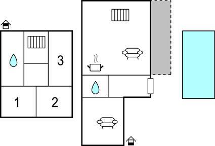 Badezimmer (nr. 1) - WC. Warmes und kaltes Wasser. Dusche