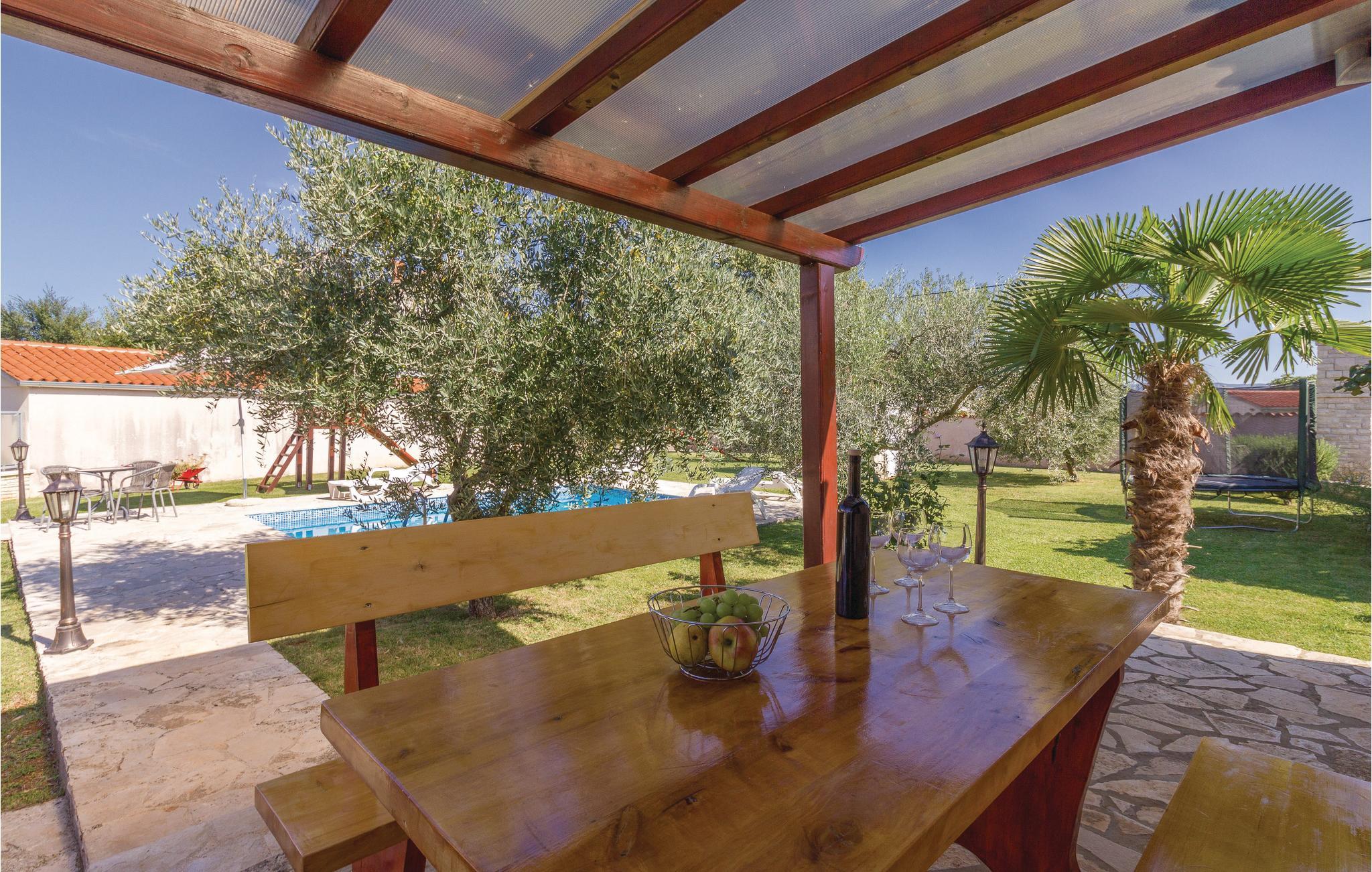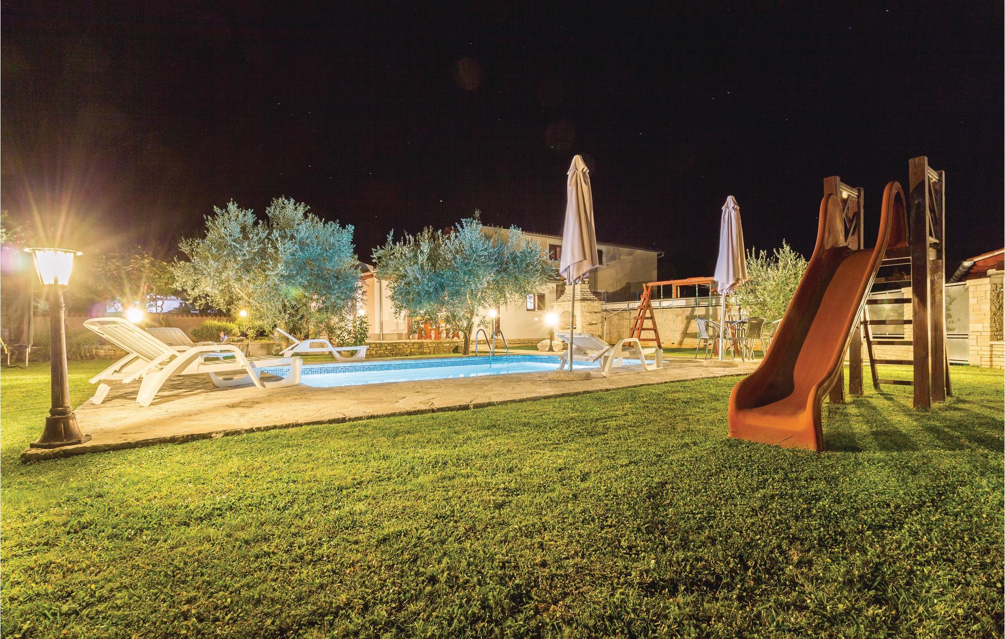 Dieses charmante Ferienhaus liegt in dem kleinen Dorf Rebici, in der Nähe von Barban. Die Doppelhaushälfte ist funktionell ausgestattet und verfügt über einen eigenen Garten, Spielgeräte, Swimmingpool und Grill – kurzum alles, um hier einen unvergesslichen Urlaub mit der ganzen Familie zu verbringen. Es gibt eine überdachte Terrasse, hier haben Sie Aussicht auf den schönen Garten und Pool. In unmittelbarer Nähe steht das Haus CIC189, ideal wenn Sie eine weitere Unterkunft suchen. In dieser Gegend können Aktivurlauber die einzigartige Natur genießen. In der nahe gelegenen Stadt Pula erwarten Sie schöne Strände und abwechslungsreiche Kulturangebote.