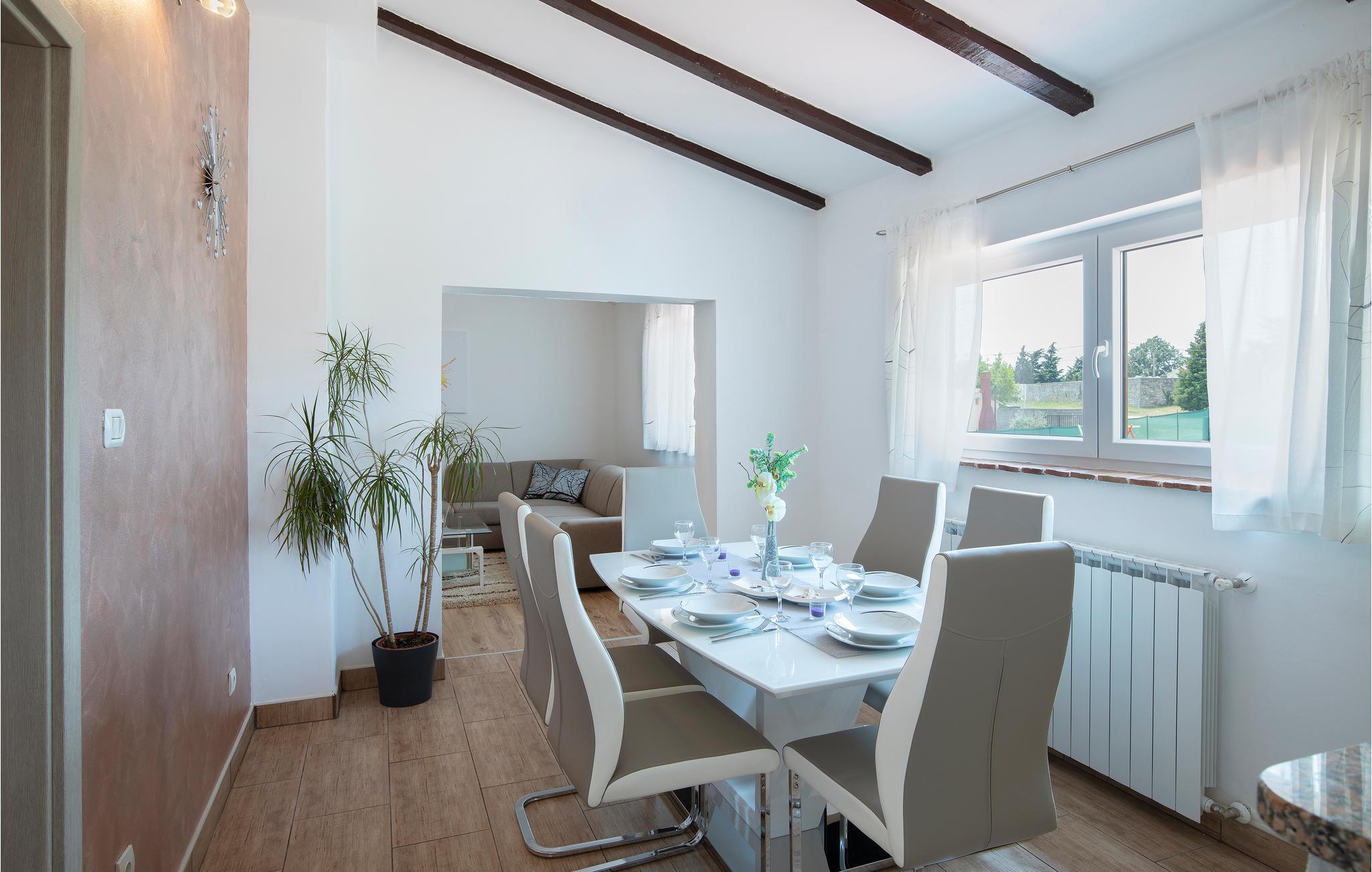 Auf einem gemeinschaftlich genutzten Grundstück in Skitaca, in der Nähe von Barban, wohnen Sie in einem praktischen Apartment mit klassischer Einrichtung. Das geschmackvoll und modern eingerichtete Interieur sichert Ihnen einen schönen Start in Ihre Urlaubszeit. Das schöne Naturgrundstück ist besonders für ein unbeschwertes Herumtoben der Kinder geeignet.