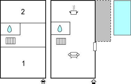 Schlafzimmer (nr. 2) - 1 Schlafmöglichkeit. (Einzelbett(en)). 2 Schlafmöglichkeiten. (Doppelbett(en)).