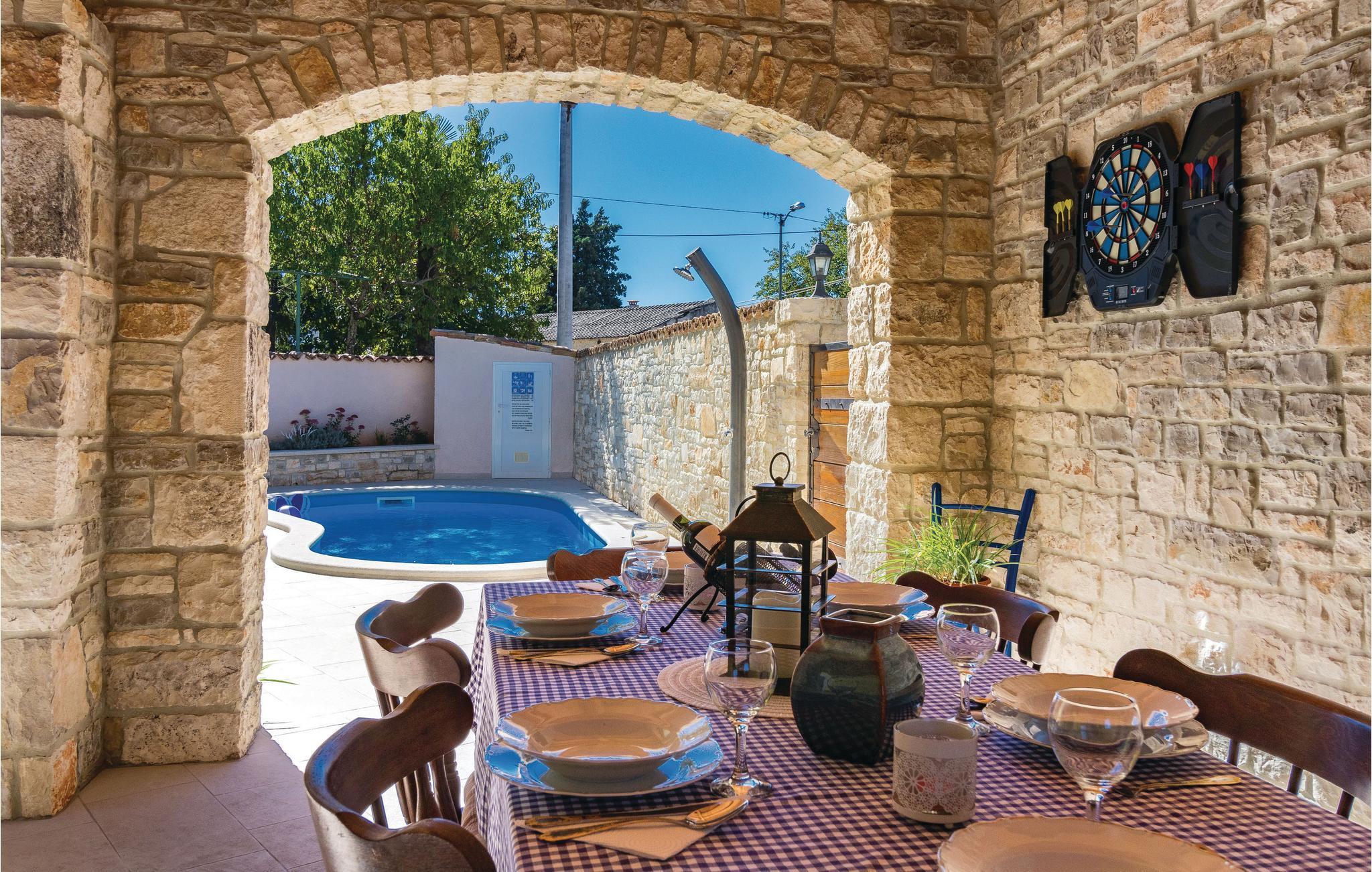 Dieses Ferienhaus mit Pool liegt am Rande des Dorfes Špadici, neben Barban. Es ist teilweise im Landhausstil eingerichtet. Das Haus erstreckt sich über zwei Etagen, wobei sich im Erdgeschoß das Wohnzimmer mit dem traditionellen offenen Kamin, ein Schlafzimmer und Bad befinden. Auf der oberen Etage sind zwei Schlafzimmer mit Bädern en Suite. Entspannen Sie auf dem umzäunten Grundstück mit dem herrlichen Swimmingpool, den Sonnenliegen und überdachten Sommerküche mit Grill. Den Spielbereich hat der Hauseigentümer auf dem anderen umzäunten Grundstück vorgesehen, der auf der anderen Seite des Feldweges liegt.
