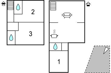 Badezimmer (nr. 3) - WC. Warmes und kaltes Wasser. Dusche