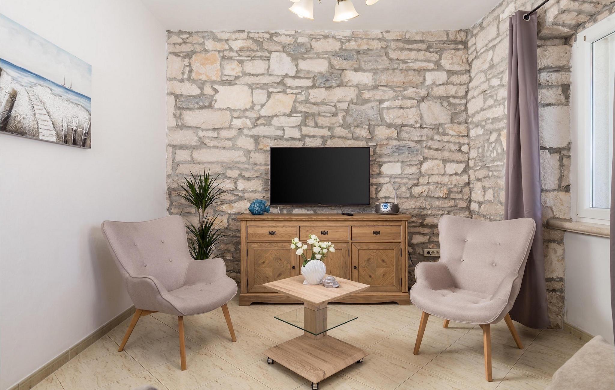 Im Untergeschoss befindet sich die "Konoba", ein Unterhaltungsraum mit Kamin und großem Esstisch, ideal für gemeinsames Abendessen.Trget ist ein kleines Fischerdorf in der Nähe von Labin und Rabac. Es ist nicht überfüllt wie größere touristische Hot Spots an der Küste, aber hat alles was Sie benötigen können- ein Restaurant, eine Bar und ein Supermarkt sind nahe genug. In der Umgebung gibt es eine Vielfalt von Stränden. Die nächsten sind Kies- und Steinstrände und nur eine kurze Autofahrt entfernt liegt der berühmte Strand in Rabac. Die atemberaubende Landschaft ist perfekt für einen aktiven Urlaub - Segeln, Fahrradtouren oder Wandern. Pula, die größte Stadt in Istrien, ist 35 km entfernt und ist auch eine gute Wahl für einen Tagesausflug.