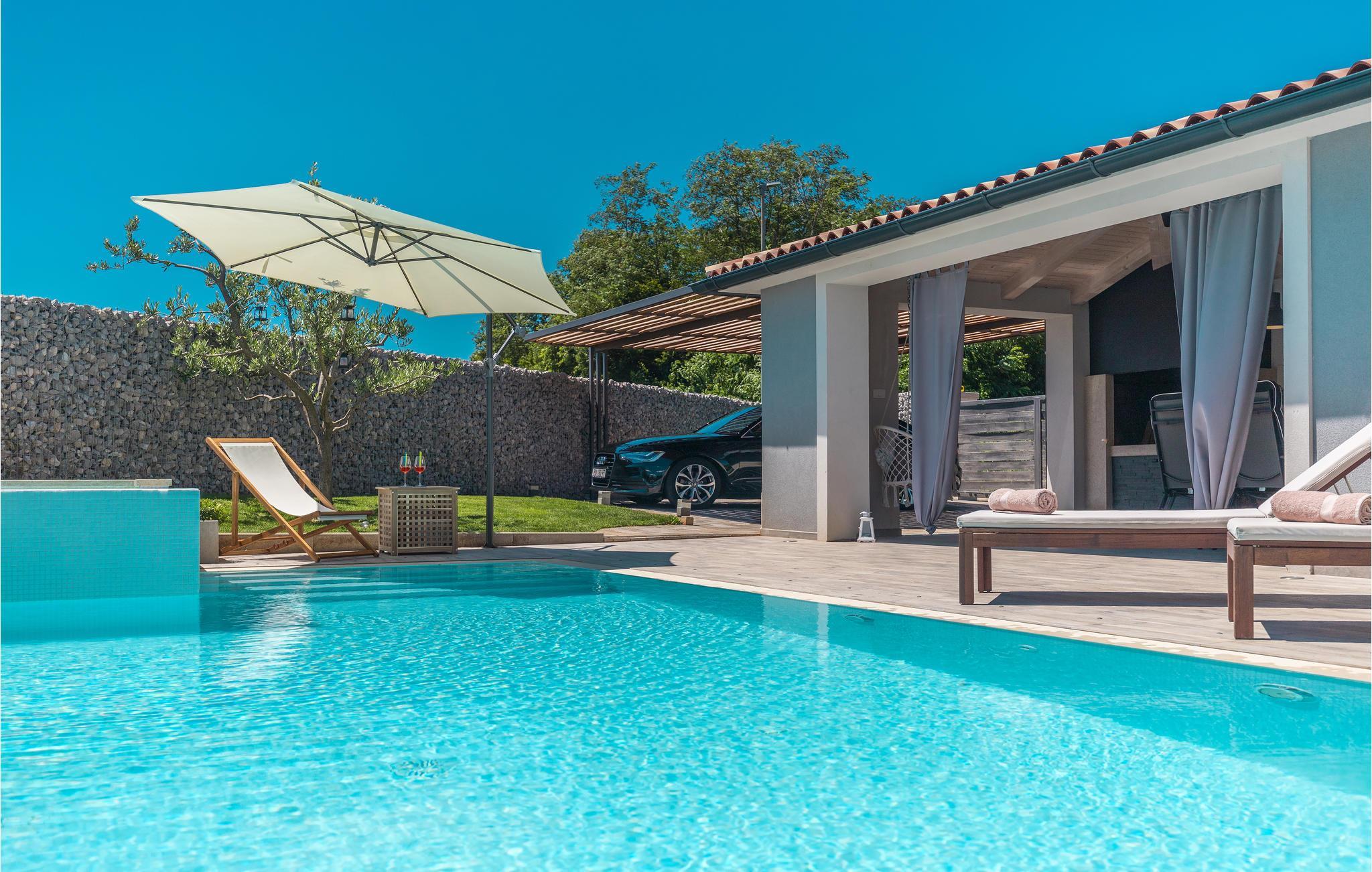 Residieren Sie in diesem einladenden Ferienhaus mit Pool, welches sich am Rande des kleinen Dorfes Frkeci im Landesinneren von Istrien befindet.