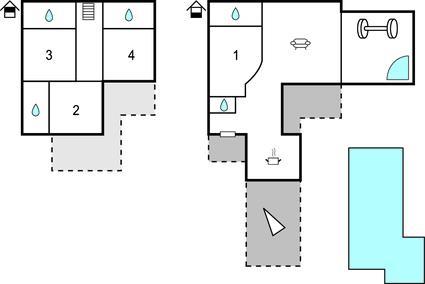 Badezimmer (nr. 4) - WC. Warmes und kaltes Wasser. Dusche