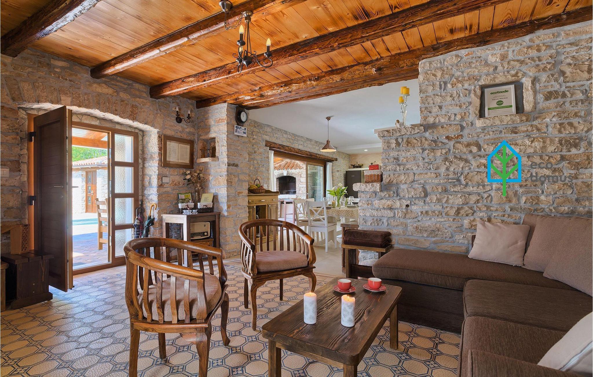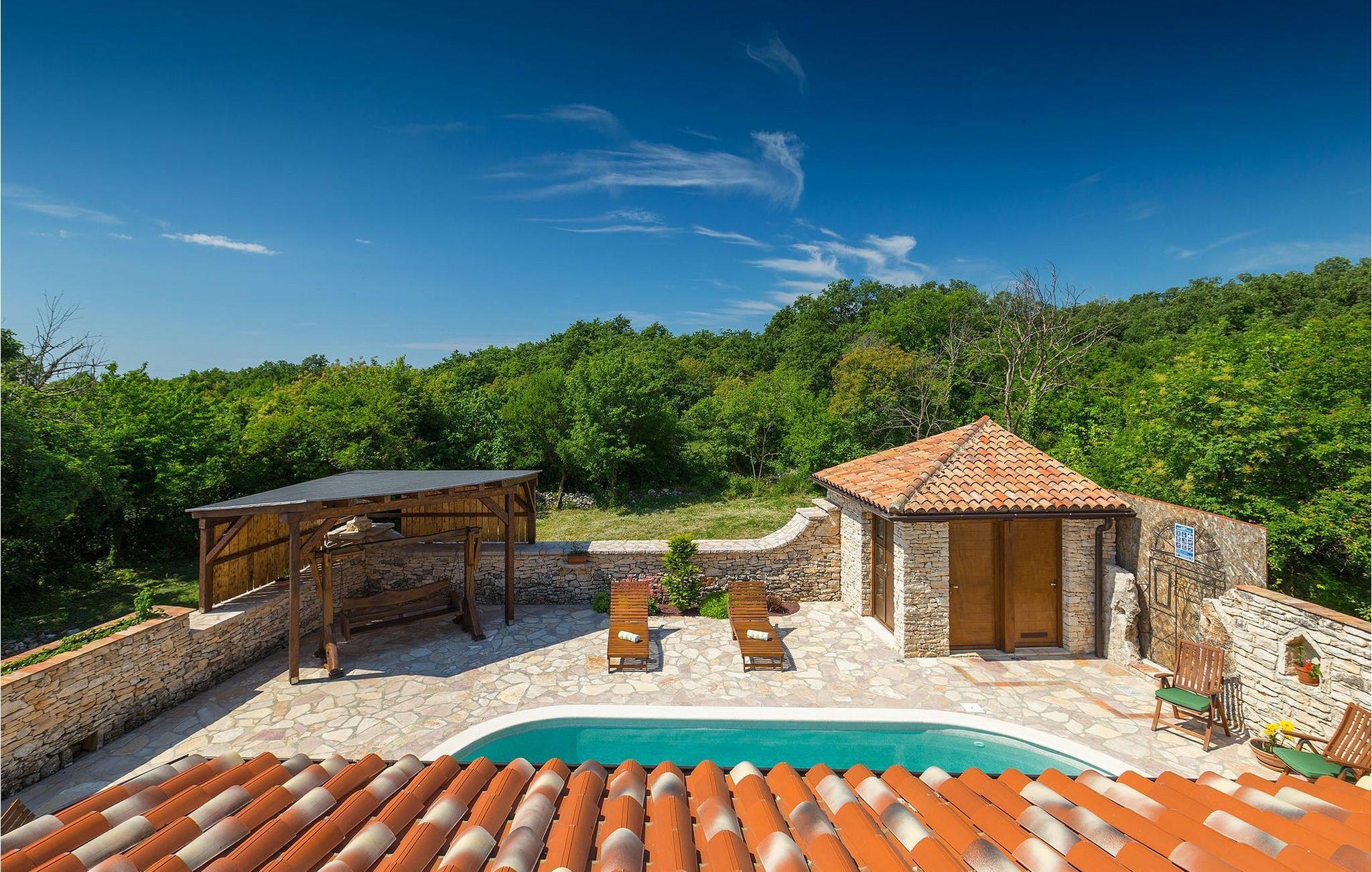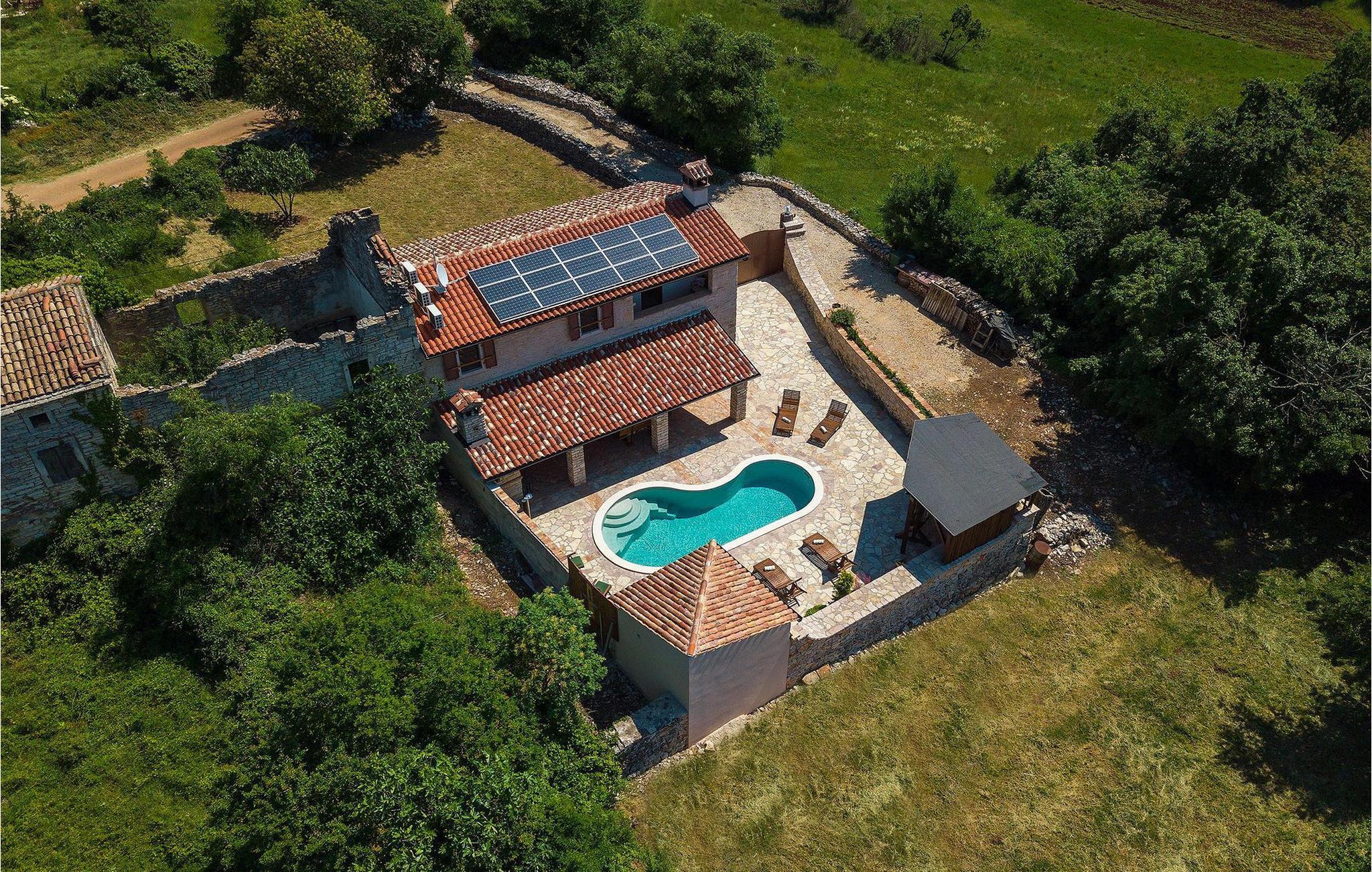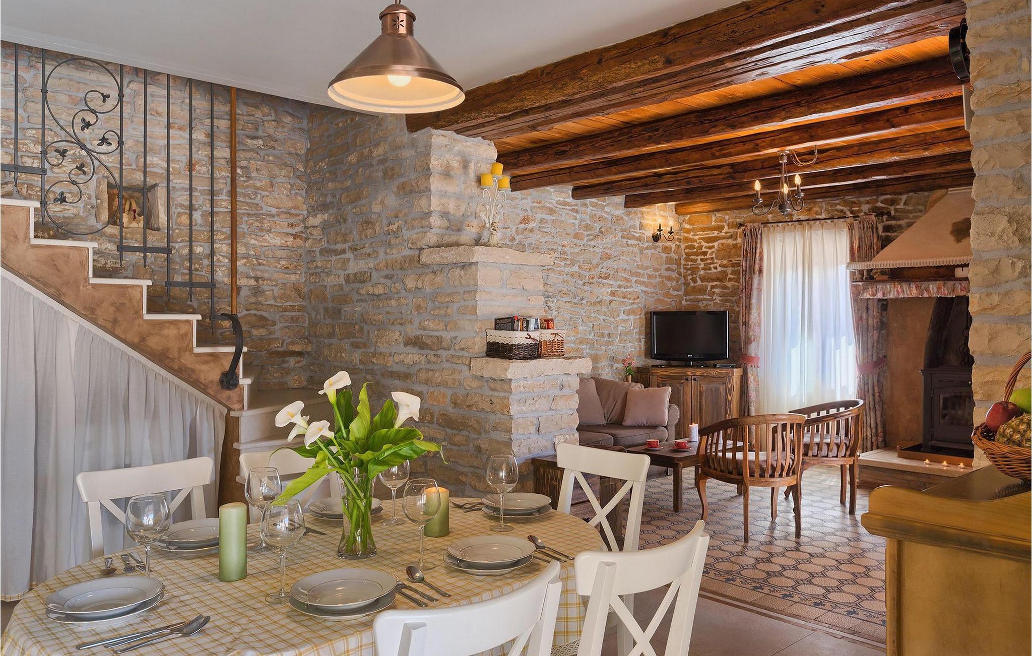 Dieses charmante Steinhaus hat 3 Schlafzimmer und bietet Platz für bis zu 6 Personen. Es wurde mit viel Charakter schön renoviert. Es blieben noch viele Original-Elemente, wie z.B. die alten Fliesen im Wohnzimmer. Alle Schlafzimmer sind bequem und klimatisiert. WLAN-Internetzugang ist auch vorhanden. Für kurze Mahlzeiten steht Ihnen eine überdachte Terrasse mit Grill zur Verfügung. Die Steinwände, die das Anwesen eingrenzen, bieten komplette Privatsphäre im Poolbereich. Die Villa befindet sich am Rand des Dorfes, in einer entspannenden, natürlichen Umgebung, die ideal für Familienaktivitäten, romantische Kurzurlaube und Erholung ist. Die Villa Milica ist eine der ersten Ferienhäuser in Istrien, die mit dem Eco Domus Zertifikat belohnt wurde. Das Zertifikat garantiert den Gästen, dass Sie sich in einer umweltfreundlichen Villa befinden. Um das Zertifikat zu bekommen, musste die Villa mehrere Bedingungen erfüllen (umweltfreundliche Waschmittel, Recycling etc.). Die Idee des Projektes ist, aus Istrien eine “grüne Region” zu machen und den Einfluß von Ferienhäusern auf die Umwelt zu begrenzen. Ein Trockendampfreiniger in der Villa sorgt für eine saubere und sichere Umgebung.