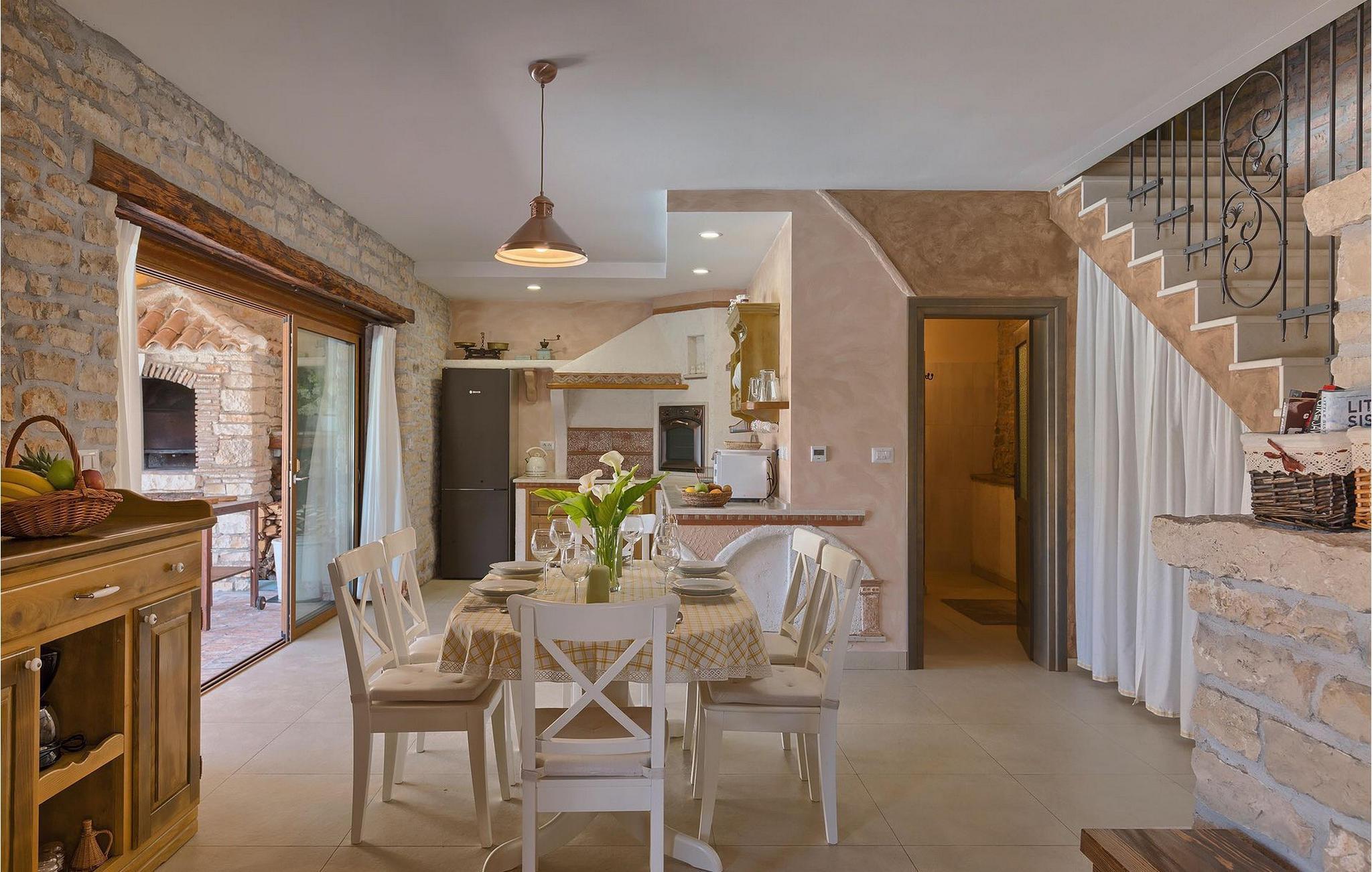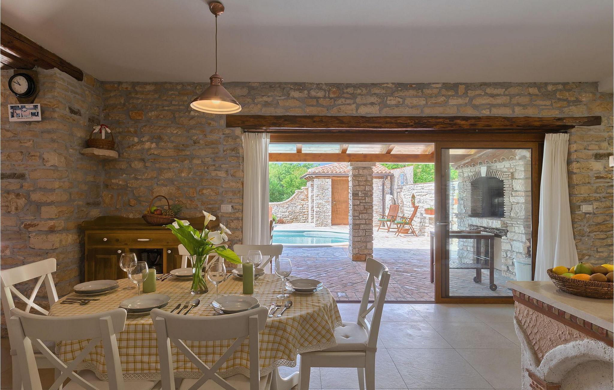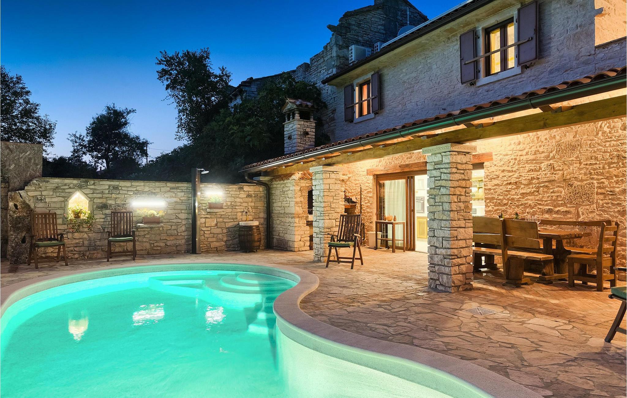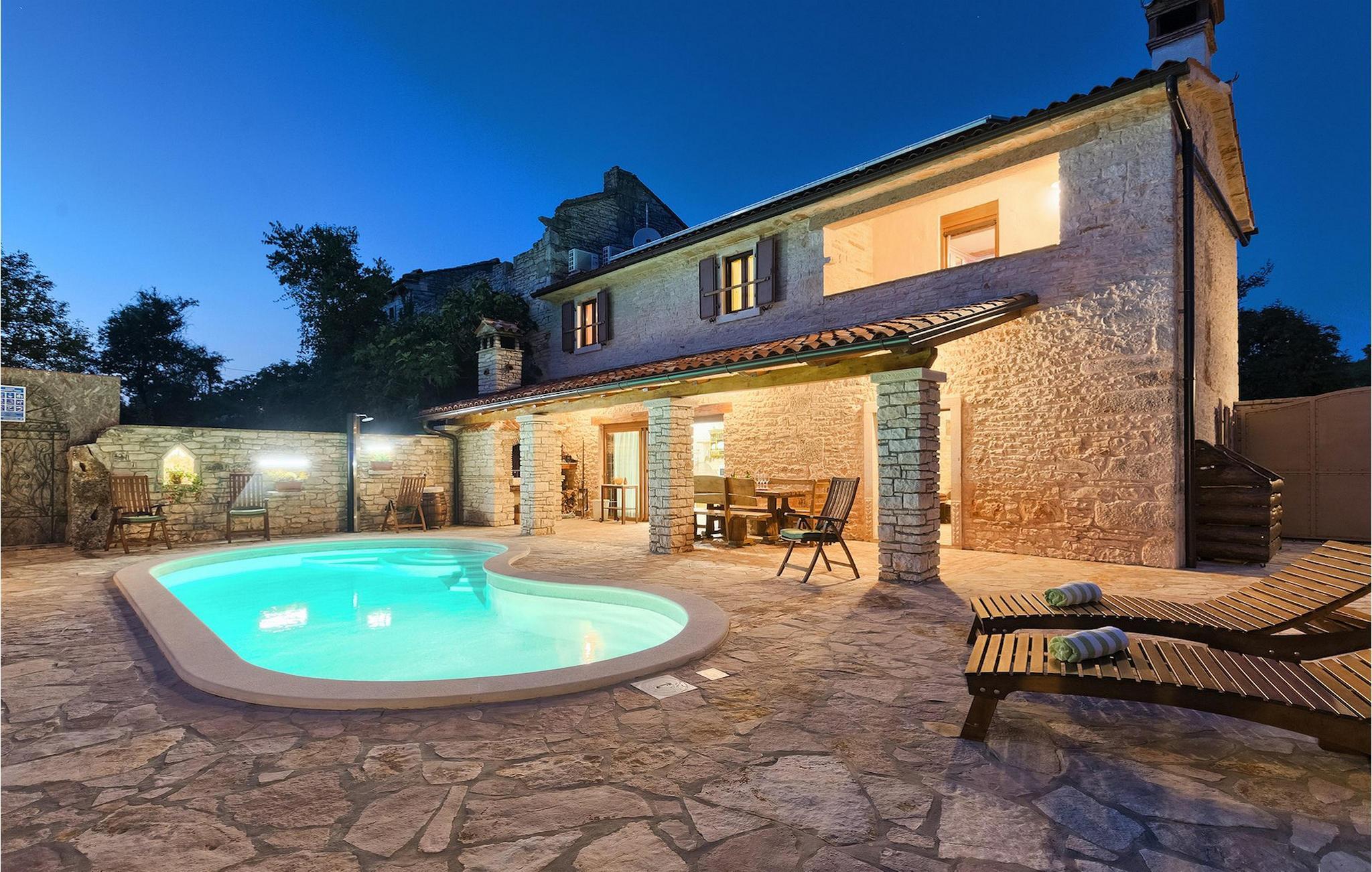 Dieses charmante Steinhaus hat 3 Schlafzimmer und bietet Platz für bis zu 6 Personen. Es wurde mit viel Charakter schön renoviert. Es blieben noch viele Original-Elemente, wie z.B. die alten Fliesen im Wohnzimmer. Alle Schlafzimmer sind bequem und klimatisiert. WLAN-Internetzugang ist auch vorhanden. Für kurze Mahlzeiten steht Ihnen eine überdachte Terrasse mit Grill zur Verfügung. Die Steinwände, die das Anwesen eingrenzen, bieten komplette Privatsphäre im Poolbereich. Die Villa befindet sich am Rand des Dorfes, in einer entspannenden, natürlichen Umgebung, die ideal für Familienaktivitäten, romantische Kurzurlaube und Erholung ist. Die Villa Milica ist eine der ersten Ferienhäuser in Istrien, die mit dem Eco Domus Zertifikat belohnt wurde. Das Zertifikat garantiert den Gästen, dass Sie sich in einer umweltfreundlichen Villa befinden. Um das Zertifikat zu bekommen, musste die Villa mehrere Bedingungen erfüllen (umweltfreundliche Waschmittel, Recycling etc.). Die Idee des Projektes ist, aus Istrien eine “grüne Region” zu machen und den Einfluß von Ferienhäusern auf die Umwelt zu begrenzen. Ein Trockendampfreiniger in der Villa sorgt für eine saubere und sichere Umgebung.