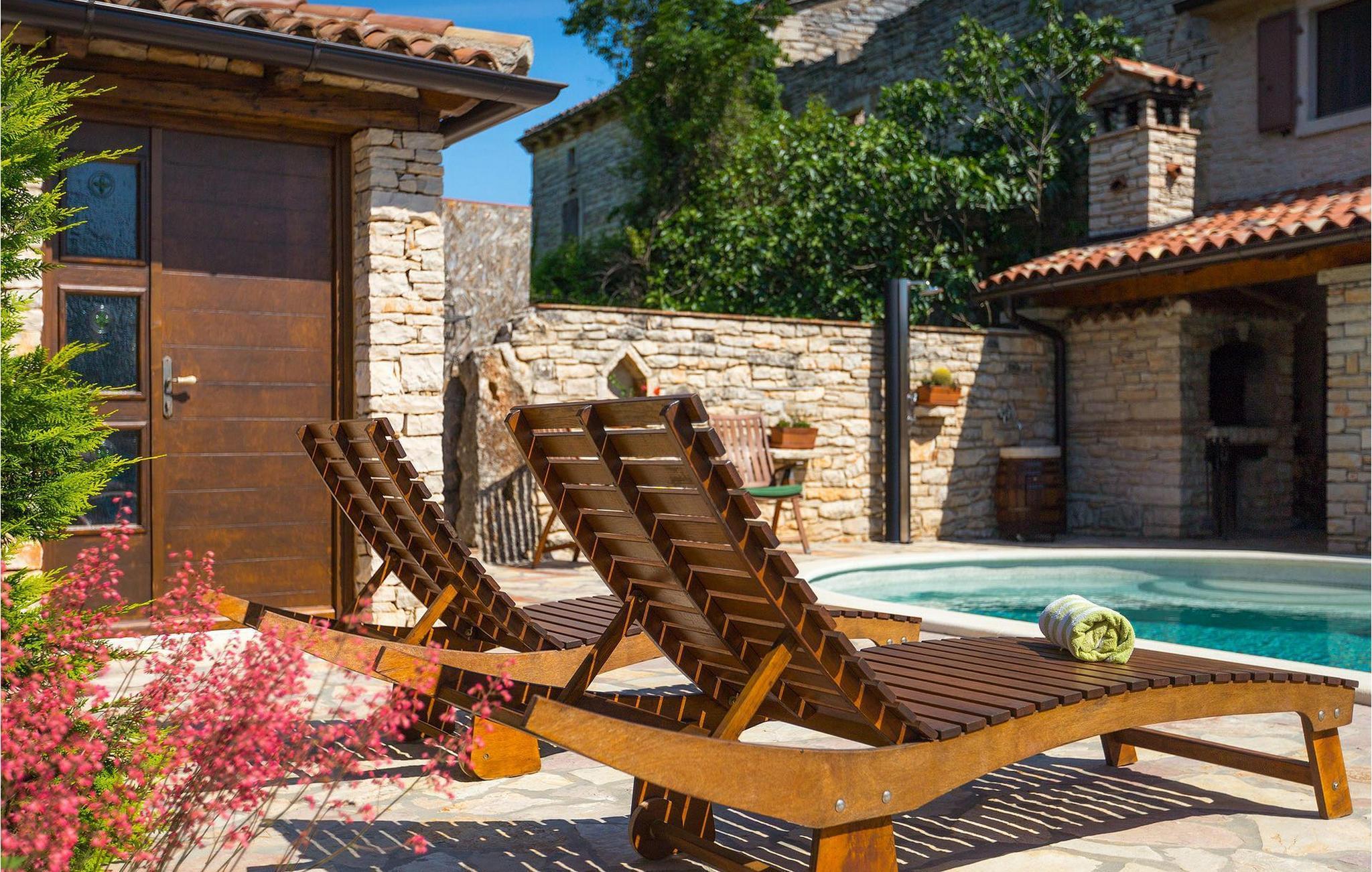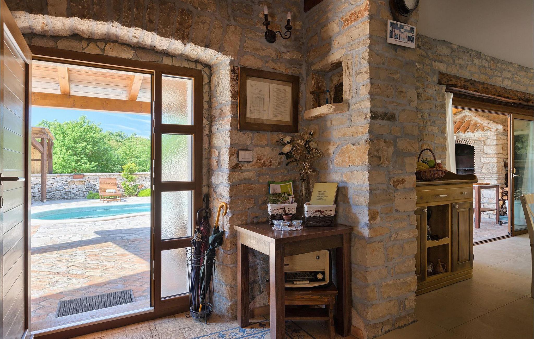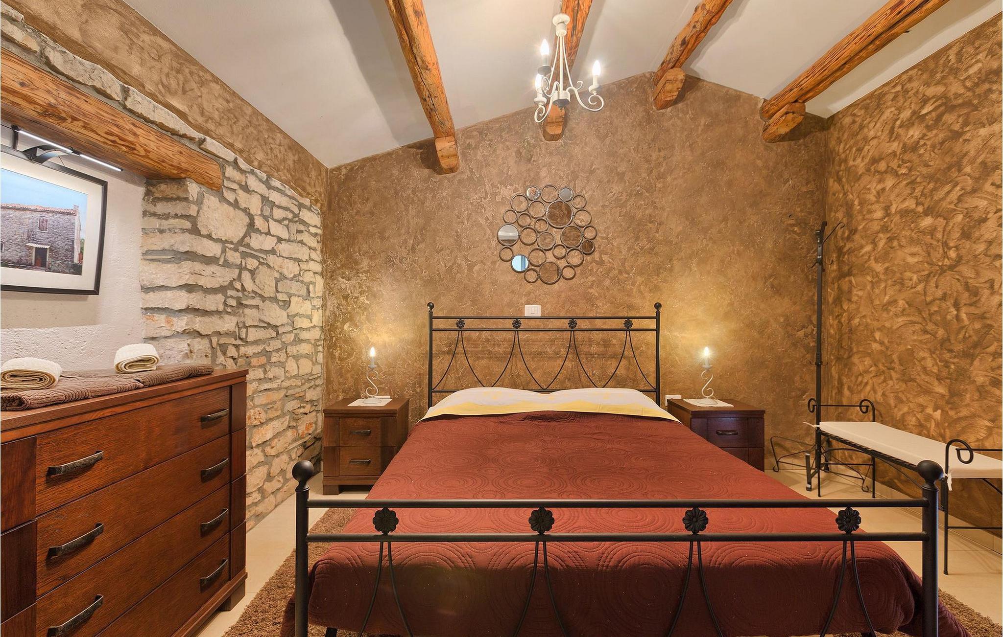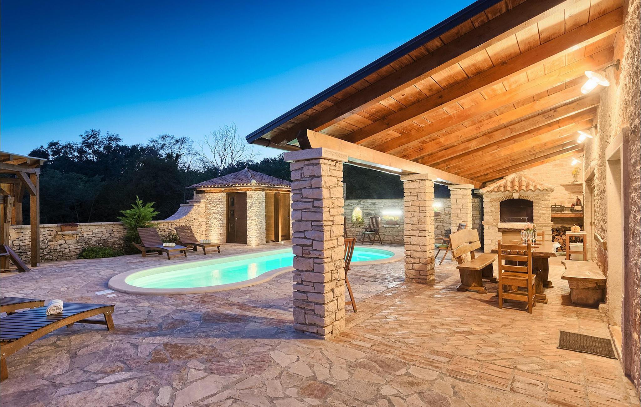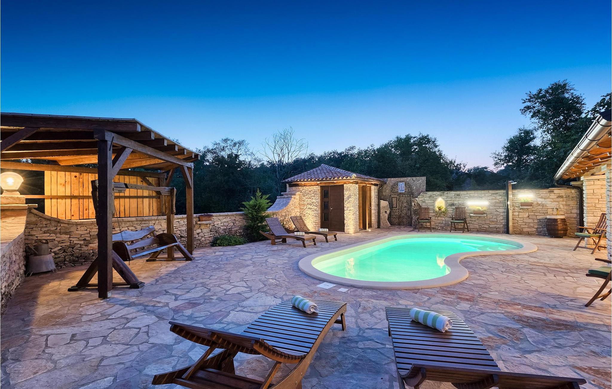 Dieses charmante Steinhaus hat 3 Schlafzimmer und bietet Platz für bis zu 6 Personen. Es wurde mit viel Charakter schön renoviert. Es blieben noch viele Original-Elemente, wie z.B. die alten Fliesen im Wohnzimmer. Alle Schlafzimmer sind bequem und klimatisiert. WLAN-Internetzugang ist auch vorhanden. Für kurze Mahlzeiten steht Ihnen eine überdachte Terrasse mit Grill zur Verfügung. Die Steinwände, die das Anwesen eingrenzen, bieten komplette Privatsphäre im Poolbereich. Die Villa befindet sich am Rand des Dorfes, in einer entspannenden, natürlichen Umgebung, die ideal für Familienaktivitäten, romantische Kurzurlaube und Erholung ist. Die Villa Milica ist eine der ersten Ferienhäuser in Istrien, die mit dem Eco Domus Zertifikat belohnt wurde. Das Zertifikat garantiert den Gästen, dass Sie sich in einer umweltfreundlichen Villa befinden. Um das Zertifikat zu bekommen, musste die Villa mehrere Bedingungen erfüllen (umweltfreundliche Waschmittel, Recycling etc.). Die Idee des Projektes ist, aus Istrien eine “grüne Region” zu machen und den Einfluß von Ferienhäusern auf die Umwelt zu begrenzen. Ein Trockendampfreiniger in der Villa sorgt für eine saubere und sichere Umgebung.
