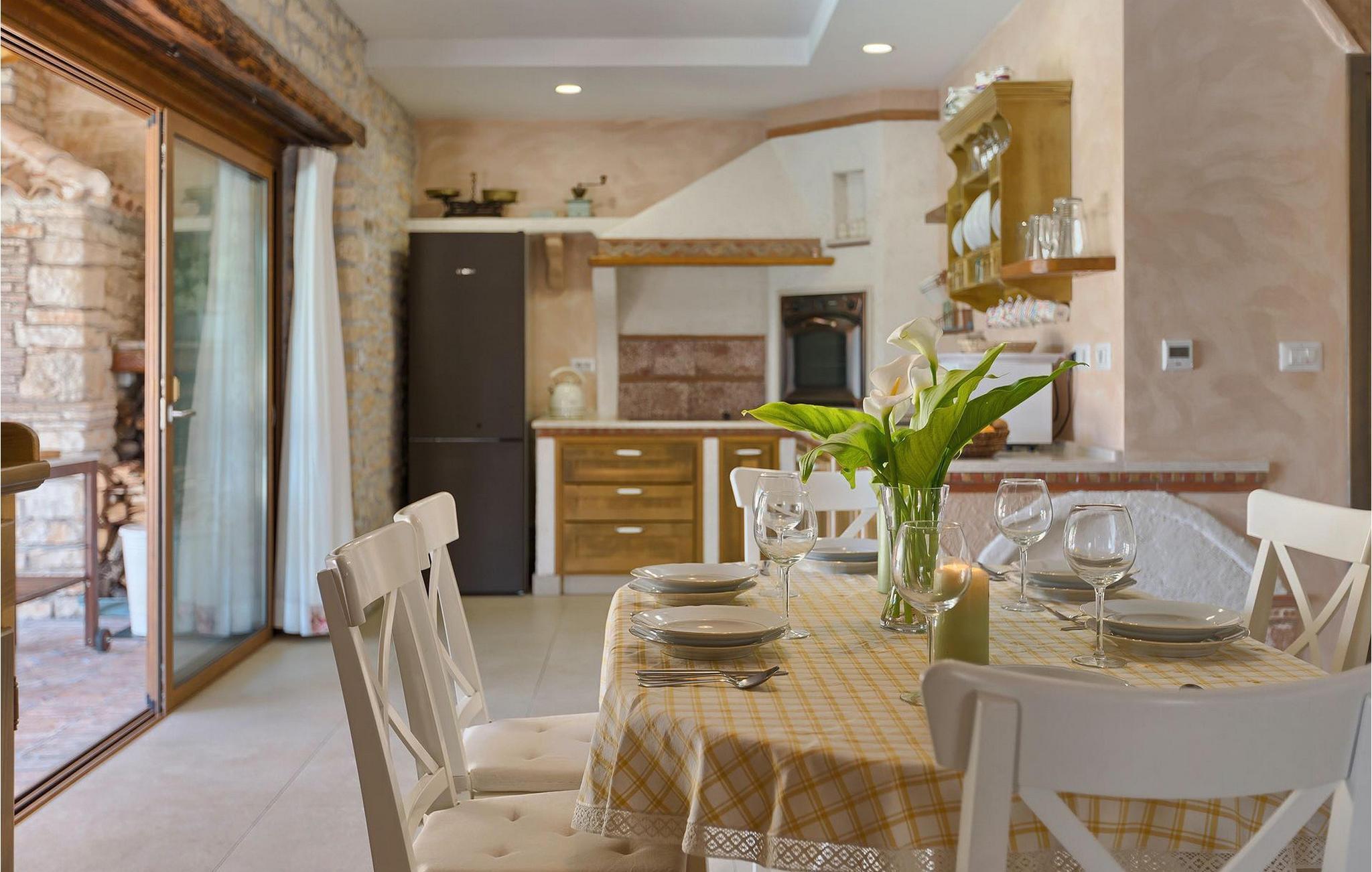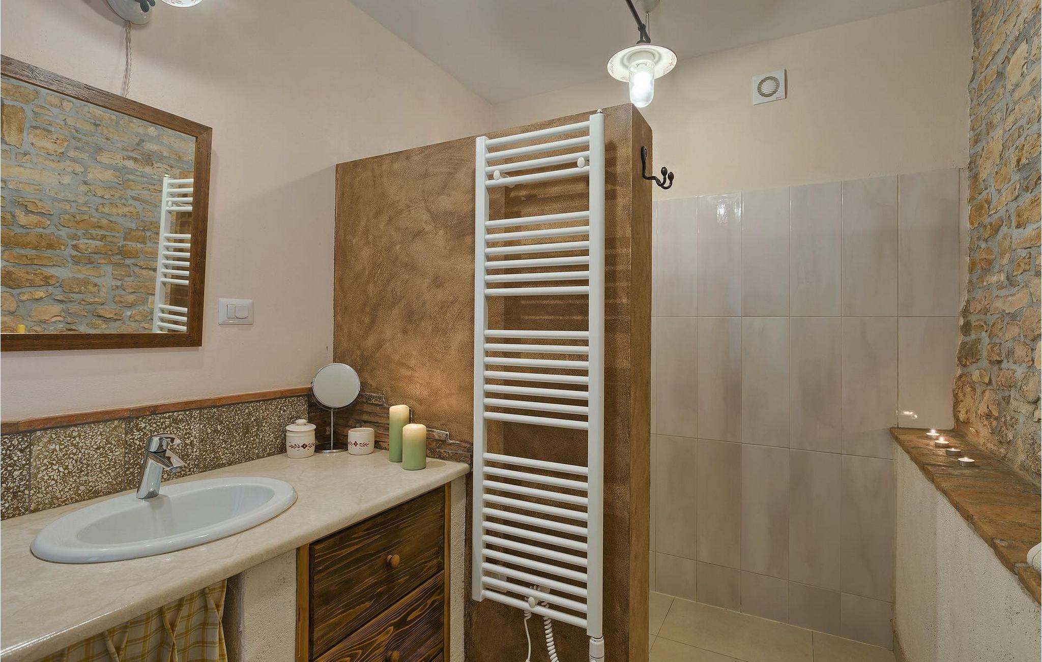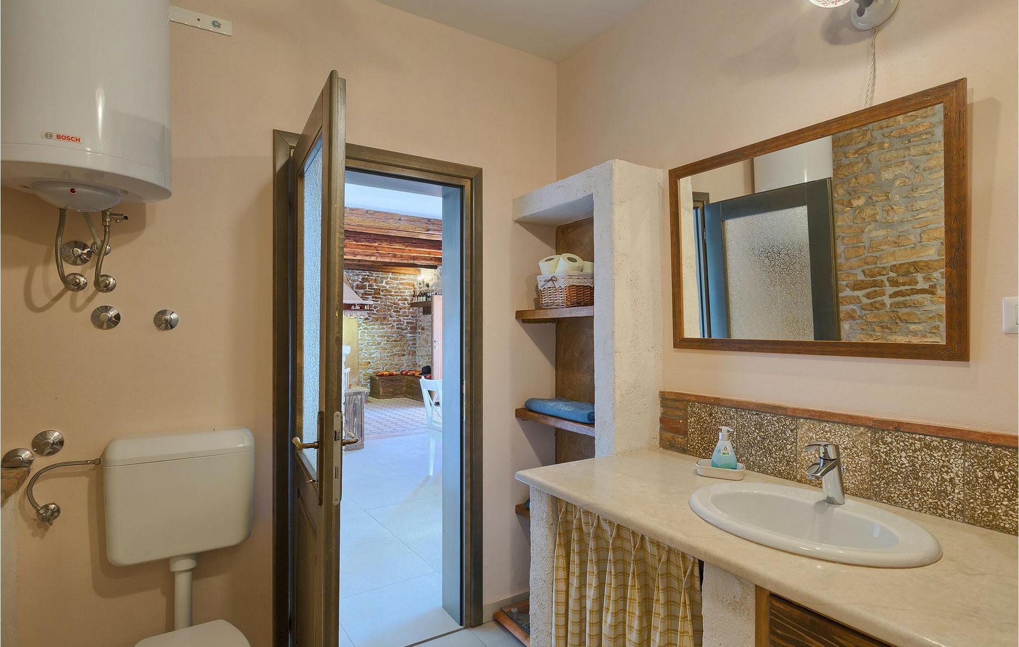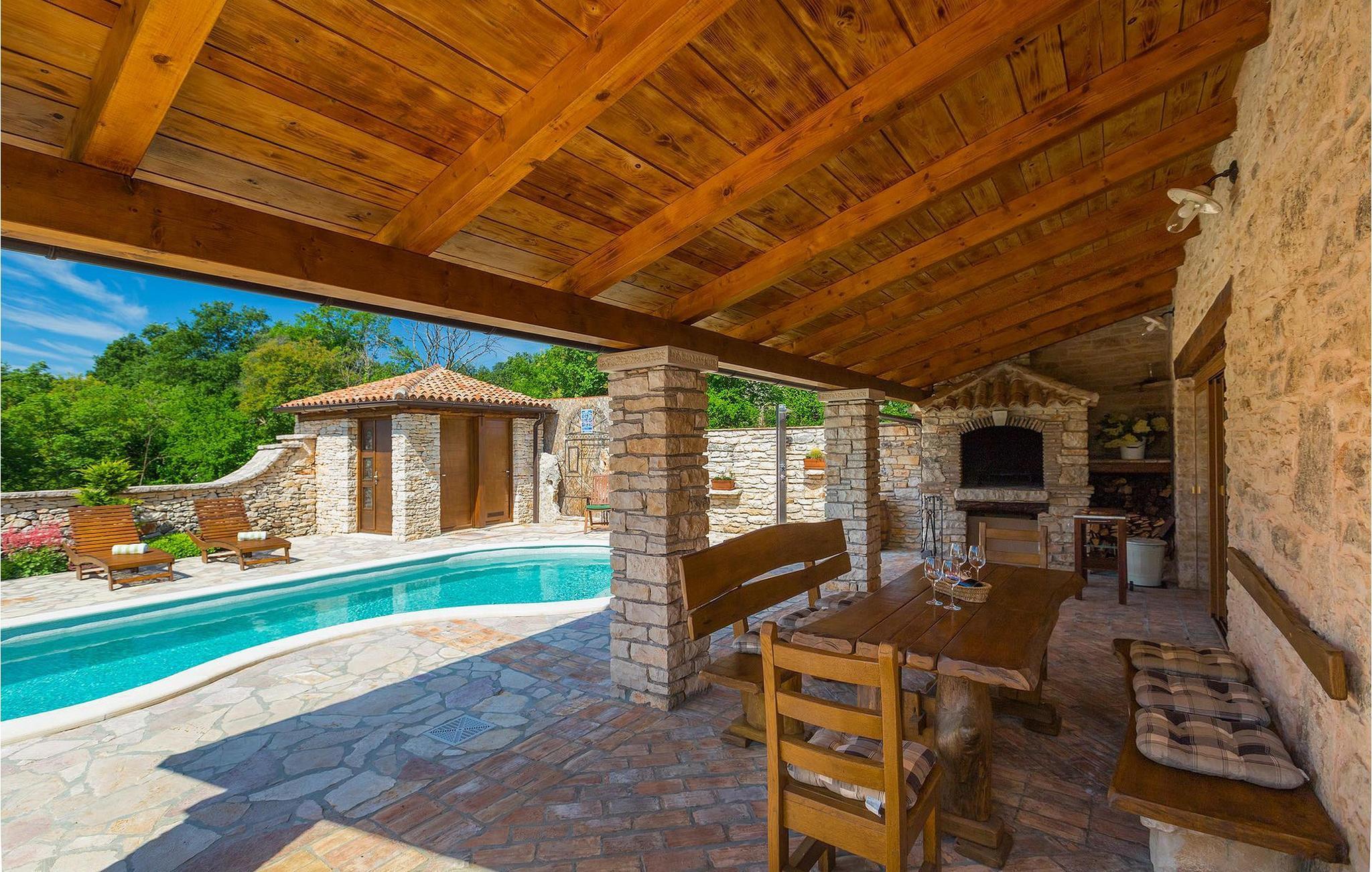 Dieses charmante Steinhaus hat 3 Schlafzimmer und bietet Platz für bis zu 6 Personen. Es wurde mit viel Charakter schön renoviert. Es blieben noch viele Original-Elemente, wie z.B. die alten Fliesen im Wohnzimmer. Alle Schlafzimmer sind bequem und klimatisiert. WLAN-Internetzugang ist auch vorhanden. Für kurze Mahlzeiten steht Ihnen eine überdachte Terrasse mit Grill zur Verfügung. Die Steinwände, die das Anwesen eingrenzen, bieten komplette Privatsphäre im Poolbereich. Die Villa befindet sich am Rand des Dorfes, in einer entspannenden, natürlichen Umgebung, die ideal für Familienaktivitäten, romantische Kurzurlaube und Erholung ist. Die Villa Milica ist eine der ersten Ferienhäuser in Istrien, die mit dem Eco Domus Zertifikat belohnt wurde. Das Zertifikat garantiert den Gästen, dass Sie sich in einer umweltfreundlichen Villa befinden. Um das Zertifikat zu bekommen, musste die Villa mehrere Bedingungen erfüllen (umweltfreundliche Waschmittel, Recycling etc.). Die Idee des Projektes ist, aus Istrien eine “grüne Region” zu machen und den Einfluß von Ferienhäusern auf die Umwelt zu begrenzen. Ein Trockendampfreiniger in der Villa sorgt für eine saubere und sichere Umgebung.