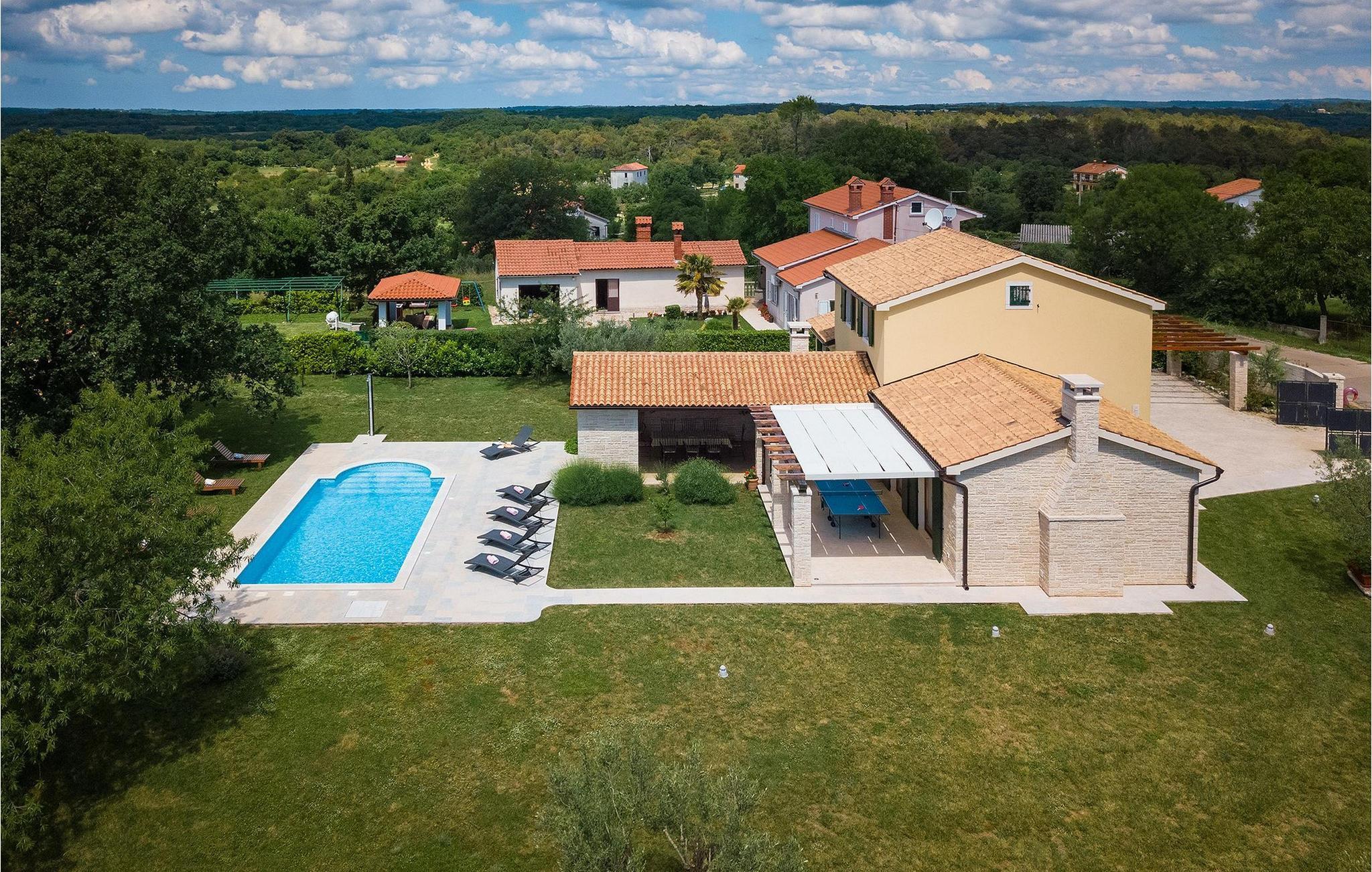 Für die Sicherheit der Kinder ist der Garten mit einer Hecke und einem natürlichen Zaun aus Steinen umgeben. Der Garten bietet auch einen Grillbereich mit Esstisch und Steinofen, welcher sich hervorragend dazu eignet Brot zu backen oder traditionelle Gerichte zuzubereiten. Auch gibt es einen Kinderspielplatz, Tischtennis und einen Parkplatz für 3 Autos. Villa Anita ist komplett klimatisiert und mit digitalem Satellitenfernsehen sowie kabellosem Internet ausgestattet. Für die Abenteuerlustigeren ist der Adrenalinpark Barban sowie der Quad-Abenteuerklub nur wenige km von der Villa Anita entfernt.Dieses schöne Ferienhaus liegt in dem kleinen Dorf Hrboki, auf der Ostseite der Halbinsel Istrien. Die Lage der Villa bietet eine perfekte Balance von Ruhe und Privatvergnügen, weg von Hektik und Touristenmassen mit kurzen Wegen zu allen wichtigen Städten. Pula, die größte Stadt Istriens, nur 20 Kilometer von der Villa entfernt, ist weltberühmt für sein atemberaubenden Kolosseum, ein antikes Amphitheater, das während des 1. Jahrhunderts gebaut wurde. Neben kulturellen und historischen Schönheiten bietet Istrien einzigartige Gastro Erfahrung, der in diesem Teil Europas bekannt ist.