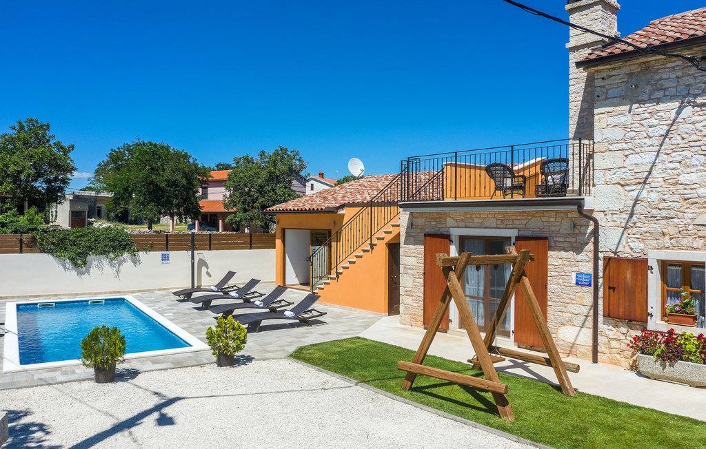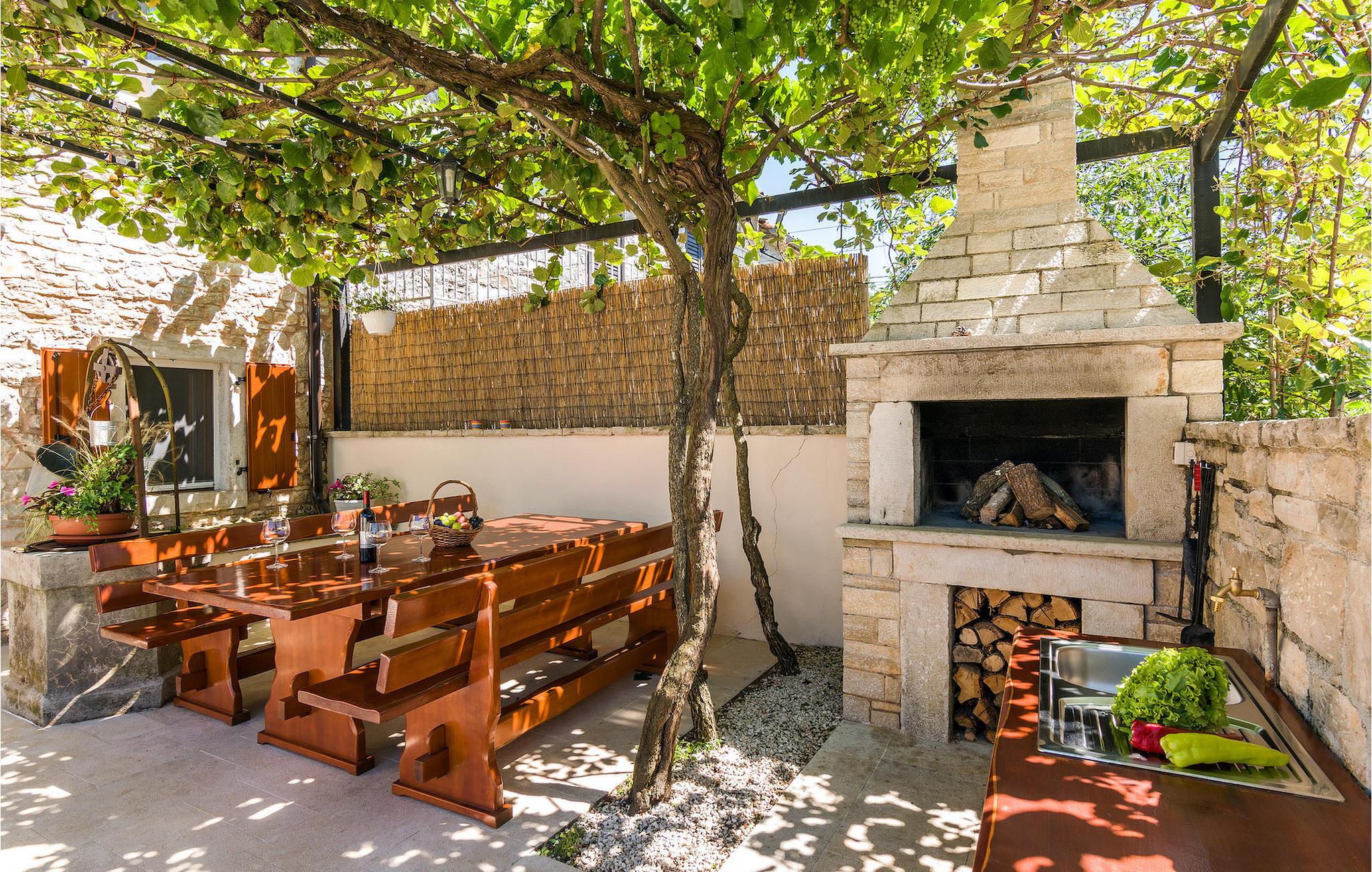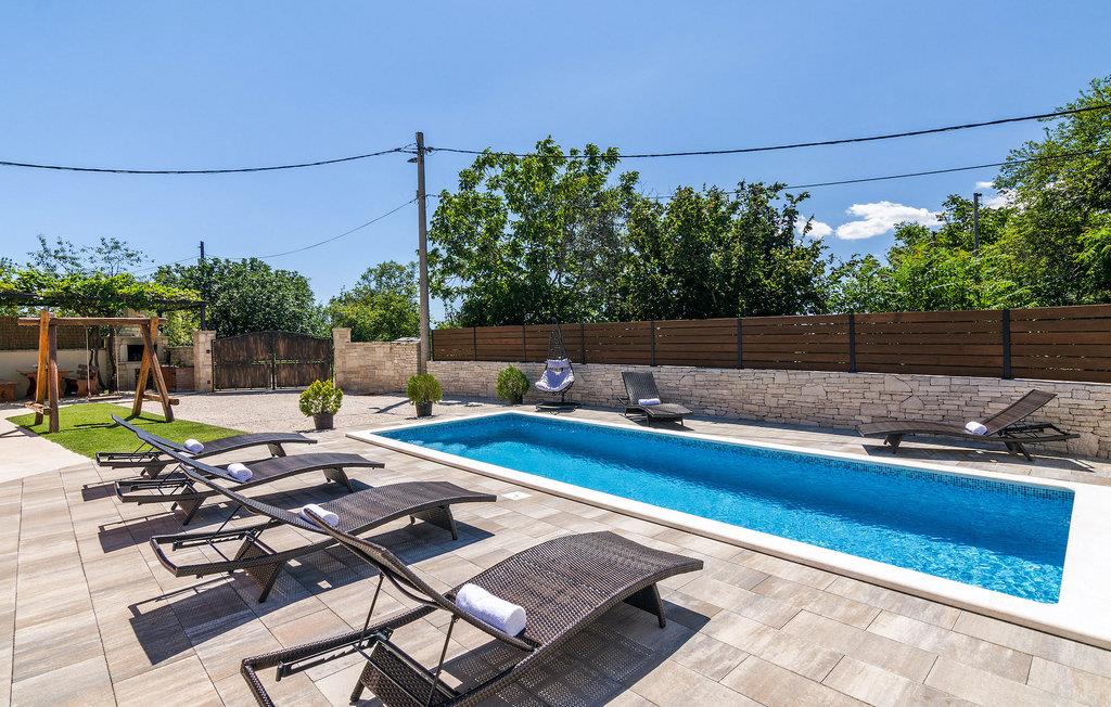 Die bezaubernde Villa Ivka erwartet Sie in einer ruralen Gegend im Süden Istriens. Ihr erster Blick bei der Ankunft wird dem sagenhaften Pool gelten. Hier werden Sie wahrscheinlich den Großteil Ihres Urlaubs verbringen, während Sie entspannen, sonnenbaden und sich erfrischen. Der großzügige Innenhof verfügt über einen von Weinranken überdachten Bereich mit Grill und Esstisch, wo Sie köstliche Mahlzeiten zubereiten und genießen werden. Hier werden Sie viele gemütliche Abende mit Ihren Liebsten verbringen.