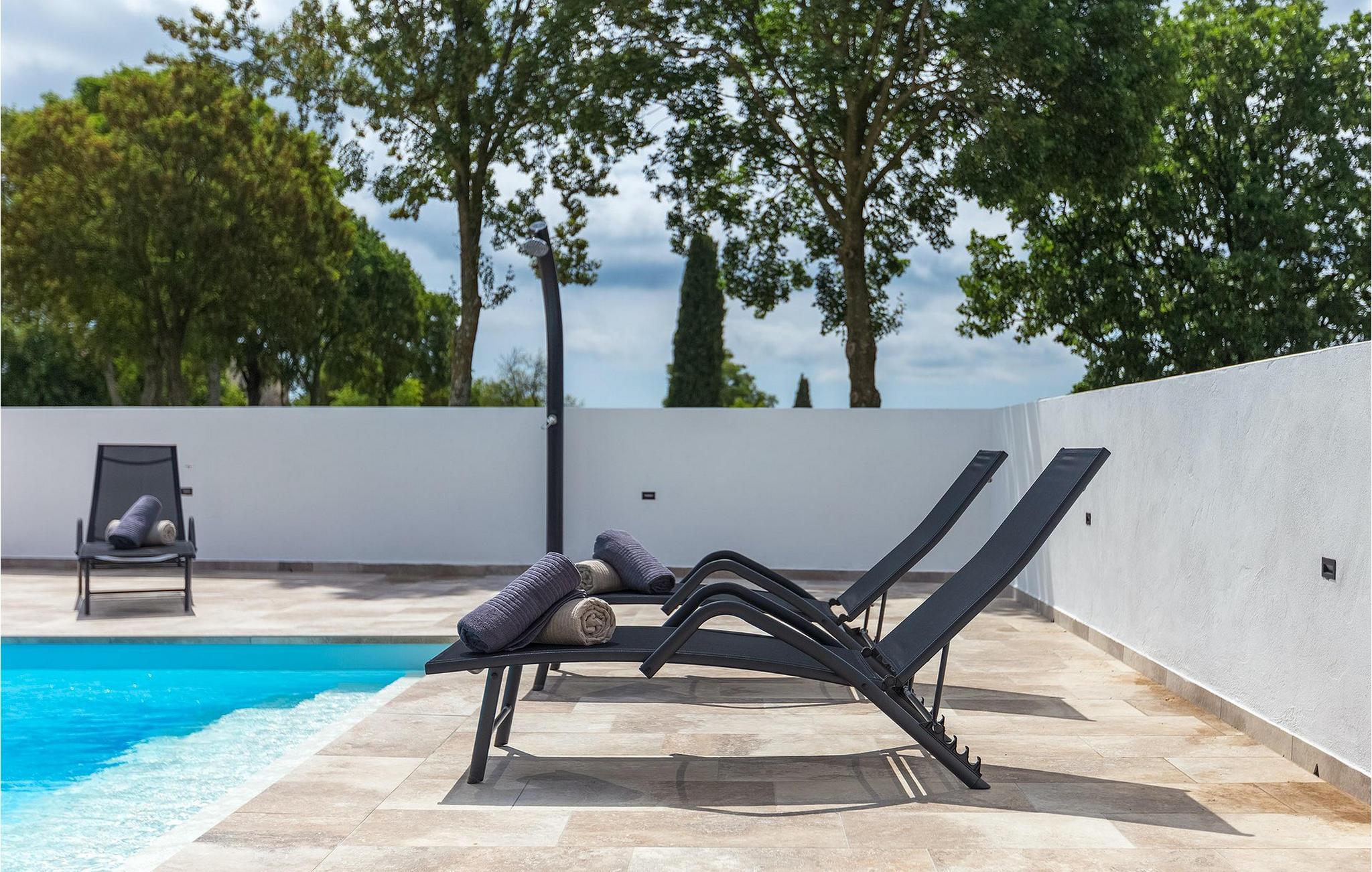 Für mehr Spaß und Freizeit ist der Außenbereich bestens ausgestattet. Dort warten der private Pool, der Garten und der überdachte Essbereich im Freien nur auf Sie. Für einen angenehmen Urlaub sorgen neben der modernen Dekoration und Geräumigkeit der Villa auch die Sonnenstrahlen am Pool, sodass Sie hier entspannte Sommertage mit ihrer Lieblingserfrischung und einem Buch genießen können.